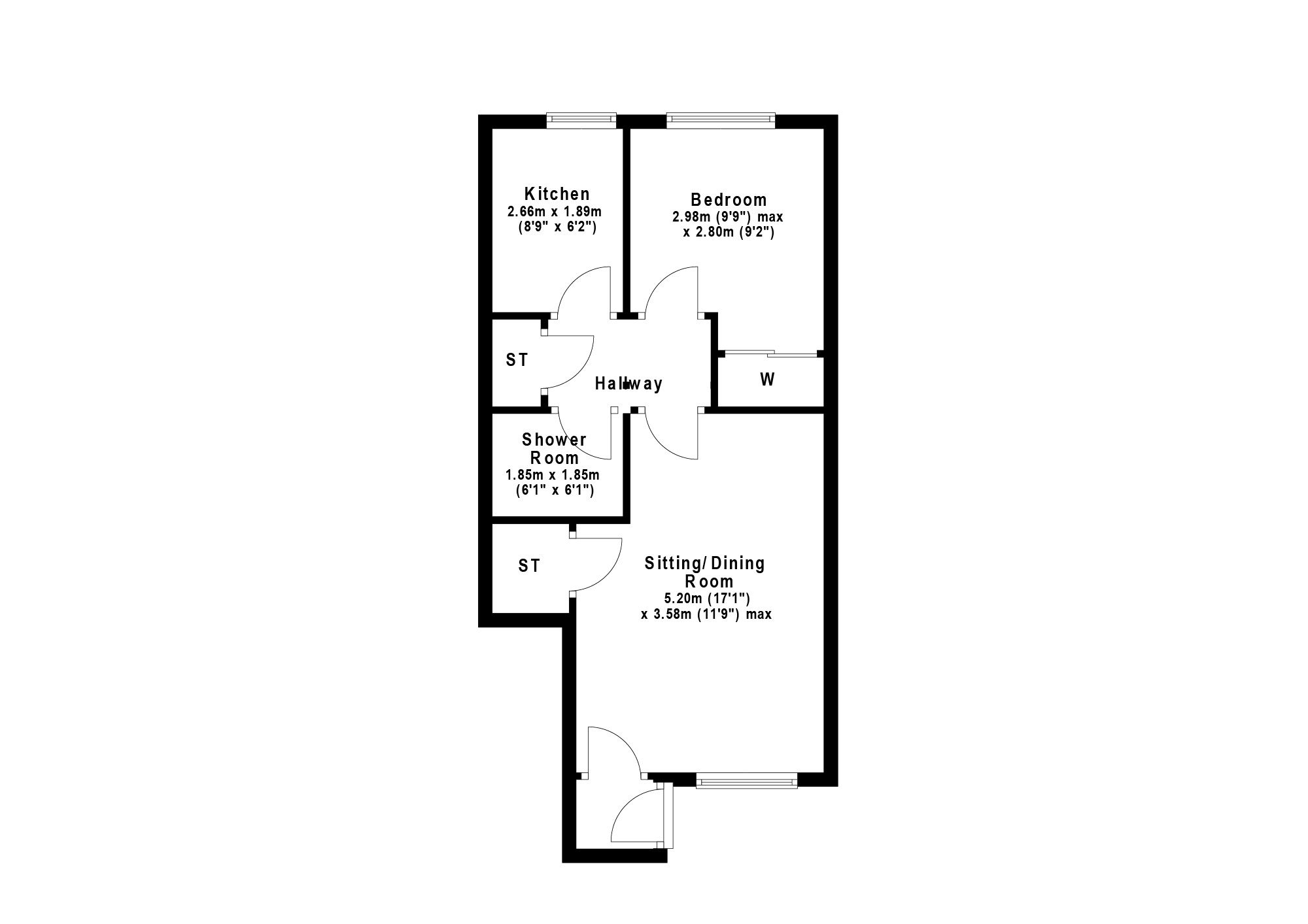 Shower Room 6’1” x 6’1” 1.85m x 1.85m