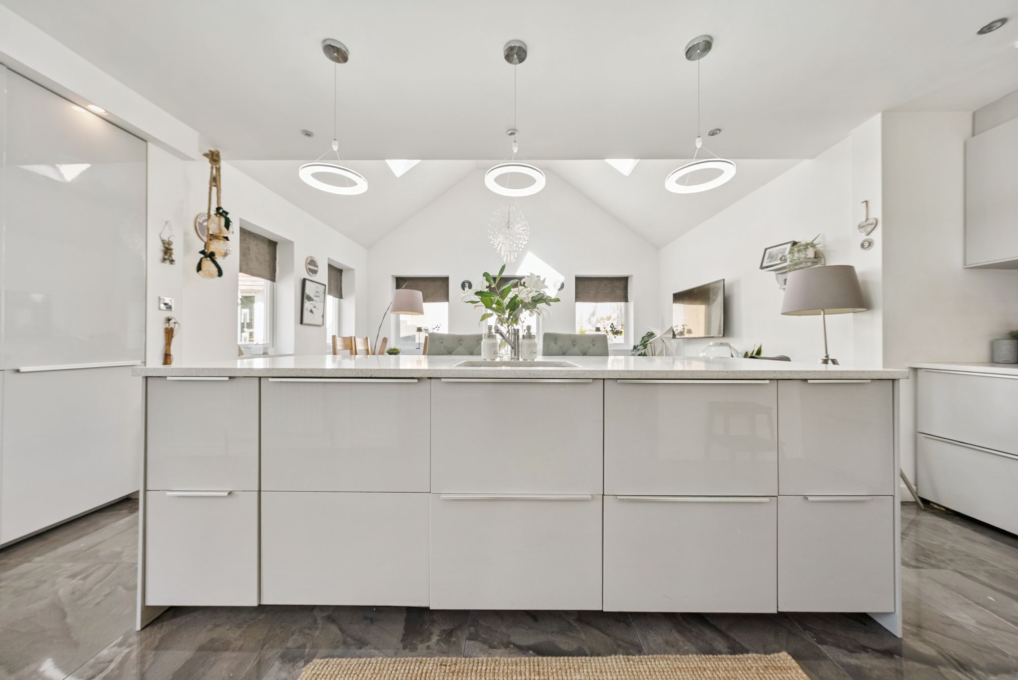 Our 3D Virtual Tours, HD Videos and Floorplans will provide a better idea of form and layout, however, a summary of the accommodation includes a welcoming reception hall, complete with fitted storage, providing access to the front facing family lounge complete with bay window, and two of the double sized bedrooms within. An internal hallway has stairs leading to the upper level with further storage beneath and leads to the ‘heart of the home’, the breath-taking open plan kitchen/dining/sitting area. With an impressive vaulted ceiling and velux windows casting an abundance of natural light below, this fabulous space comprises a central island acting as a natural divide between the kitchen area and sitting/dining space. There is a striking gas aga, further integrated appliances and access to the utility room.