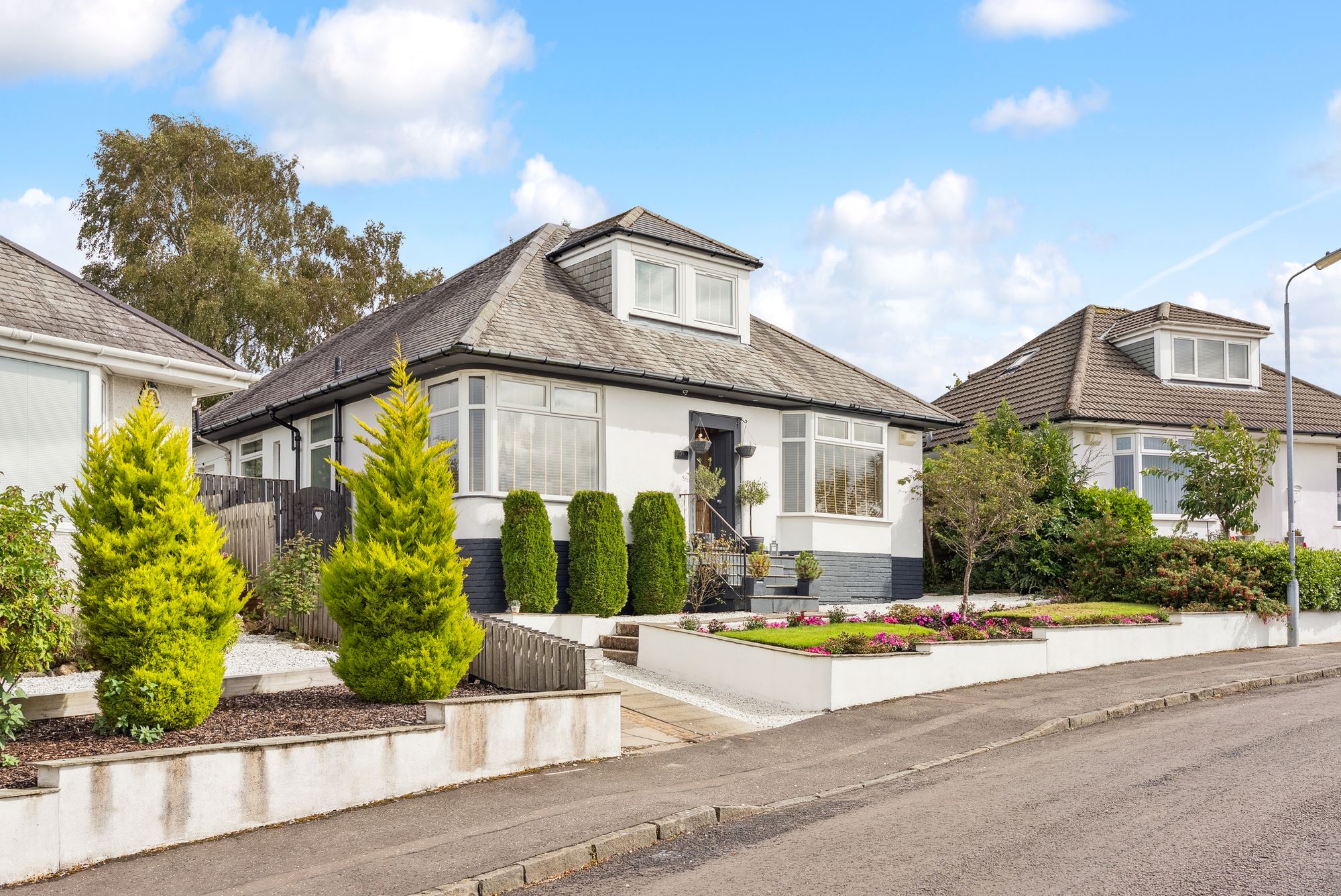 This outstanding family home is set within spacious and landscaped gardens in this rarely available address in Clarkston. Having undergone comprehensive refurbishment and significant extension to the rear, the property now offers stylish and spacious accommodation over two levels with a stunning open plan kitchen/dining/sitting resulting in the perfect family home. The home enjoys an elevated position within this rarely available address which is catchment for highly regarded East Renfrewshire School Catchment and is just a short walk from Clarkston Toll where a host of local shops, bus links and Clarkston Train Station are found.