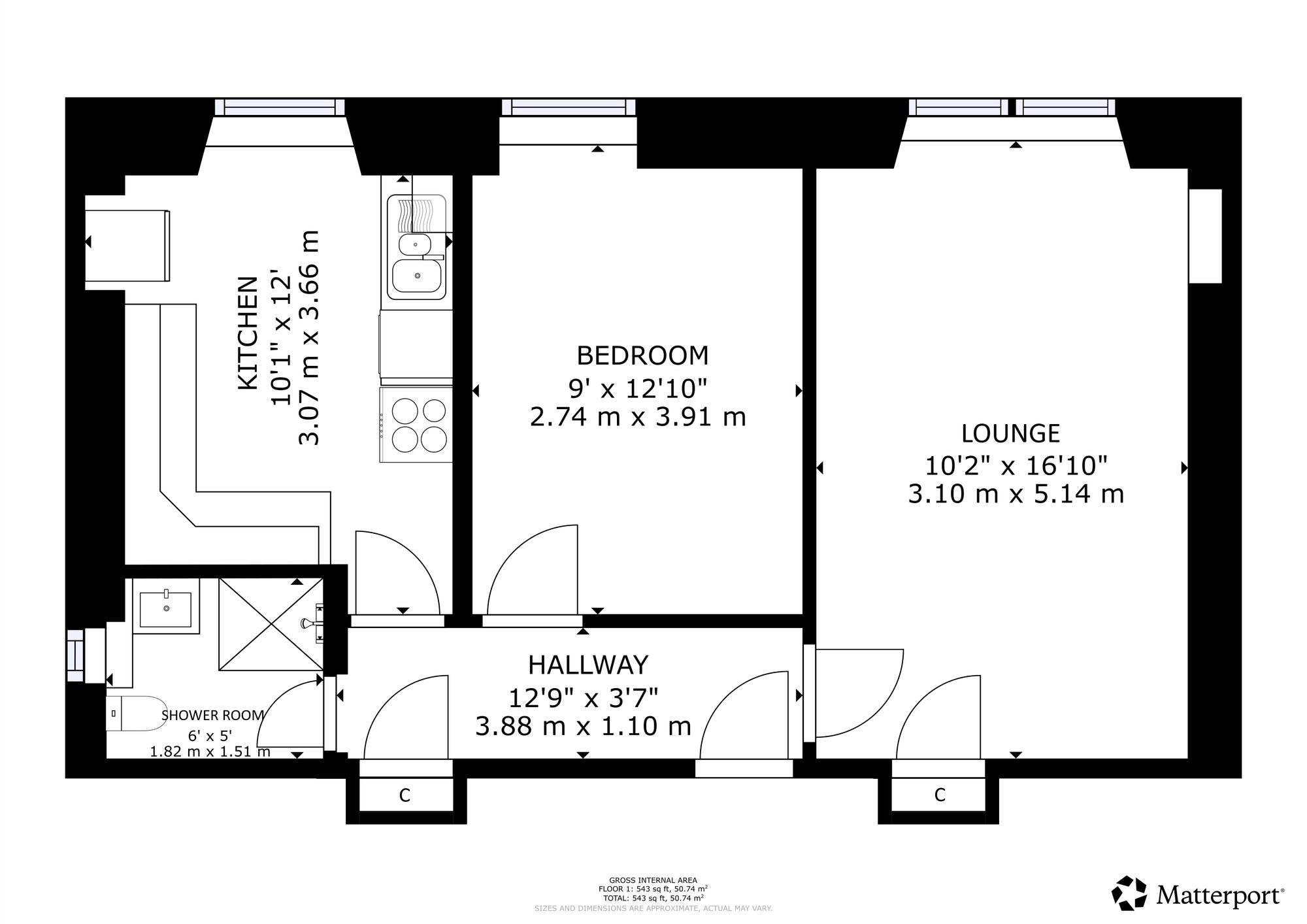 Accessed via a well-maintained communal entrance, the flat opens into a welcoming reception hallway providing access to all apartments. The generously proportioned lounge offers ample space for a three-piece suite and additional furnishings such as a desk or compact dining area, making it ideal for both relaxation and home working. The separate kitchen is fitted with a range of floor and wall-mounted units and also provides space for a small table and chairs. A selection of integrated appliances—including fridge freezer, washing machine, tumble dryer, and cooker— may be included within the sale price depending on offers made.. The well-appointed bedroom features excellent built-in over-bed storage, maximising practicality. The modern, well appointed shower room comprises a three-piece suite with low-level WC, wash hand basin, and walk-in shower, finished with contemporary wet wall panelling. Additional storage is available within the cellar, enhancing its functionality.
