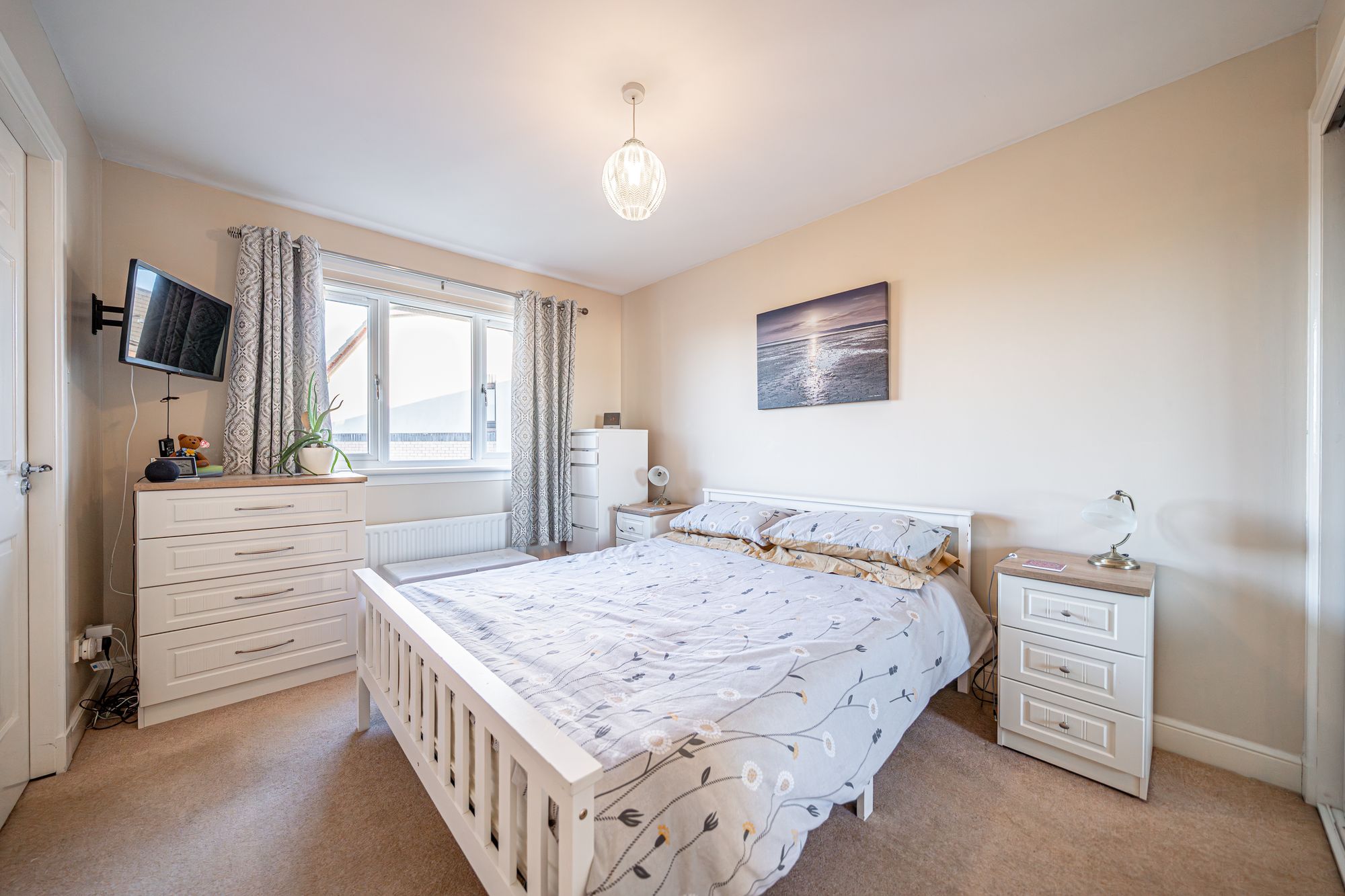The property commands a level plot with off street parking to the front via a monobloc driveway and leads to the integrated single garage. The rear garden has a large lawn with a patio at the rear of the garden.