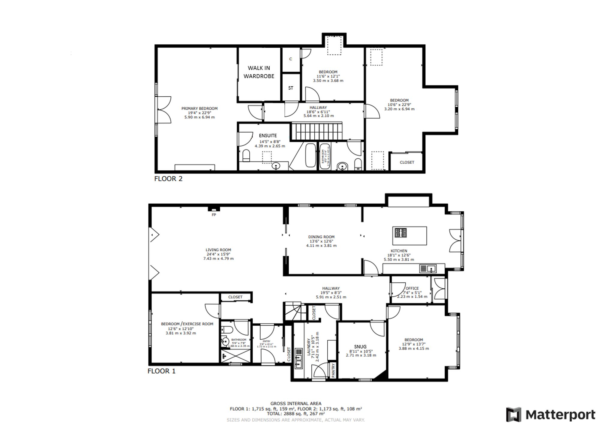 This home offers remarkable flexibility with two spacious double bedrooms on the ground floor, a cosy snug perfect for quiet relaxation, and a beautifully refitted shower room. Upstairs, there are three further generously proportioned double bedrooms, including a luxurious principal suite featuring a fantastic walk-in dressing room and a full en suite bathroom. A stylish family bathroom and ample storage throughout complete the upper level.