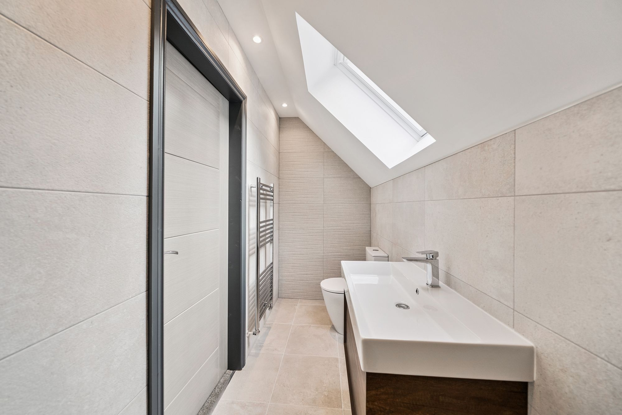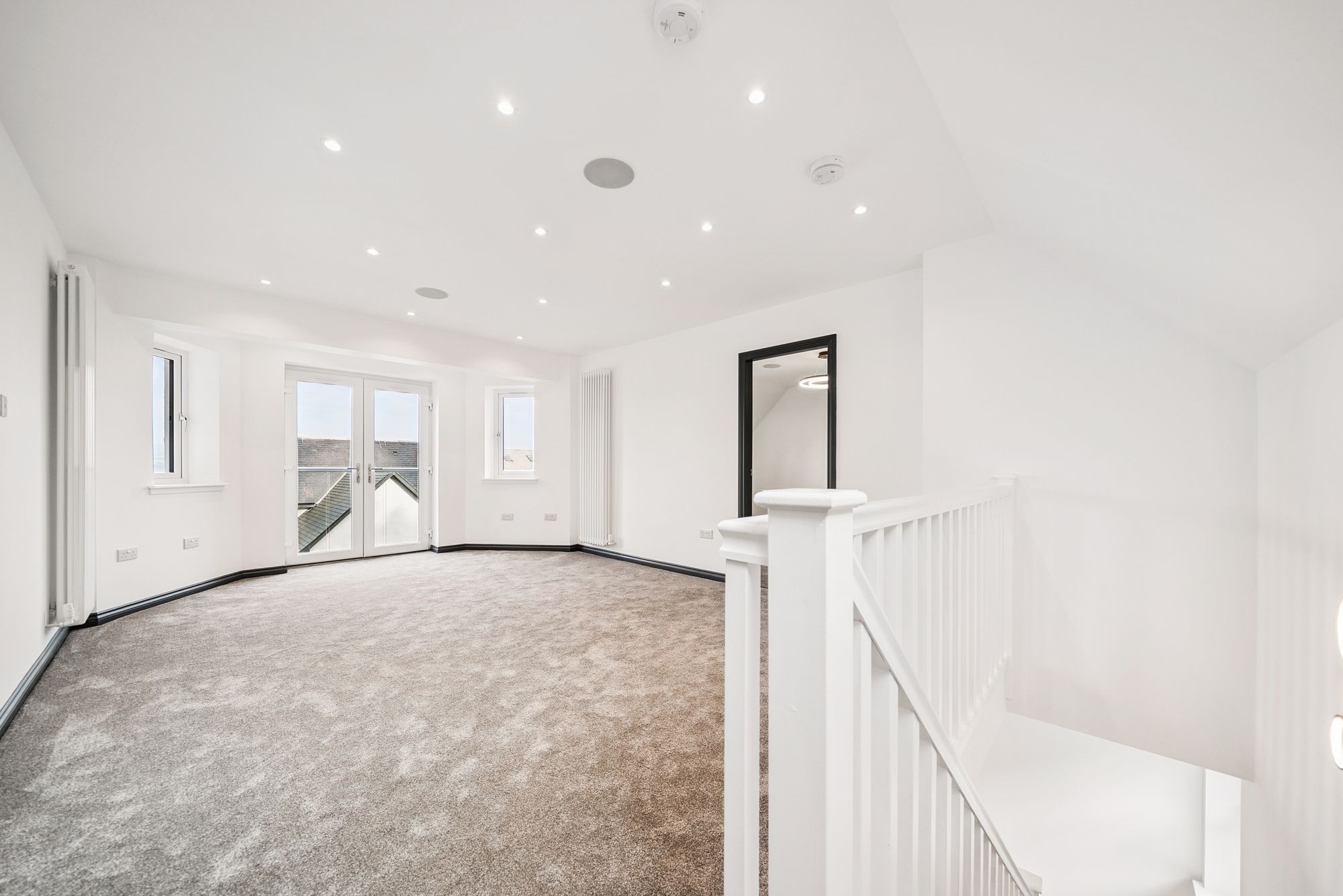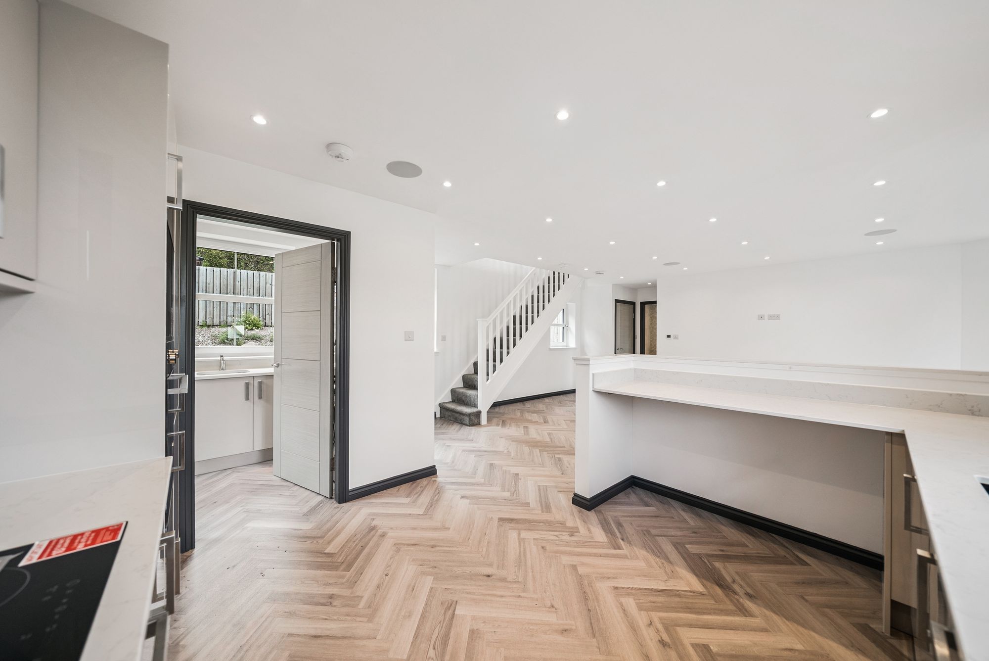 Upon entering the property, the ground floor opens out in to a spacious, bright and modern open plan lounge and dining area, finished to an impeccable standard. It comes complete with stylish herringbone flooring and expansive windows that flood the room with natural light and offer uninterrupted views towards the water, enhancing the sense of space and frames the surrounding scenery perfectly. There is a stunning kitchen, complete with wall mounted and counter level units, Silestone worktops and window sills, along with high end integrated appliances such as oven, hob, fridge/freezer and dishwasher. Moving on from the kitchen, but following the same modern style, is the utility room, with window out to the rear gardens, wall mounted and counter level units and wash hand basin. Also on this floor is a bright and spacious third double bedroom with fantastic views to the front of the property, perfect for families that require all on the level living. This room could also serve as a guest room, home office, or snug. Also on this level is a stunning Porcalenosa shower room, featuring shower enclosure, wc, wash hand basin, and heated towel rail, ideal for guests or busy family life. There is also a large storage cupboard on this floor, again perfect for family living. The entire ground level of this property has underfloor heating.