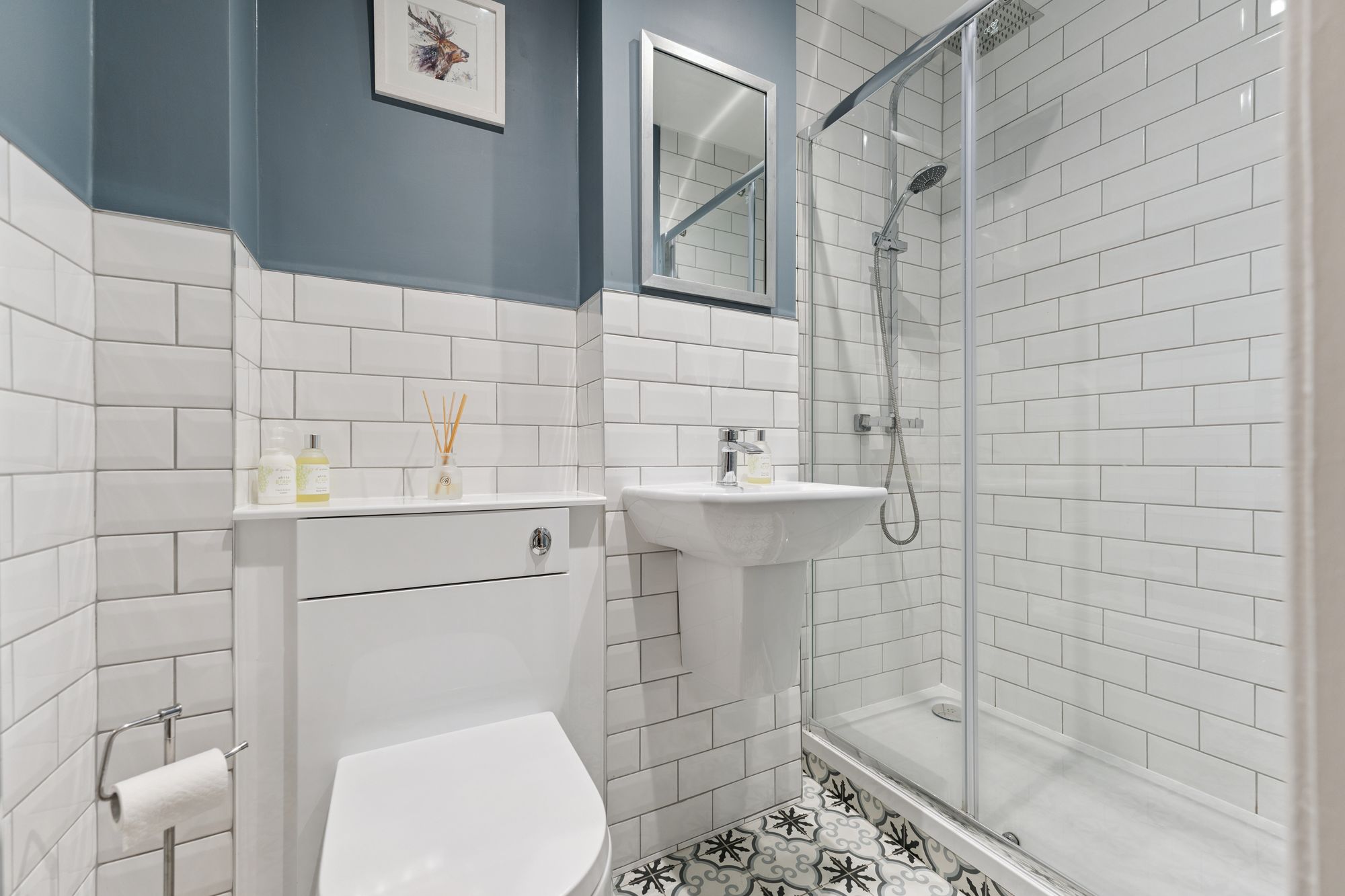 There is a generously proportioned double bedroom boasting high ceilings, and soothing neutral décor, creating a calm and inviting atmosphere. The stylish bathroom features modern partial tiled wall with contemporary tiled flooring, a tiled shower enclosure, wash hand basin and WC all finished to an exceptional standard.