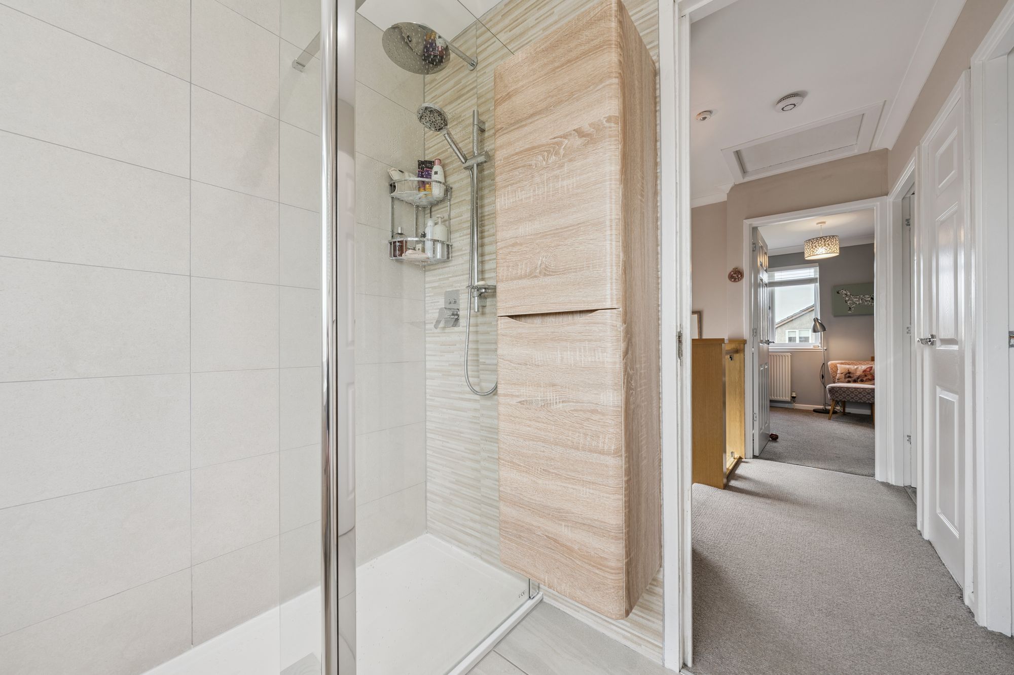 Upstairs, the property comprises two generously sized double bedrooms with a smaller third bedroom, the principal bedroom benefits from integrated wardrobes. The modern family shower room completes the upper level and features a high-quality three-piece suite with a large walk-in shower.