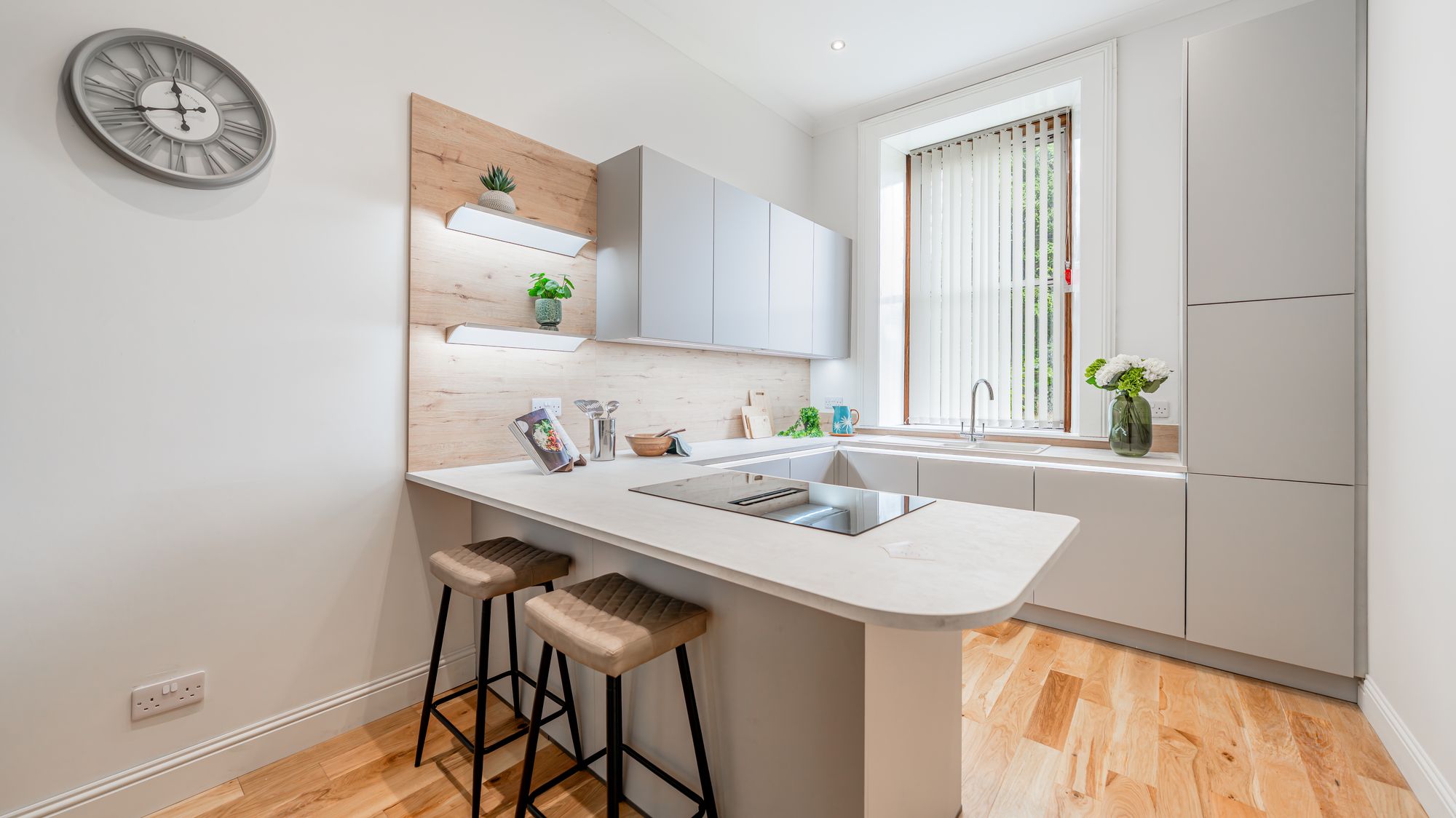 Set on the ground floor of a handsome Victorian tenement, this beautifully refurbished two-bedroom apartment offers spacious, flexible living in one of Mount Florida’s most desirable addresses. Blending period charm with contemporary style, the property boasts a bright and airy feel throughout, enhanced by large rooms, high ceilings, and elegant cornicing.