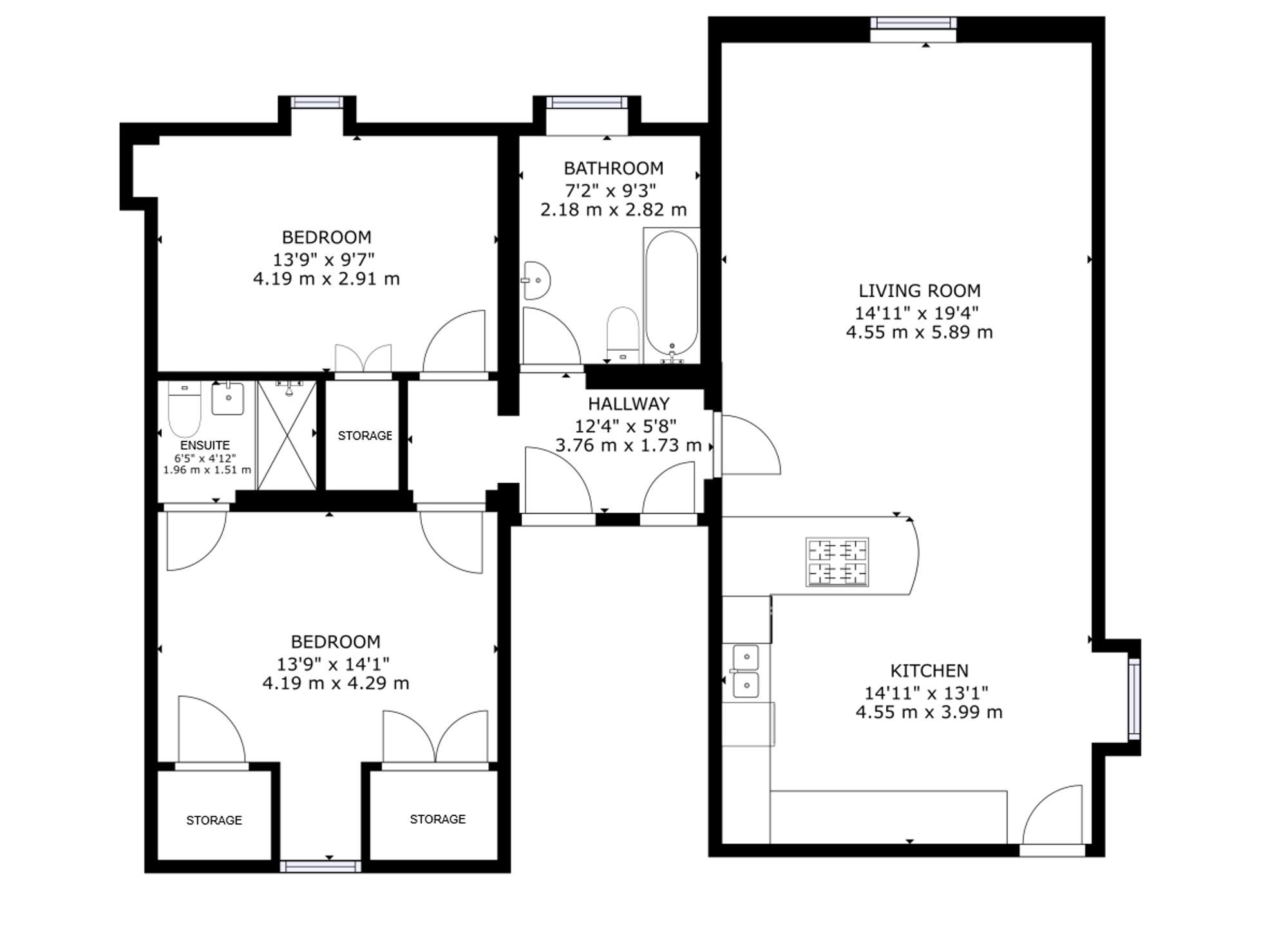 Access is via a secure communal entrance at ground floor level, with a stairwell leading to the upper floor. Internally, the accommodation is bright, well proportioned and finished to a high standard. The entrance hallway leads to a spacious open plan living and kitchen area, ideal for both everyday living and entertaining. There are two bedrooms, including a generous master bedroom with en-suite shower room, along with a further bedroom and a contemporary bathroom with WC.