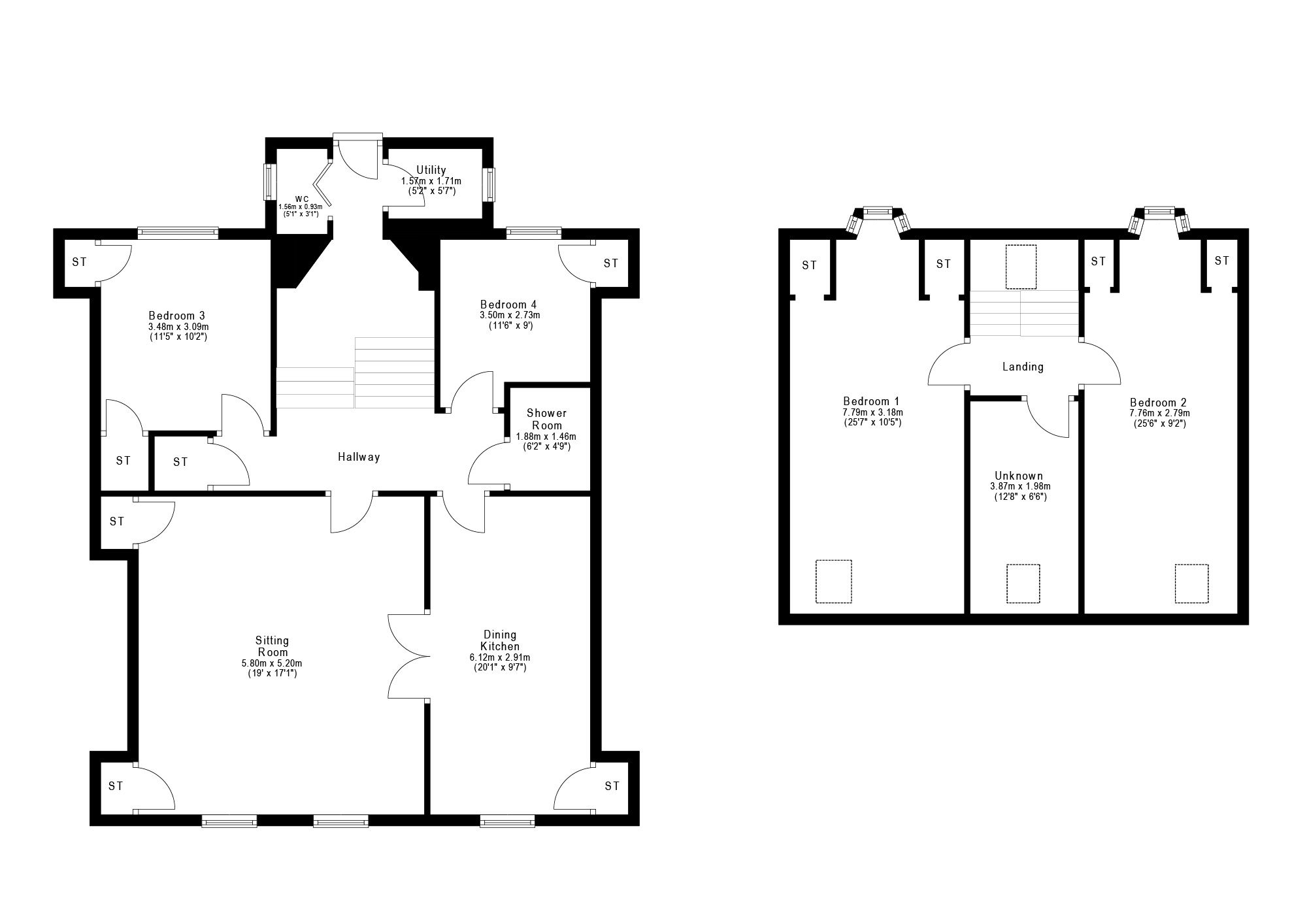 Bedroom Two 25’6” x 9’2” (at widest) 7.77m x 2.79m
