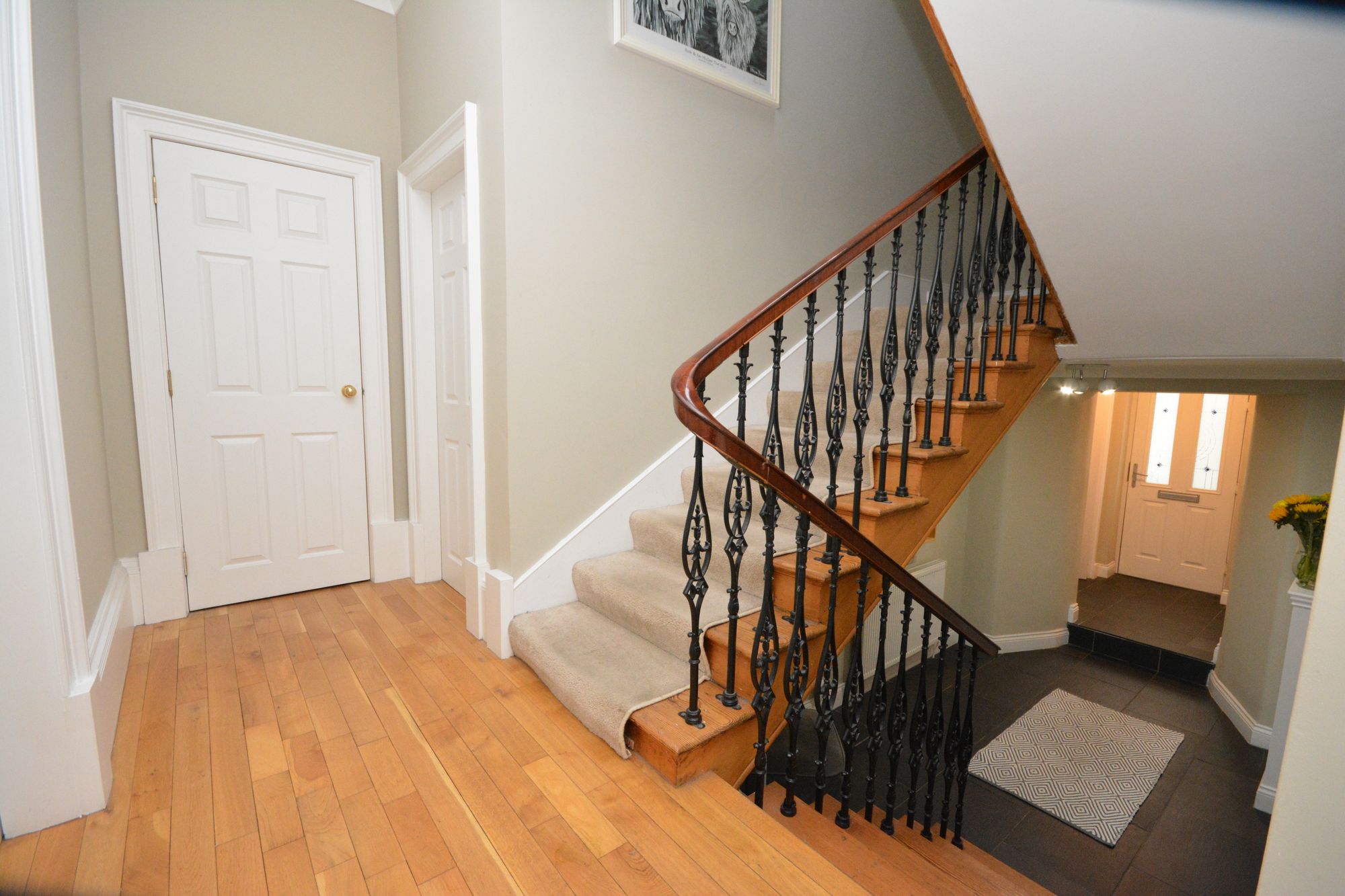 Access to the property is through a shared walled and gated garden which affords remarkable privacy. A rear entrance staircase leads to the private entrance door. The property provides impressive, flexible accommodation with the principal apartments formed over first floor and upper levels. The large reception hallway has a useful utility room and downstairs WC off in addition to a ceramic tiled flooring and solid wood staircase. The wonderful Georgian sitting room has high ceilings, twin astragaled windows, focal point fire surround with multi fuel stove, solid timber flooring and French doors leading to the dining kitchen. The dining kitchen extends to twenty feet in length and is complete with oak work tops, Belfast sink and integrated appliances including five burner gas hob, oven, microwave, extractor hood and dishwasher. The kitchen enjoys return access to both the sitting room and hallway. There are two versatile double bedrooms at first floor level and a super fully ceramic tiled shower room. A handsome staircase with wrought iron balustrade leads to the bright upper landing. On the upper floor there are two outstanding double sized bedrooms each of which extend to in excess of twenty five feet in length and enjoy excellent natural light from bay style dormer windows and additional Velux windows. Each of the bedrooms provide useful fitted storage. The upper accommodation is completed by a stylish fully refitted and generously sized family bathroom which incorporates a feature roll top ball and claw foot bath, large walk in shower with rainforest shower head and chrome radiator. Practical features include gas central heating and majority double glazing. Internal viewing alone will confirm the overall size, flexibility and individual appeal of this wonderful home.