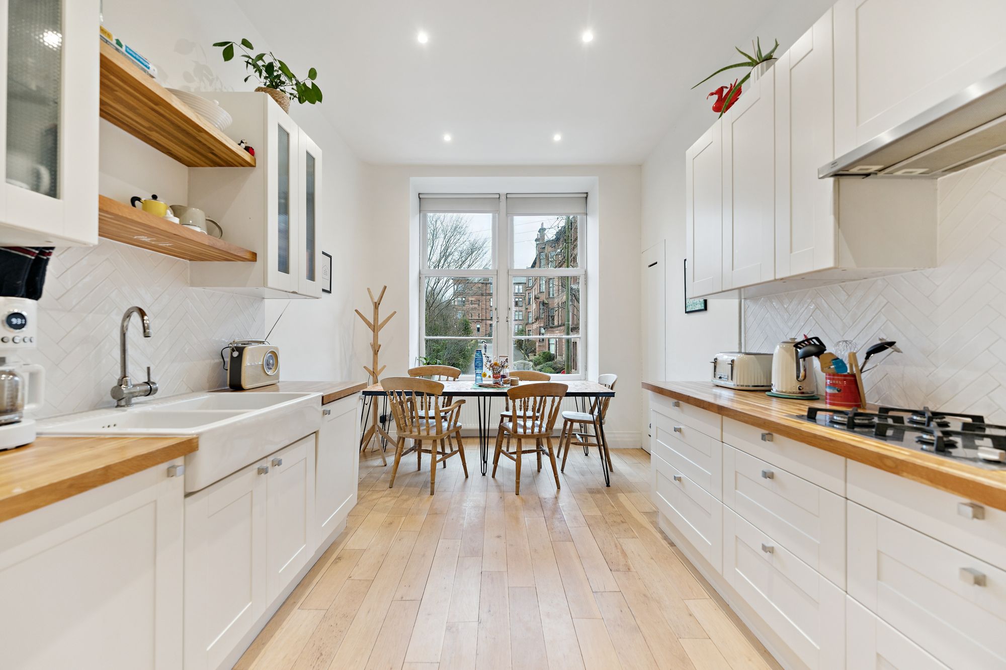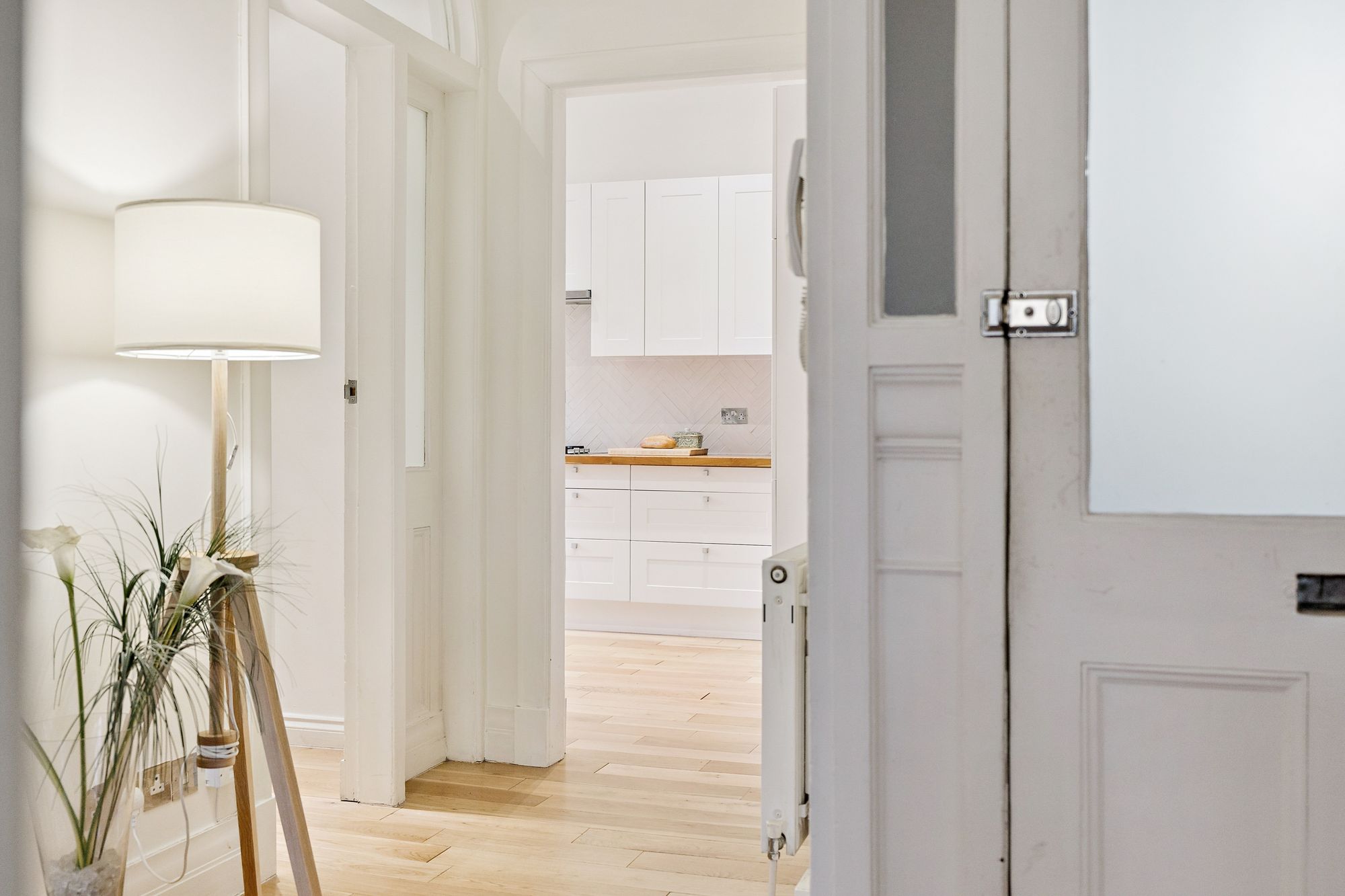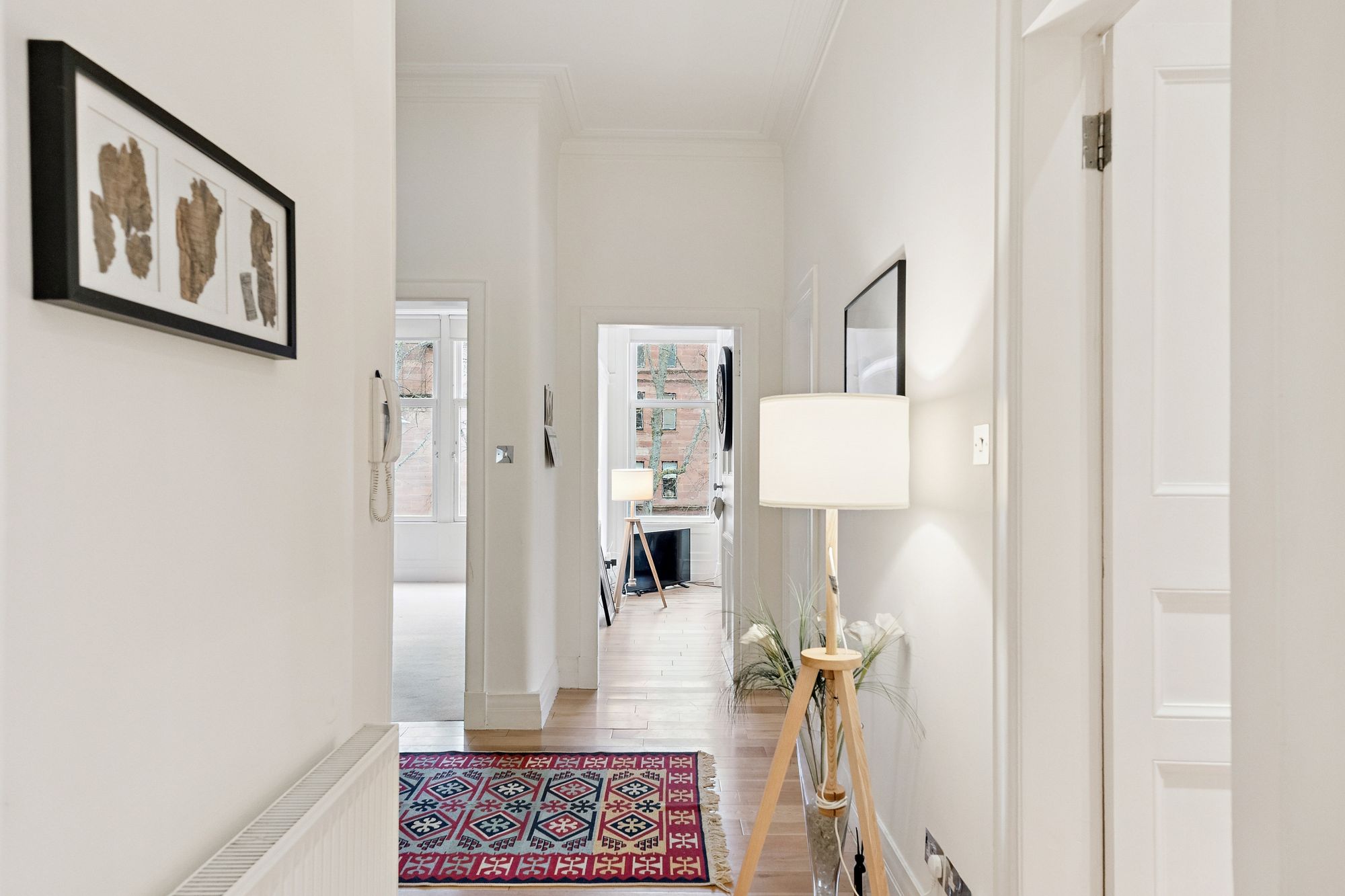 Queensborough Gardens is a beautiful tree lined street in the heart of Hyndland, known for its handsome red sandstone tenements and extremely central, yet quiet location. An excellent selection of shops, cafes and boutiques can be reached within minutes on Clarence Drive & Hyndland Road and Byres Road is only 0.6 miles away. Hyndland itself has a train station with frequent routes throughout the central belt and it is also possible to join all the major road networks with ease, making this an ideal base for those looking to commute.