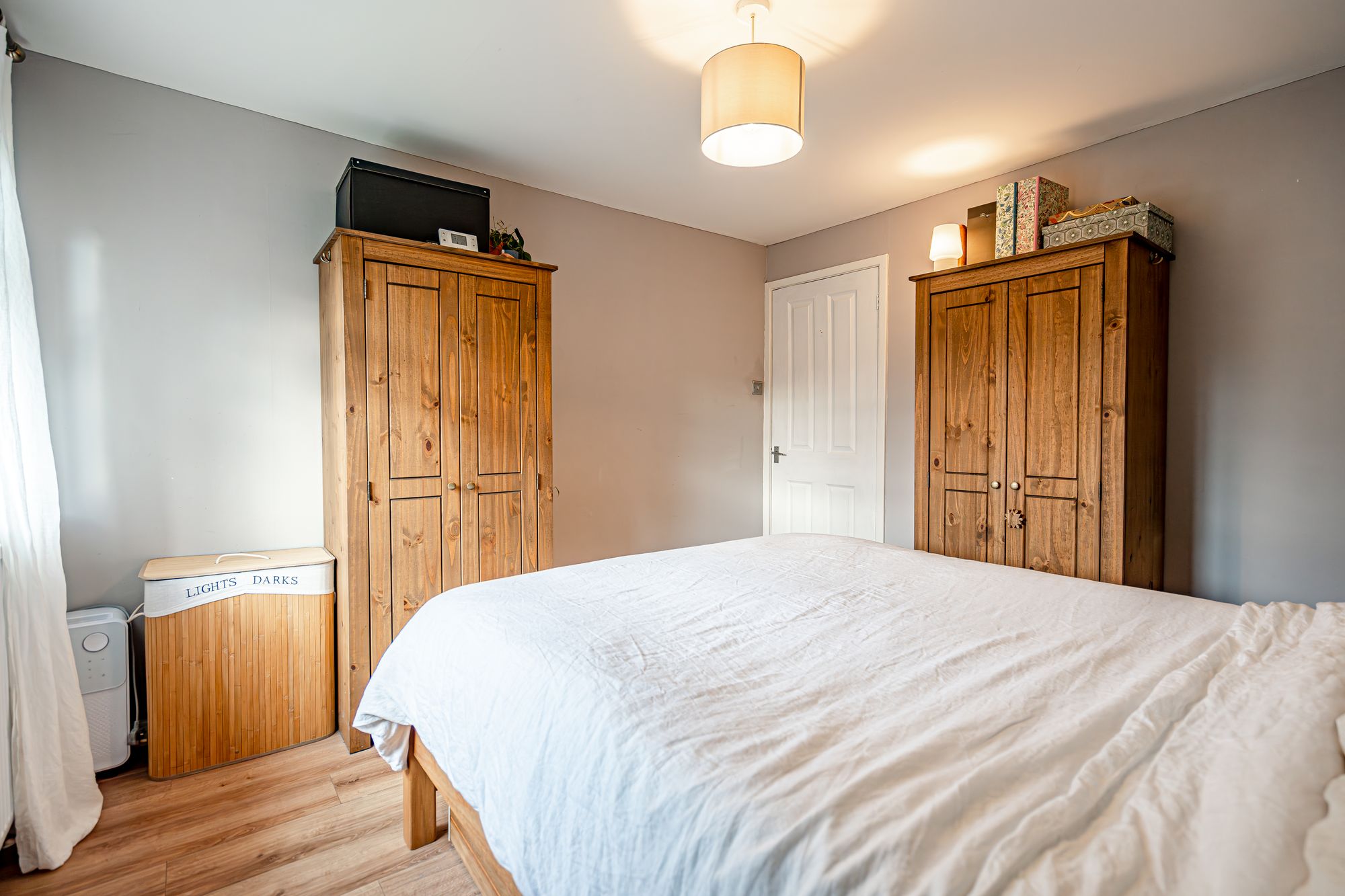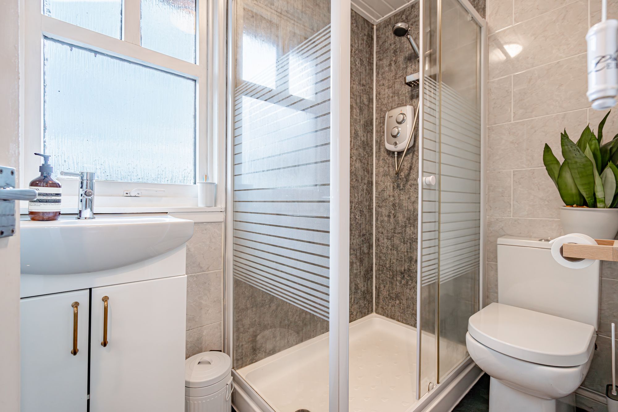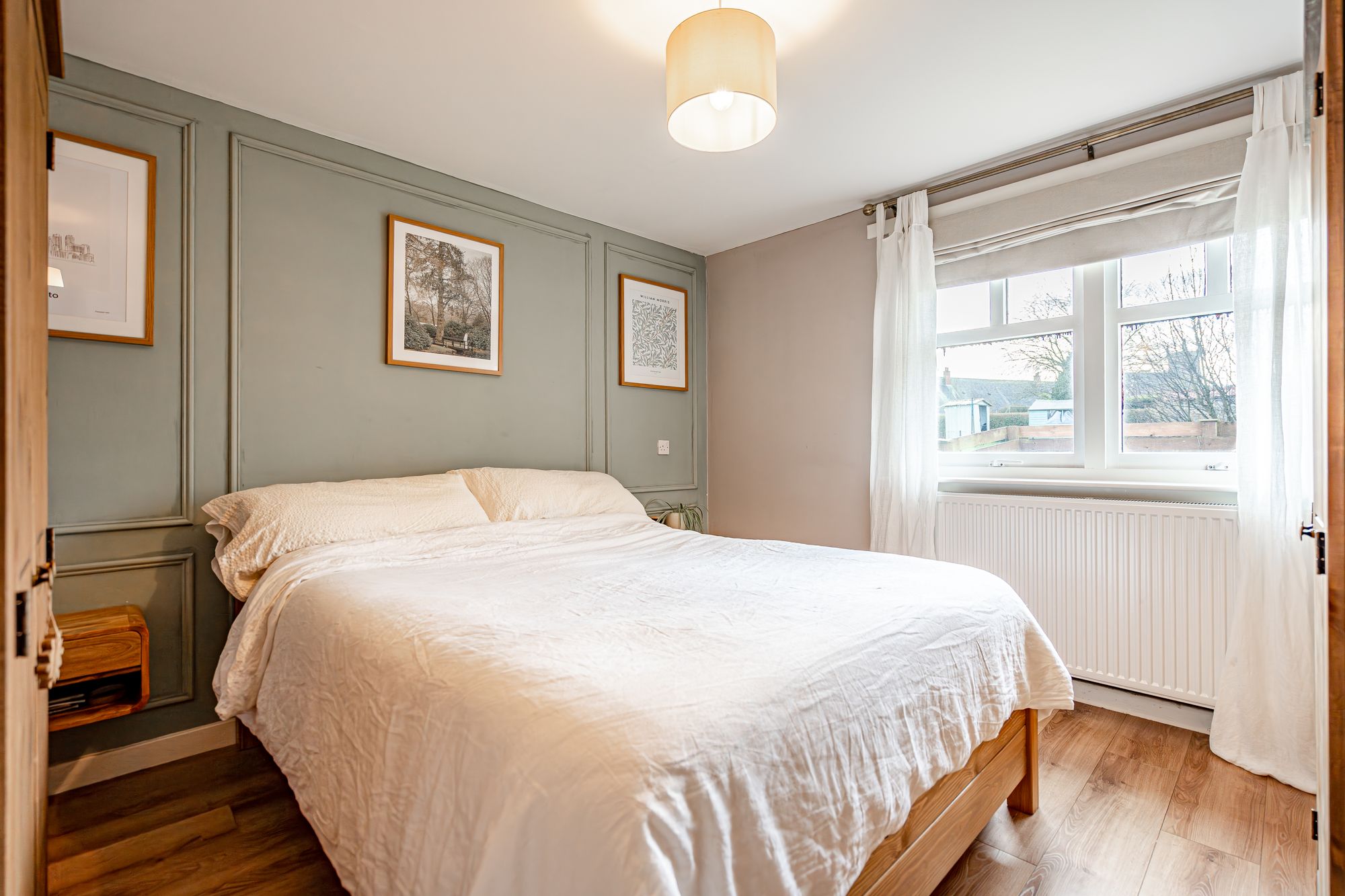 The generously sized double bedroom is enhanced with elegant decorative panelling, while the contemporary shower room offers a sleek shower cubicle with an electric shower, wash and basin and WC.