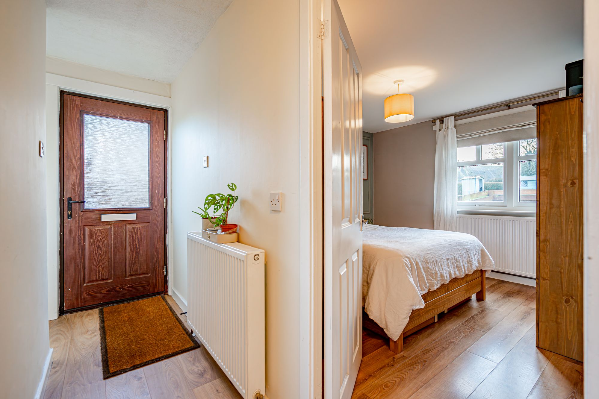 Additional features include electric heating throughout, a wood shed for storage, and a charming rear patio area, perfect for outdoor relaxation. The front garden, mainly laid to lawn and bordered by mature hedging, adds to the property’s curb appeal and provides a private outdoor space to enjoy.