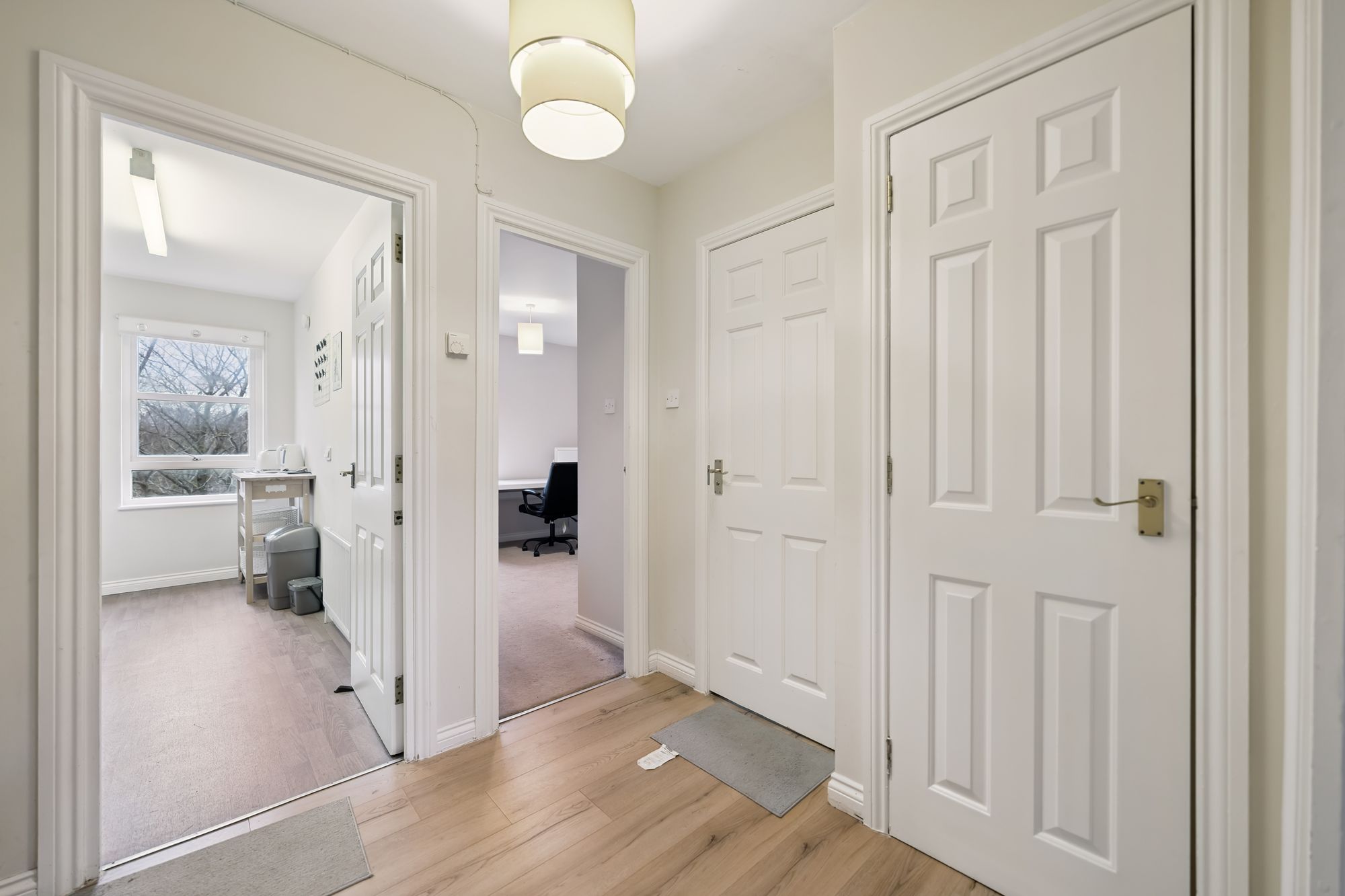 An attractive two-bedroom modern apartment offering tastefully decorated accommodation with the added advantage of private allocated parking. This modern apartment occupies a first floor position within a purpose built low rise building and affords security door entry system, gas central heating and double glazed windows throughout. To the rear there are well maintained communal grounds which are laid to a combination of lawn and paving, thus providing an attractive recreational area. Furthermore, this delightful modern home has the added advantage of both allocated residents and visitors parking. In brief, the accommodation extends to; residents stairwell providing access to all floors, attractive reception hallway with large storage cupboard, two bedrooms with the principal benefitting from an en-suite, family bathroom with shower over bath, modern kitchen and bright lounge.