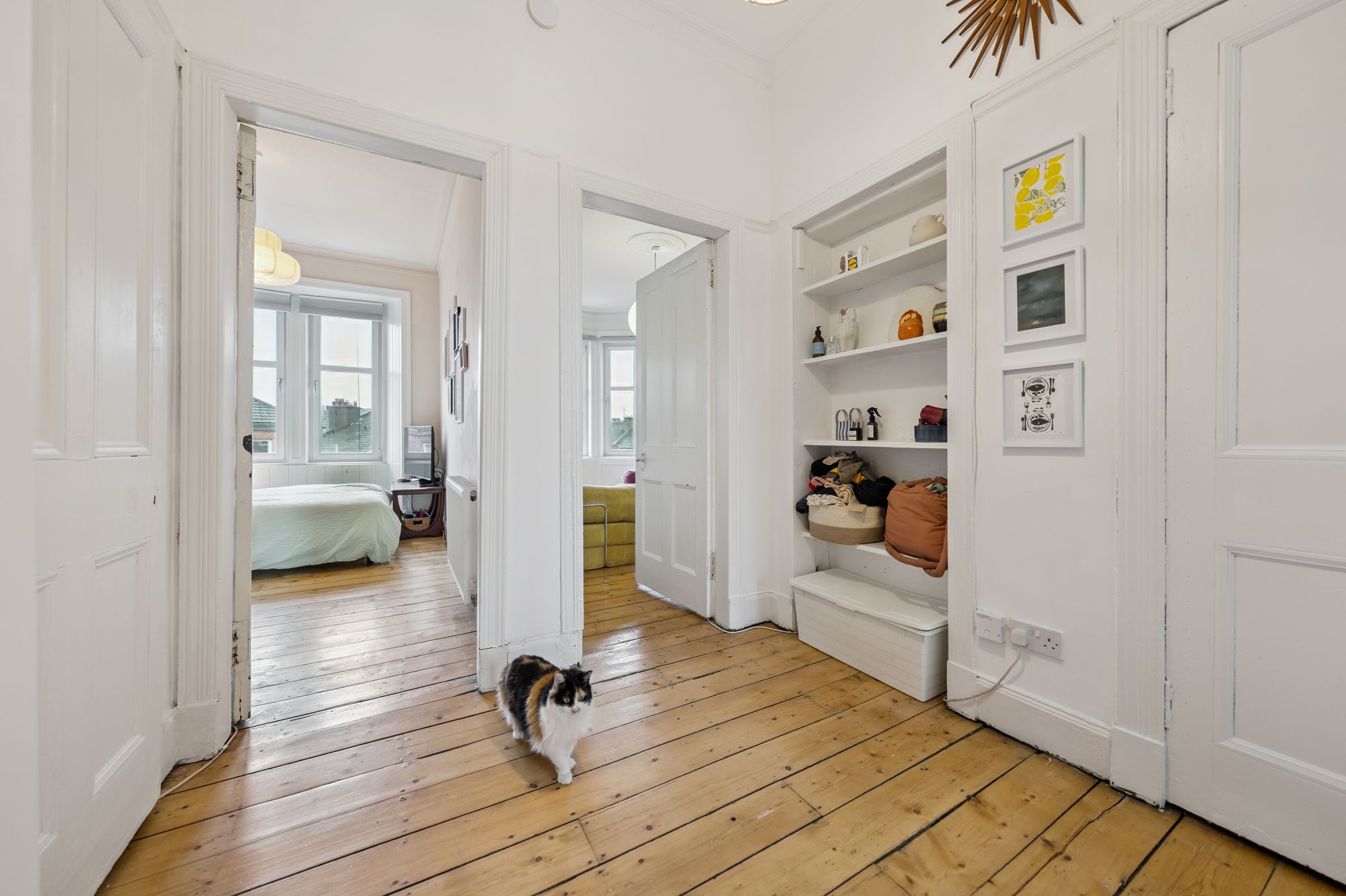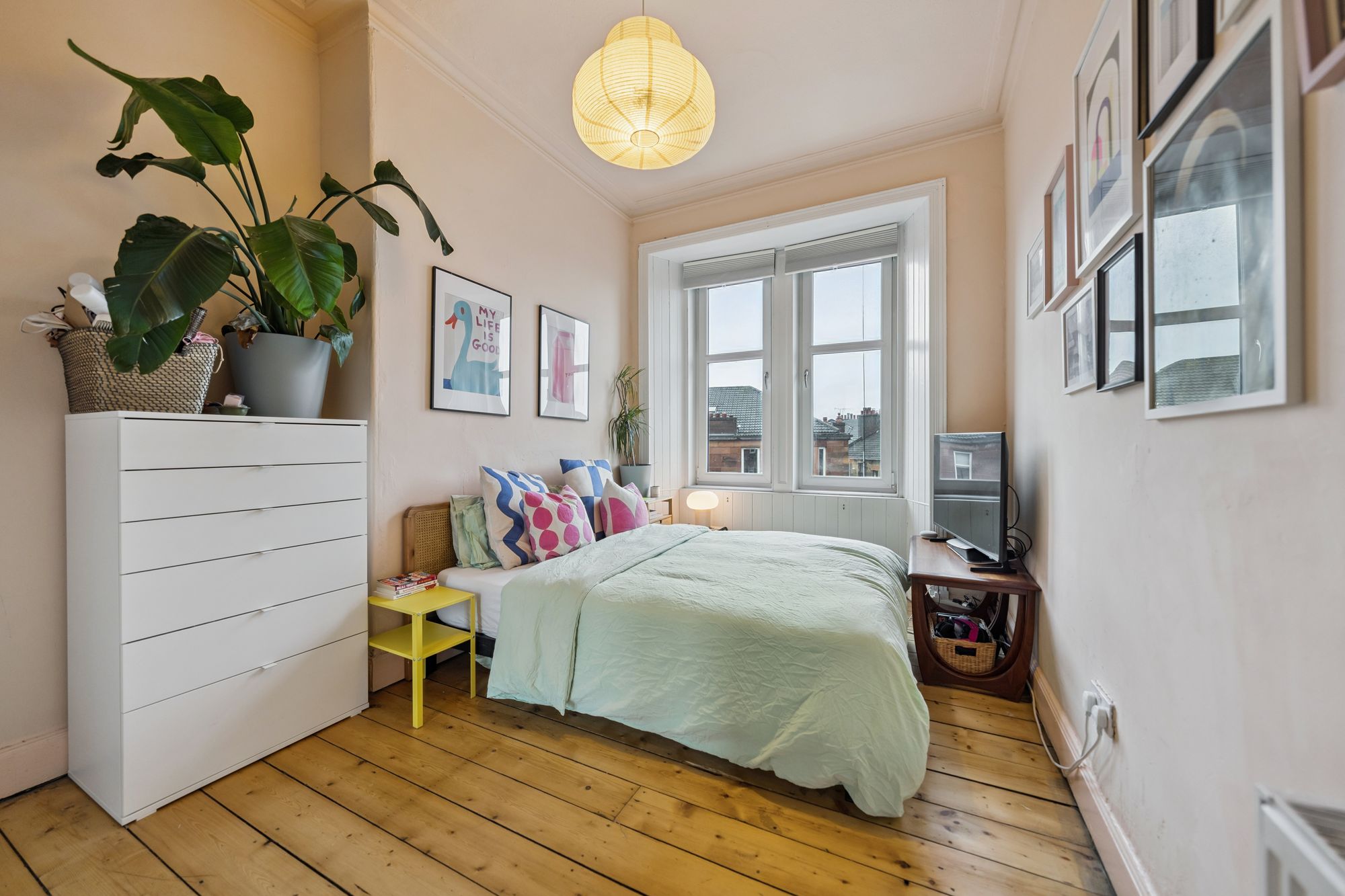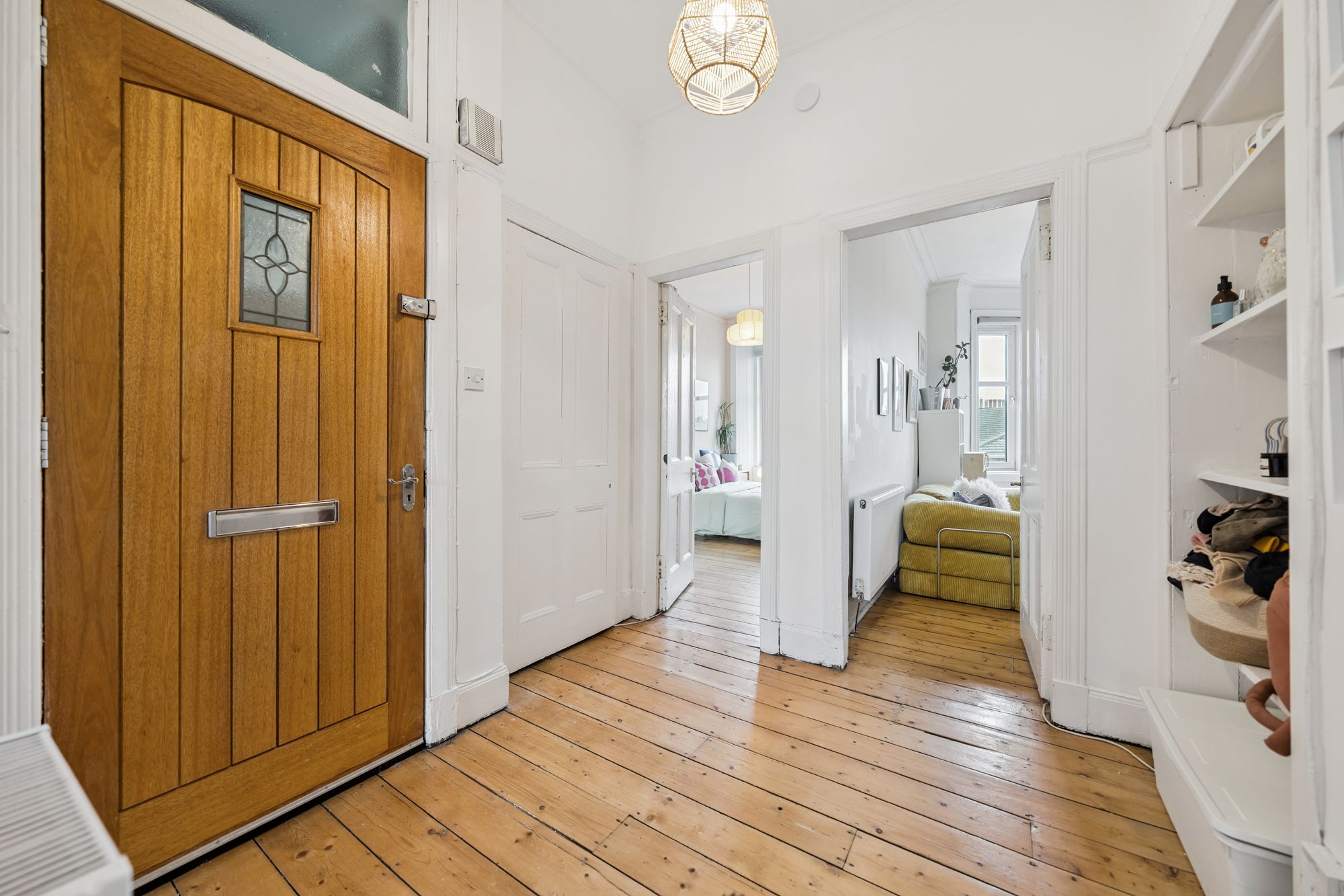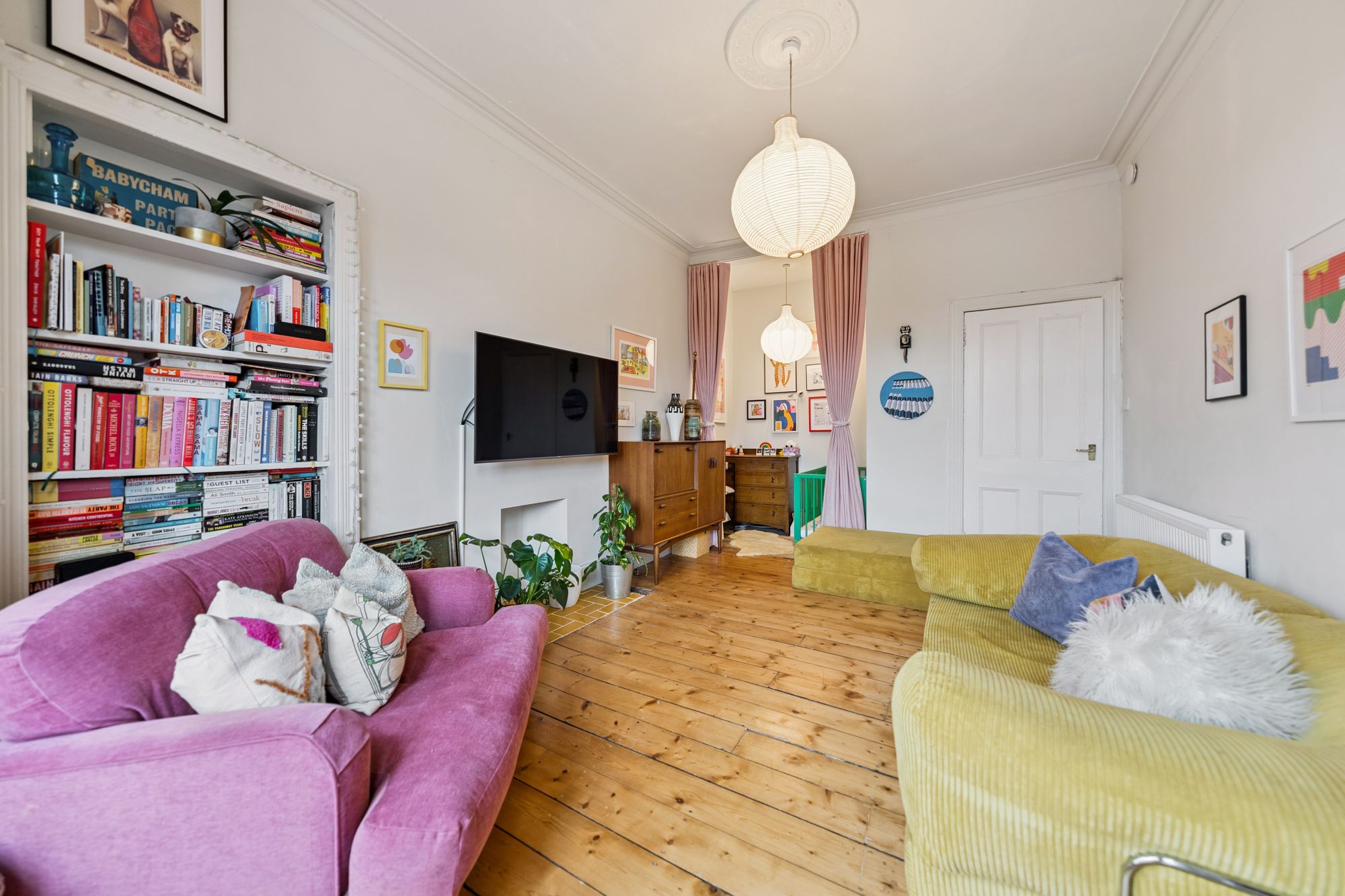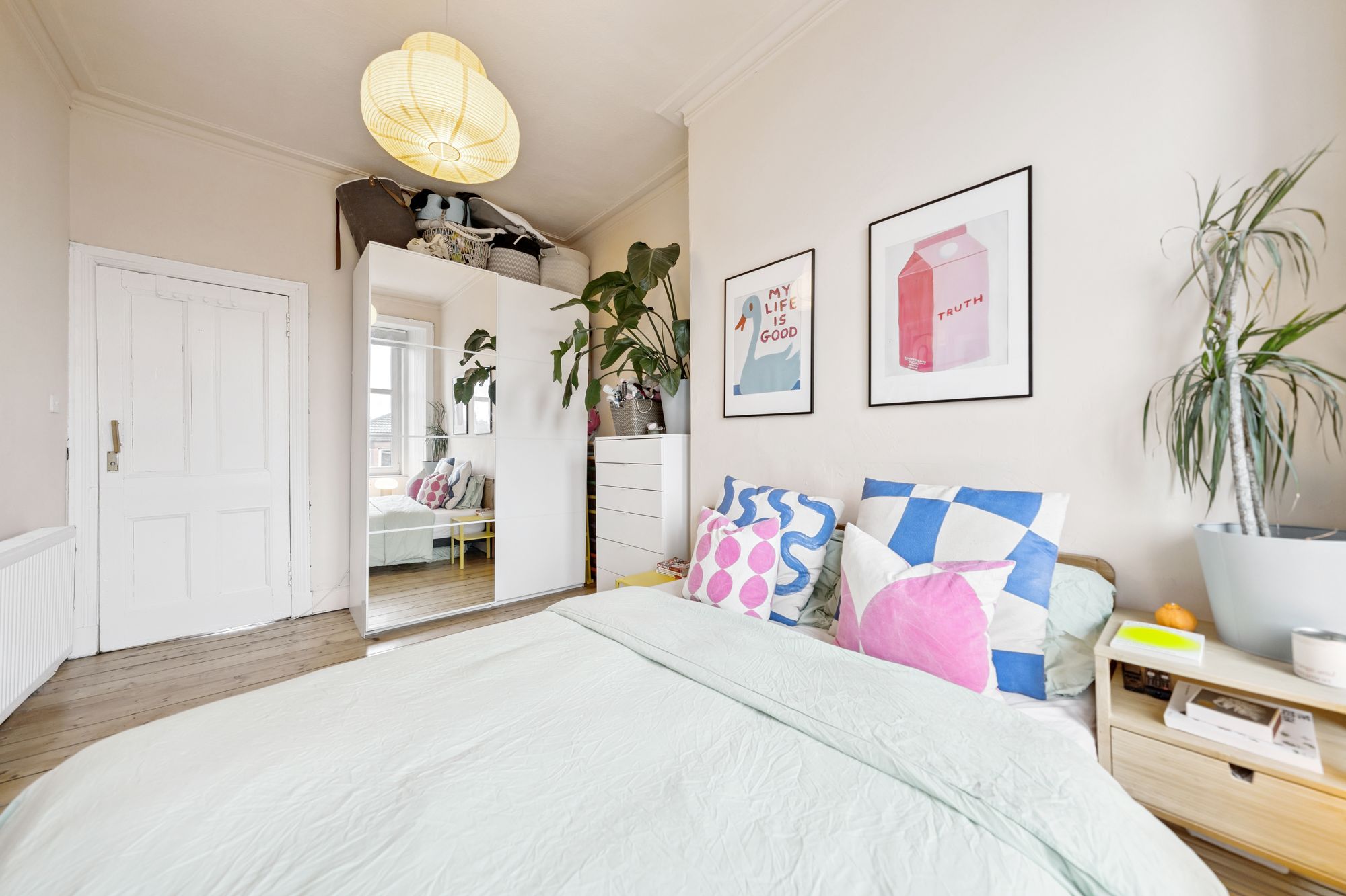 Inside, the apartment delivers the classic tenement charm people love, generous proportions, high ceilings and fantastic natural light combined with a fresh, modern feel that makes it ready to move straight into. The accommodation begins with a welcoming entrance hall with useful storage, leading through to a bright bay-windowed lounge that forms the heart of the home; a brilliant space to relax, entertain or simply enjoy the outlook.