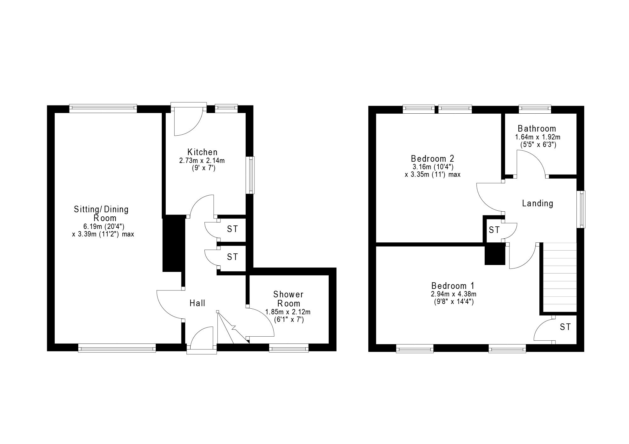 Bedroom Two 11’ x 10’4” 3.35m x 3.15m