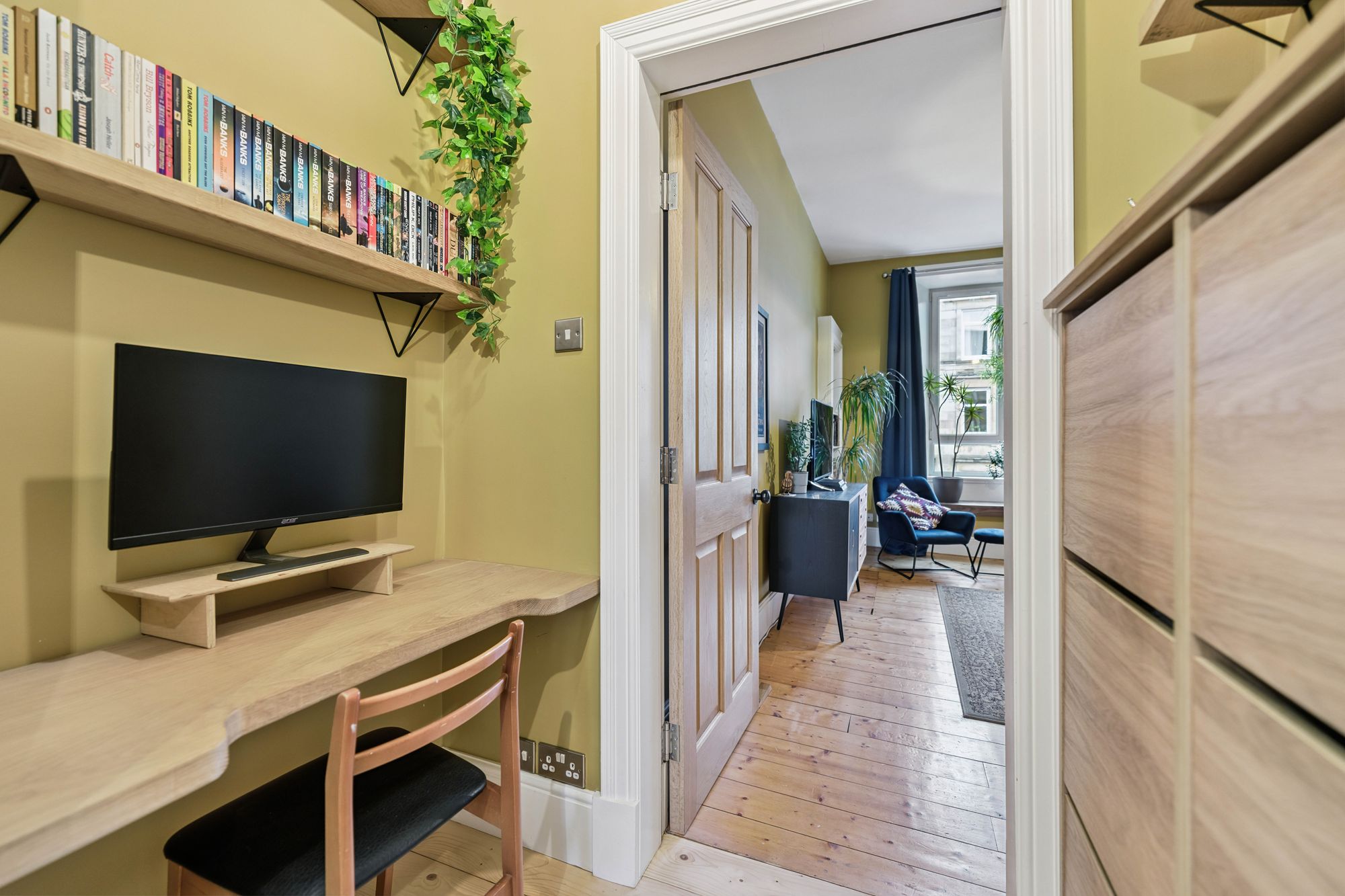Set on the second floor of a beautiful blonde sandstone tenement, this immaculate one-bedroom flat has been thoughtfully upgraded and finished to an exceptional standard, while retaining a wealth of charming period features.