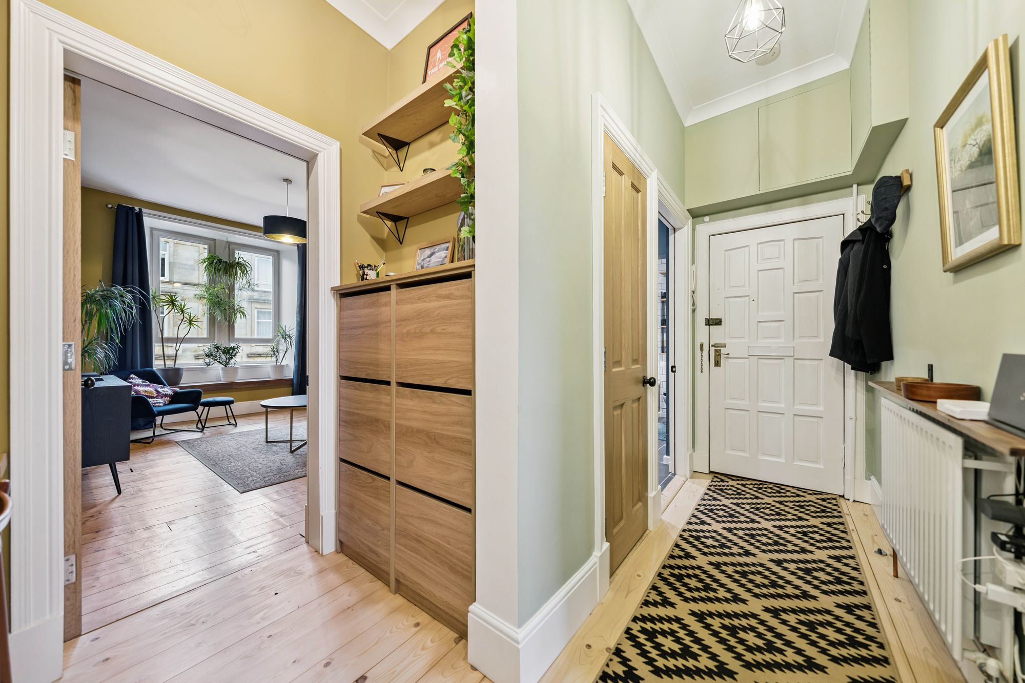 Perfectly positioned in the heart of Queen’s Park and Strathbungo — two of Glasgow’s most sought-after neighbourhoods — the flat is just moments from an eclectic mix of independent cafés, bars, shops and green spaces. Excellent transport links are also close at hand, with Queen’s Park train station a short walk away, a dedicated cycle lane into the city centre, and frequent bus services along Victoria Road and Pollokshaws Road.