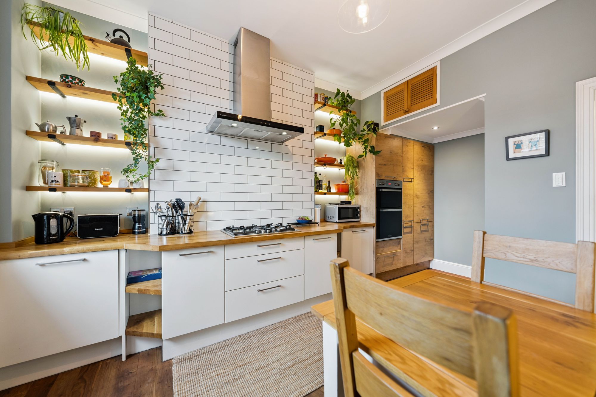 The bright and spacious lounge is a standout space with original floorboards, creating a perfect blend of traditional charm and contemporary style. To the rear, the modern dining-sized kitchen is both stylish and practical, fitted with a range of base and wall-mounted units, integrated appliances and ample space for a dining table and chairs.