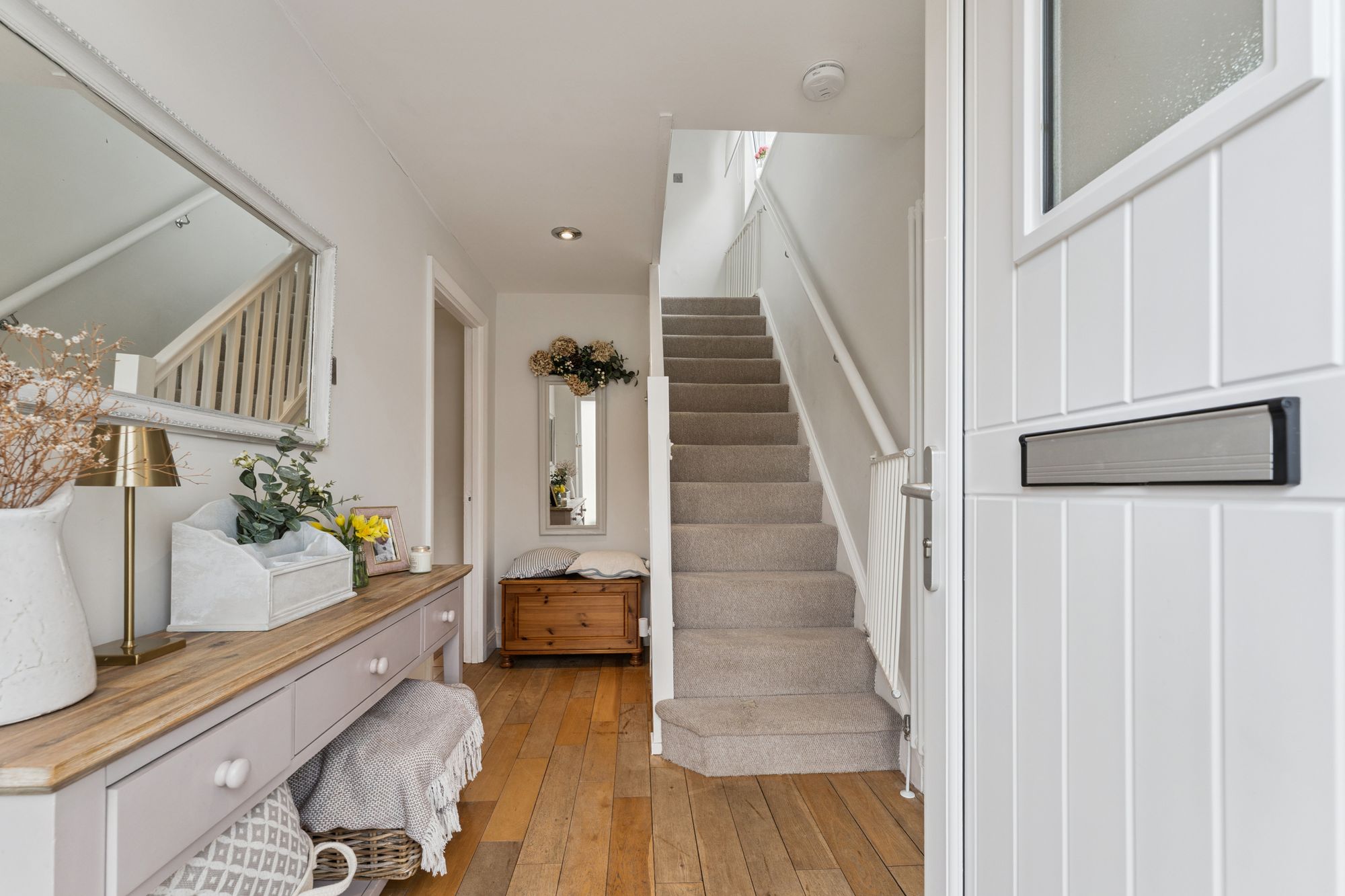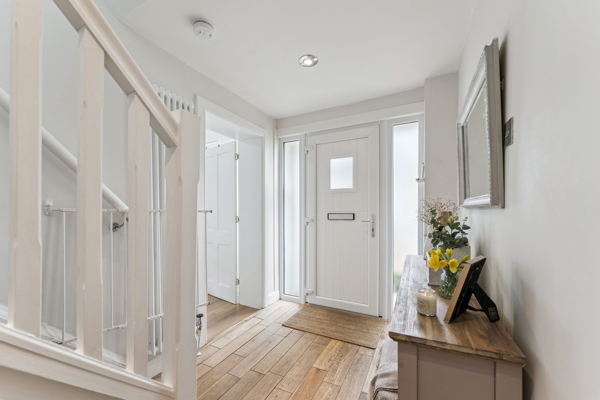 The specification of the property includes gas central heating and double glazing. Externally, the front and rear gardens are mainly laid to lawn. The southerly facing rear garden benefits from a lovely raised decking area, large shed and bordered fencing.