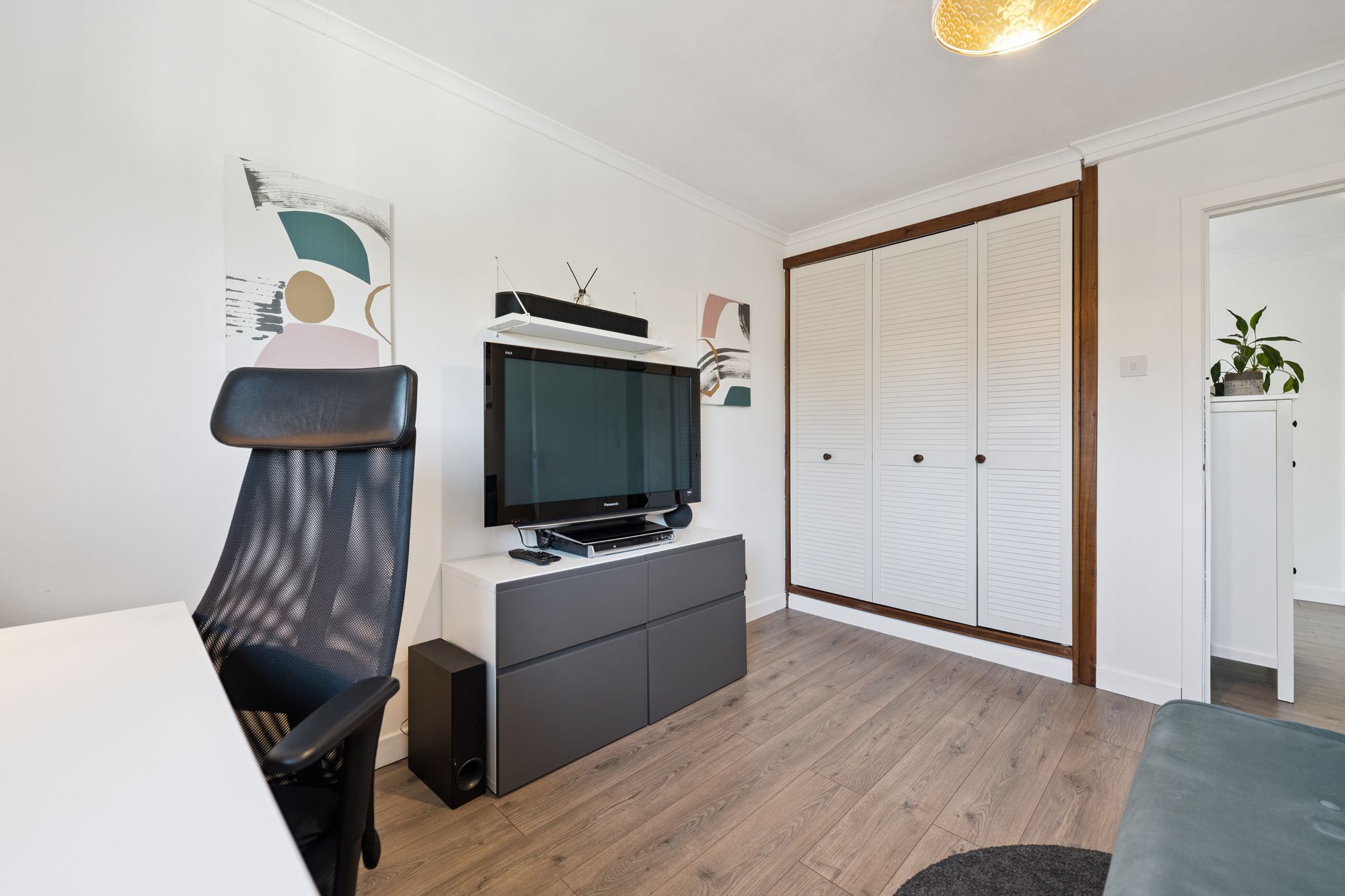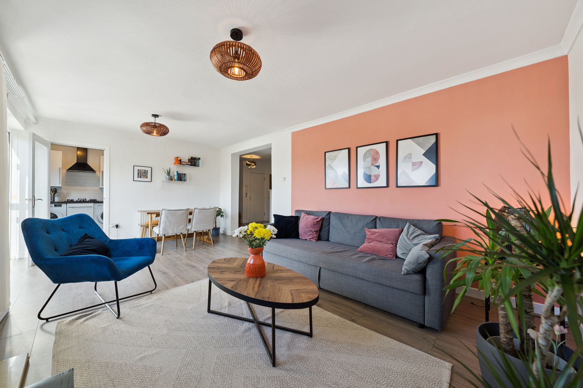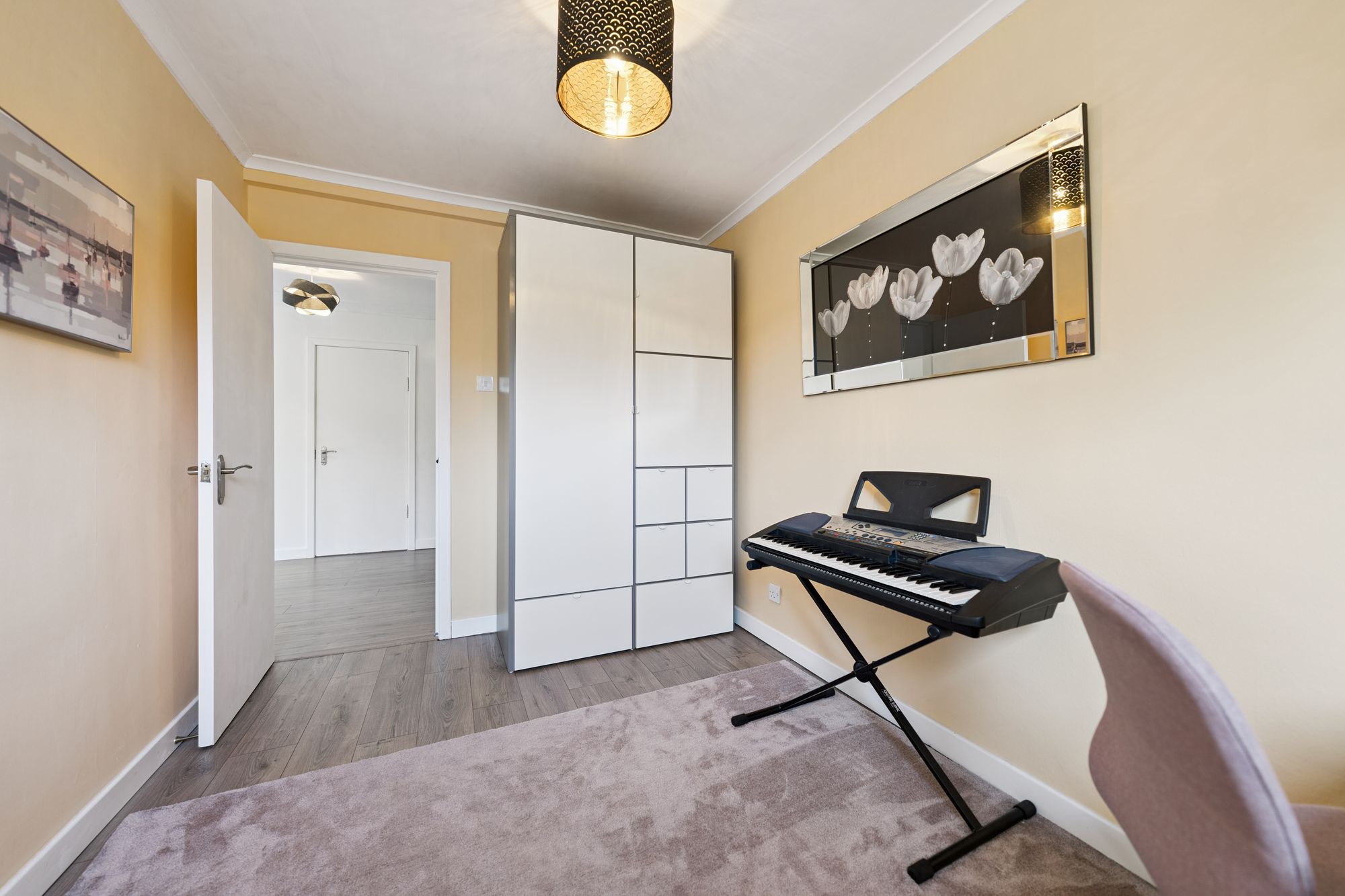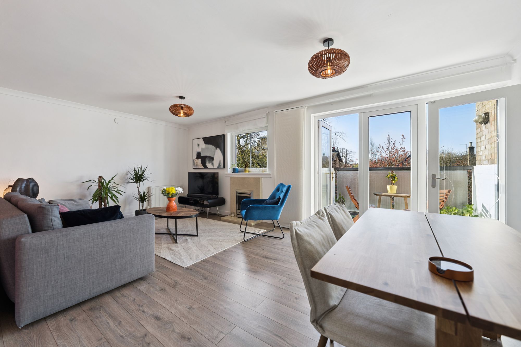 Occupying a bright second-floor position within a peaceful and well-established residential pocket, this impressive 1970s-built flat offers spacious and highly flexible accommodation across four principal apartments. Set within beautifully maintained residents’ grounds, the property further benefits from a private balcony enjoying a delightful leafy outlook.