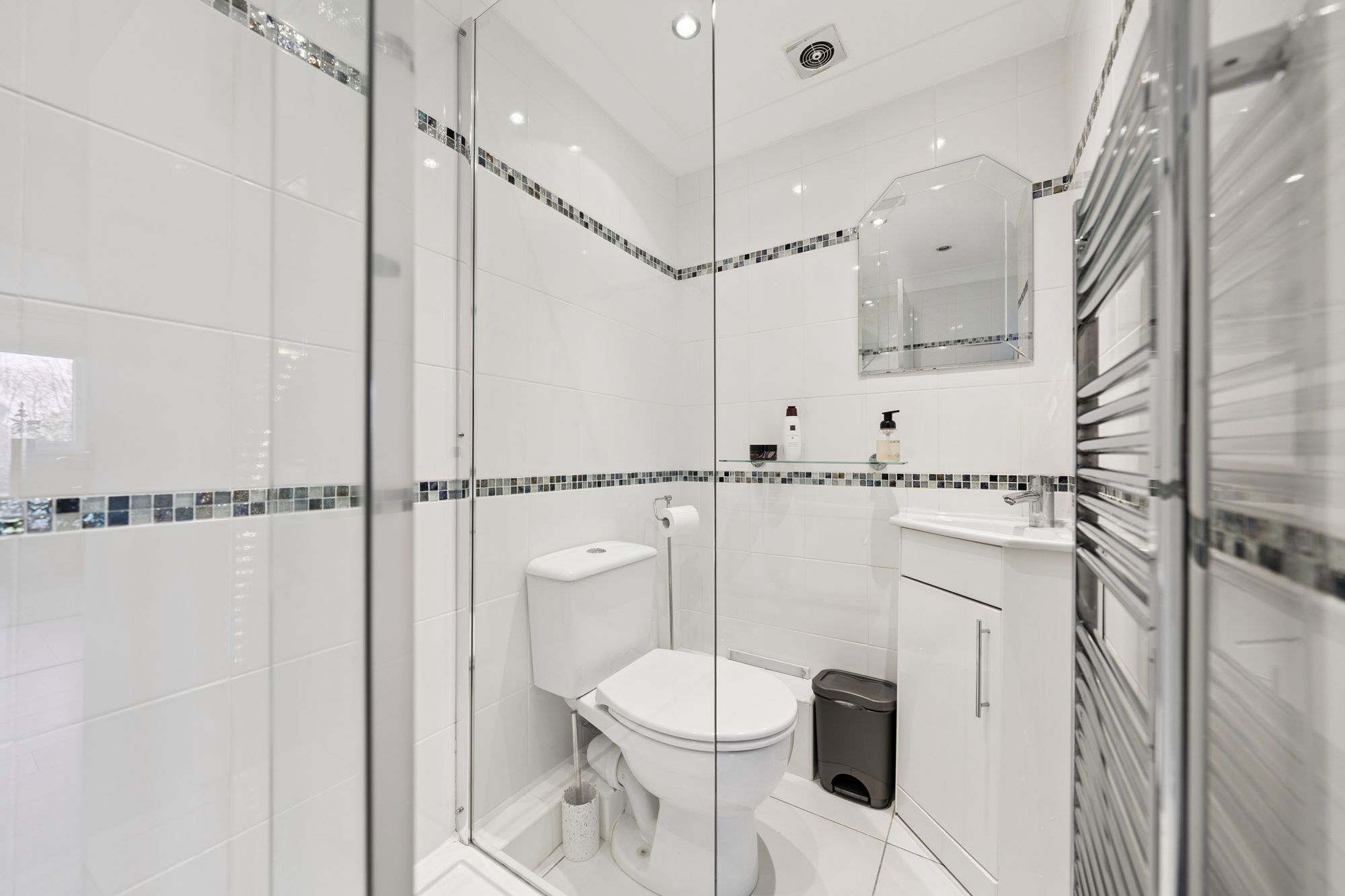 The property features a spacious master bedroom and a contemporary en-suite shower room. Two further well-proportioned double bedrooms, one with fitted wardrobes, offer excellent versatility for family living, guests or home working. The main bathroom with a three-piece suite completes the internal accommodation.