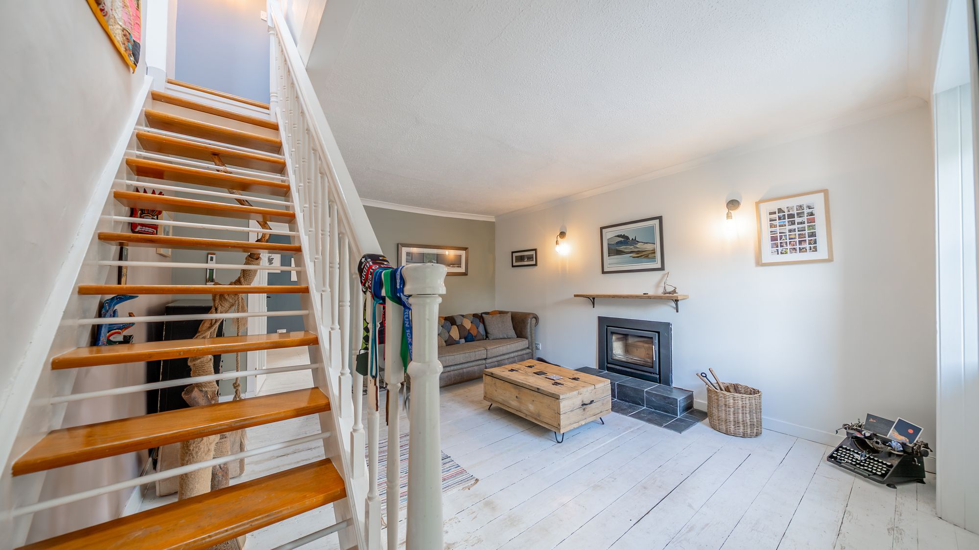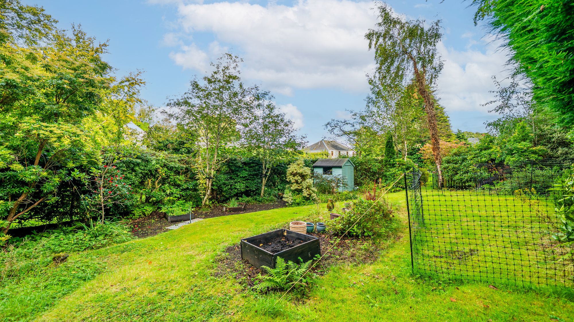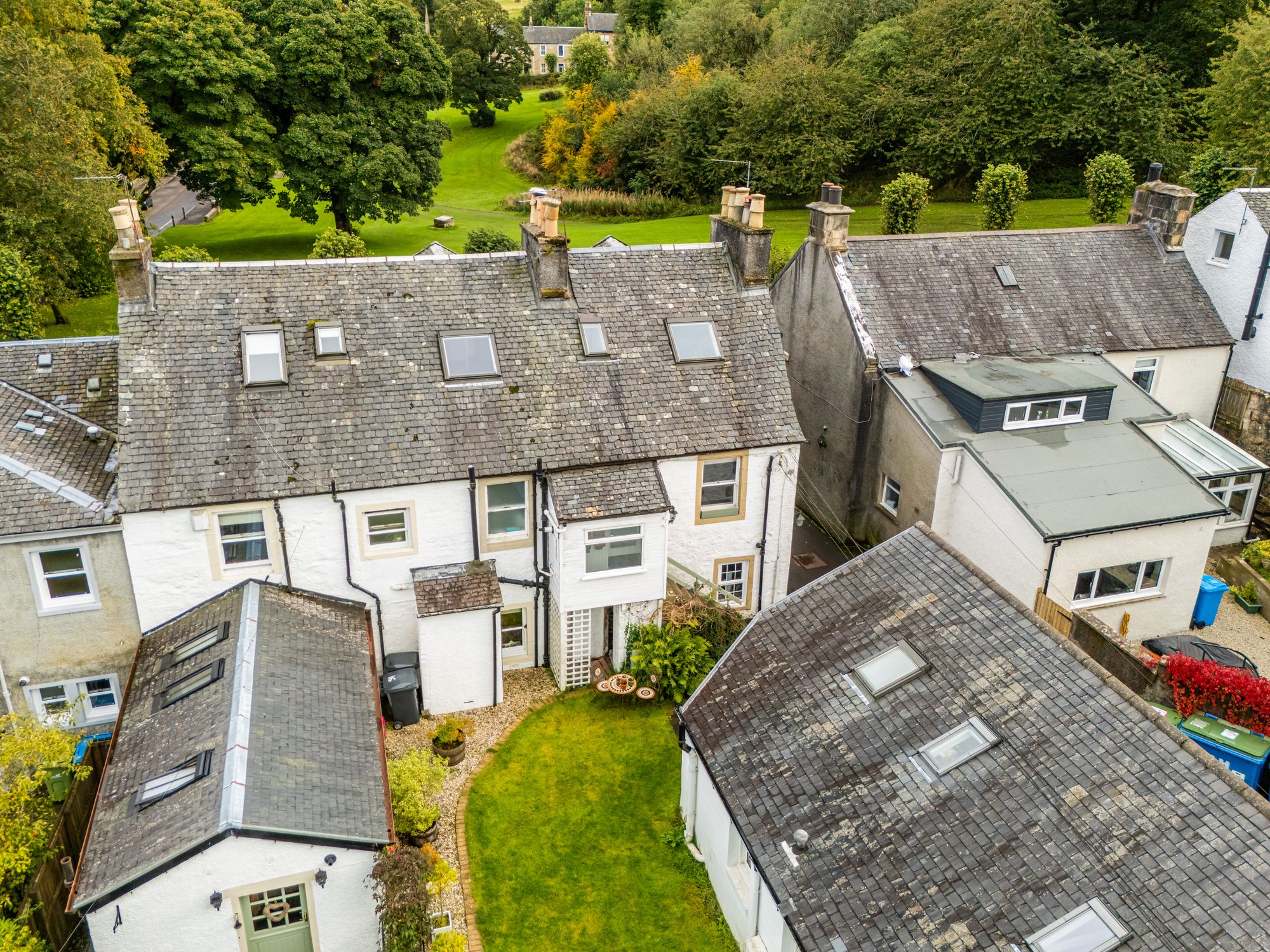 Upon entering the ground floor from a highly practical entrance porch, you are greeted by a cosy living room that exudes a rustic feel with striking views captured over the seemingly never ending garden and featuring a stunning solid fuel burner at its focal point. The generously sized kitchen is fully equipped with all necessary appliances and hosts a comprehensive range of base and wall mounted units along with ample space for family dining. The ground floor also hosts a well-presented double bedroom with built-in storage and a striking traditional bathroom featuring a white three-piece suite incorporating a convenient shower bath combo. Ascending to the upper floor, you will find two further good-sized double bedrooms, providing plenty of space for family living or guest accommodation. Externally, the property boasts significant garden grounds that are stunningly presented and ideal for al fresco entertaining. The property enjoys an excellent school catchment area and is well-connected with bus transport links to the greater Glasgow area. A host of local amenities such as shops, restaurants, bars, and cafes are within easy reach, while leisurely walks invite you to explore the picturesque surroundings.