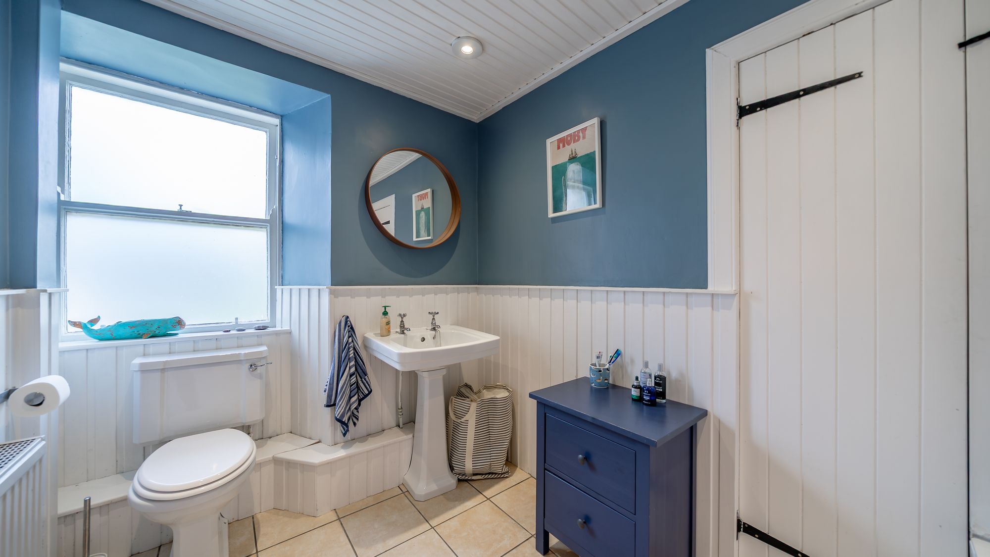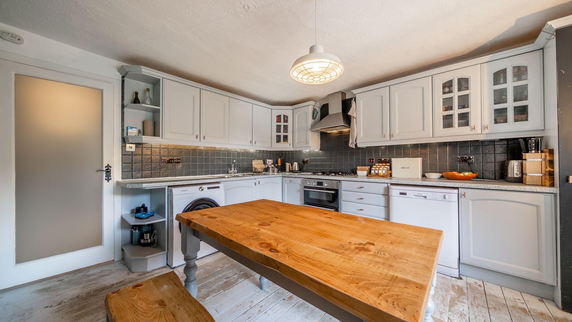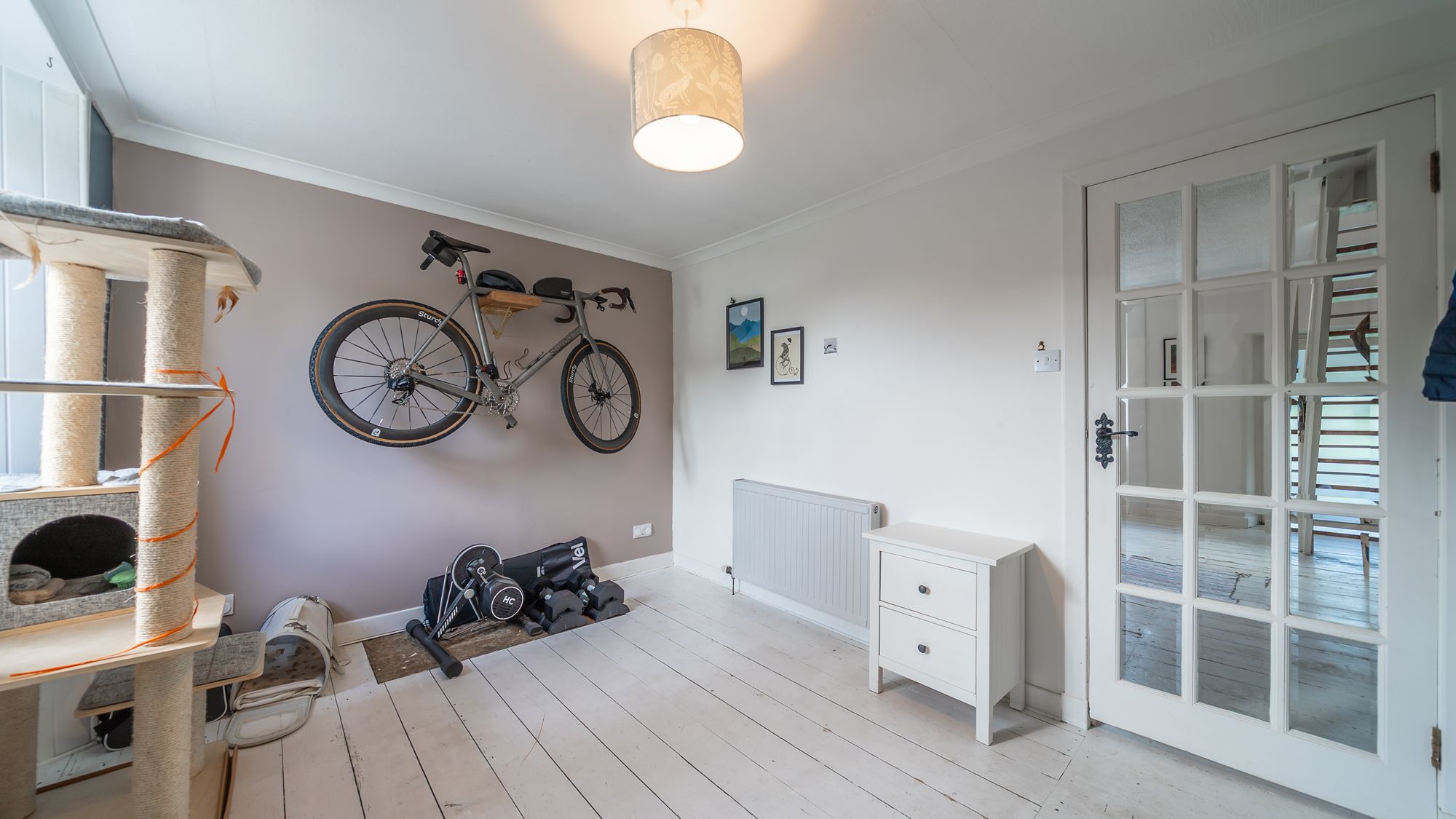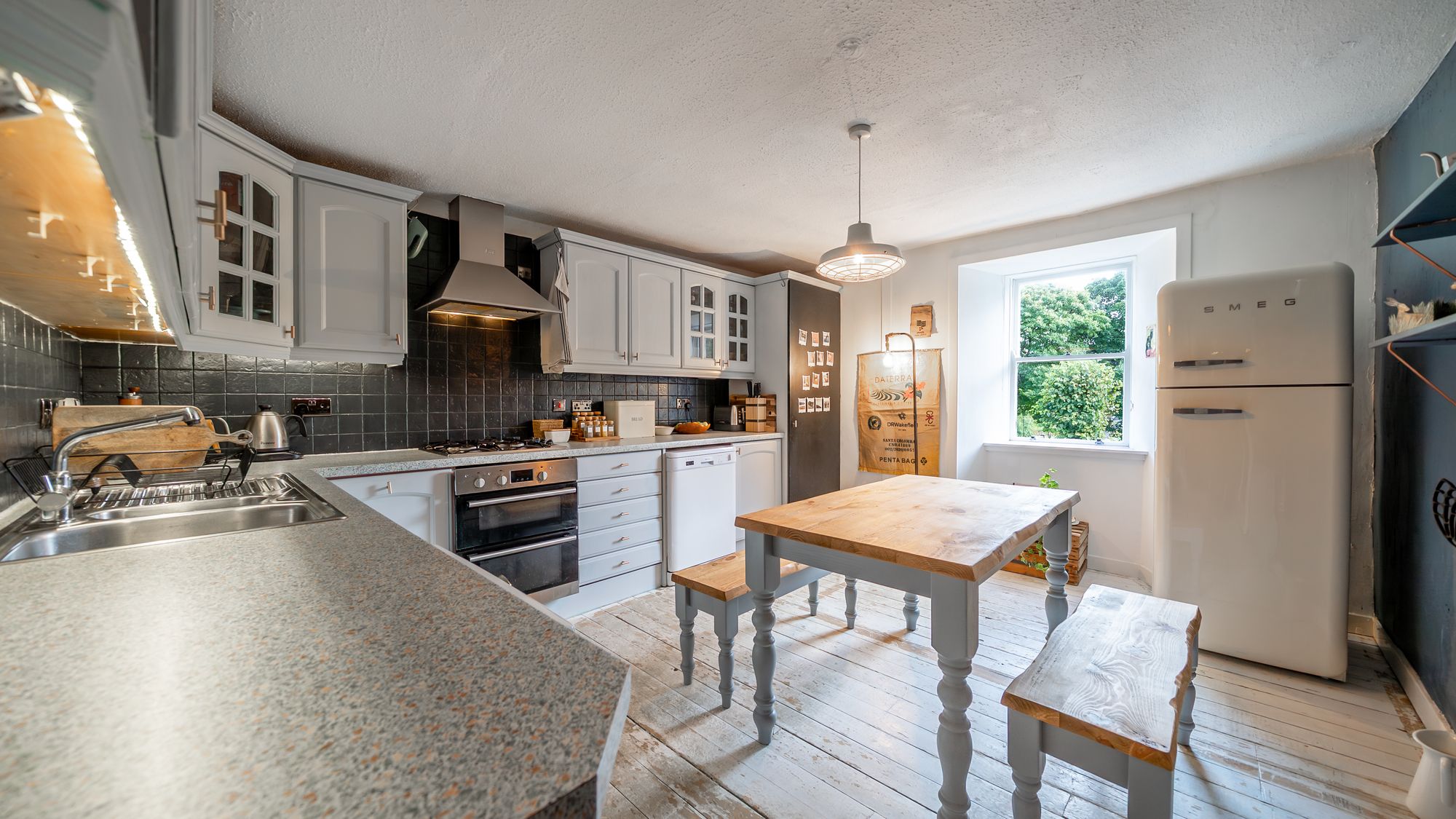 Upon entering the ground floor from a highly practical entrance porch, you are greeted by a cosy living room that exudes a rustic feel with striking views captured over the seemingly never ending garden and featuring a stunning solid fuel burner at its focal point. The generously sized kitchen is fully equipped with all necessary appliances and hosts a comprehensive range of base and wall mounted units along with ample space for family dining. The ground floor also hosts a well-presented double bedroom with built-in storage and a striking traditional bathroom featuring a white three-piece suite incorporating a convenient shower bath combo. Ascending to the upper floor, you will find two further good-sized double bedrooms, providing plenty of space for family living or guest accommodation. Externally, the property boasts significant garden grounds that are stunningly presented and ideal for al fresco entertaining. The property enjoys an excellent school catchment area and is well-connected with bus transport links to the greater Glasgow area. A host of local amenities such as shops, restaurants, bars, and cafes are within easy reach, while leisurely walks invite you to explore the picturesque surroundings.