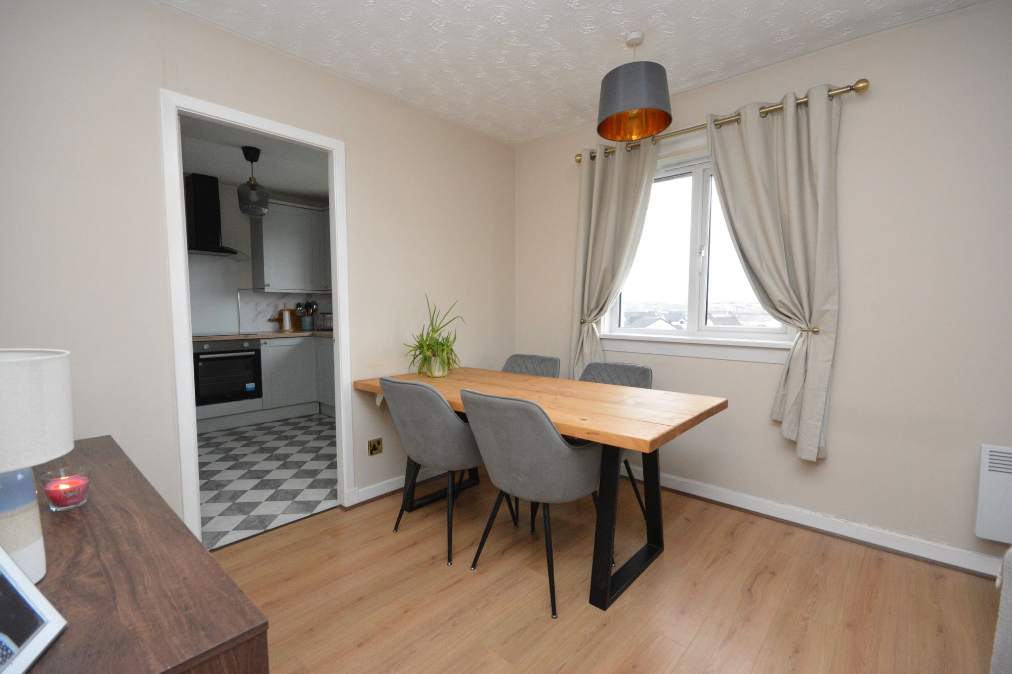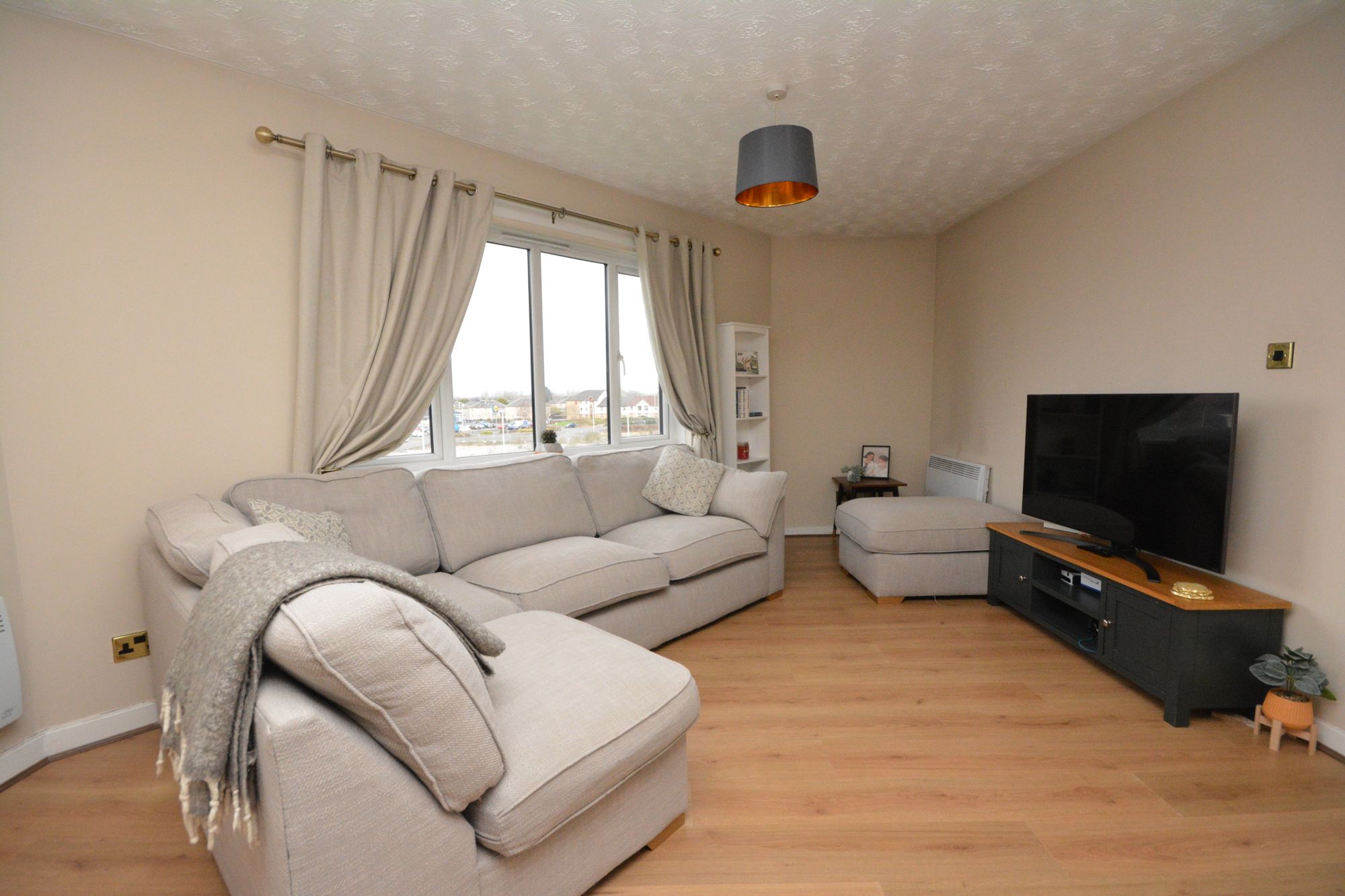 Access to the property is through a shared entrance way with secure entry system. The private reception hallway has timber laminate flooring and a useful cloaks/storage cupboard off. The impressive sitting/dining room extends to in excess of twenty three feet in length and has multiple window formations taking full advantage of the delightful views. The bright kitchen was refitted in 2022 and has a useful storage cupboard off, integrated oven, hob, extractor hood and is offered for sale with washing machine and fridge freezer. There are two well proportioned double bedrooms each of which have fitted storage. The accommodation is completed by a stylish, refitted (Nov 2025) bathroom with Triton electric shower, storage and chrome radiator. Practical features include electric heating and double glazing. An ideal opportunity for the first time buyer or buy to let investor, early viewing is highly recommended.