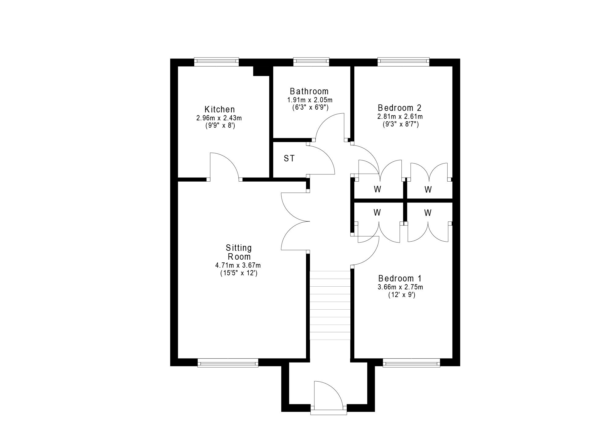 Bedroom Two 9’3” x 8’7” 2.82m x 2.62m