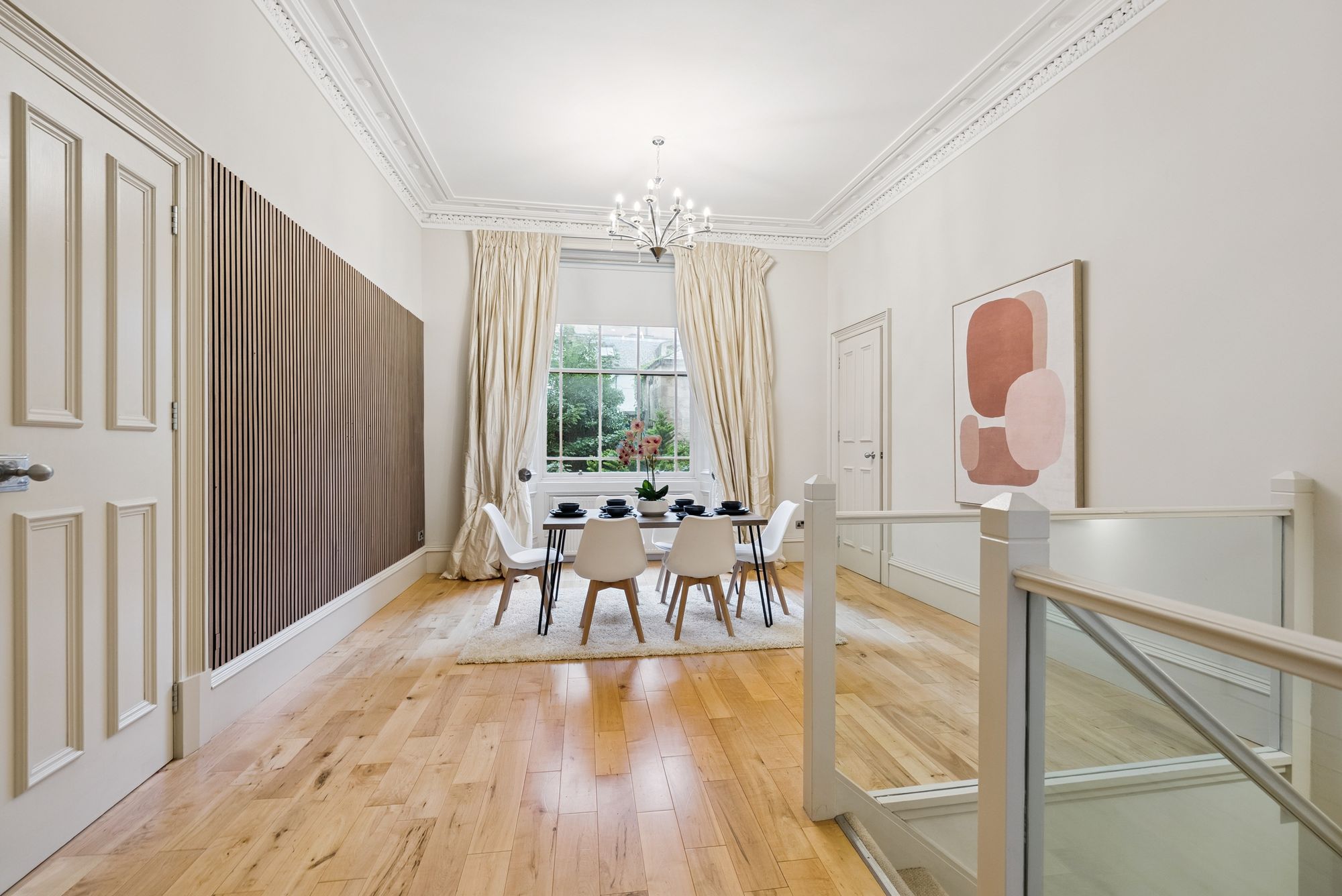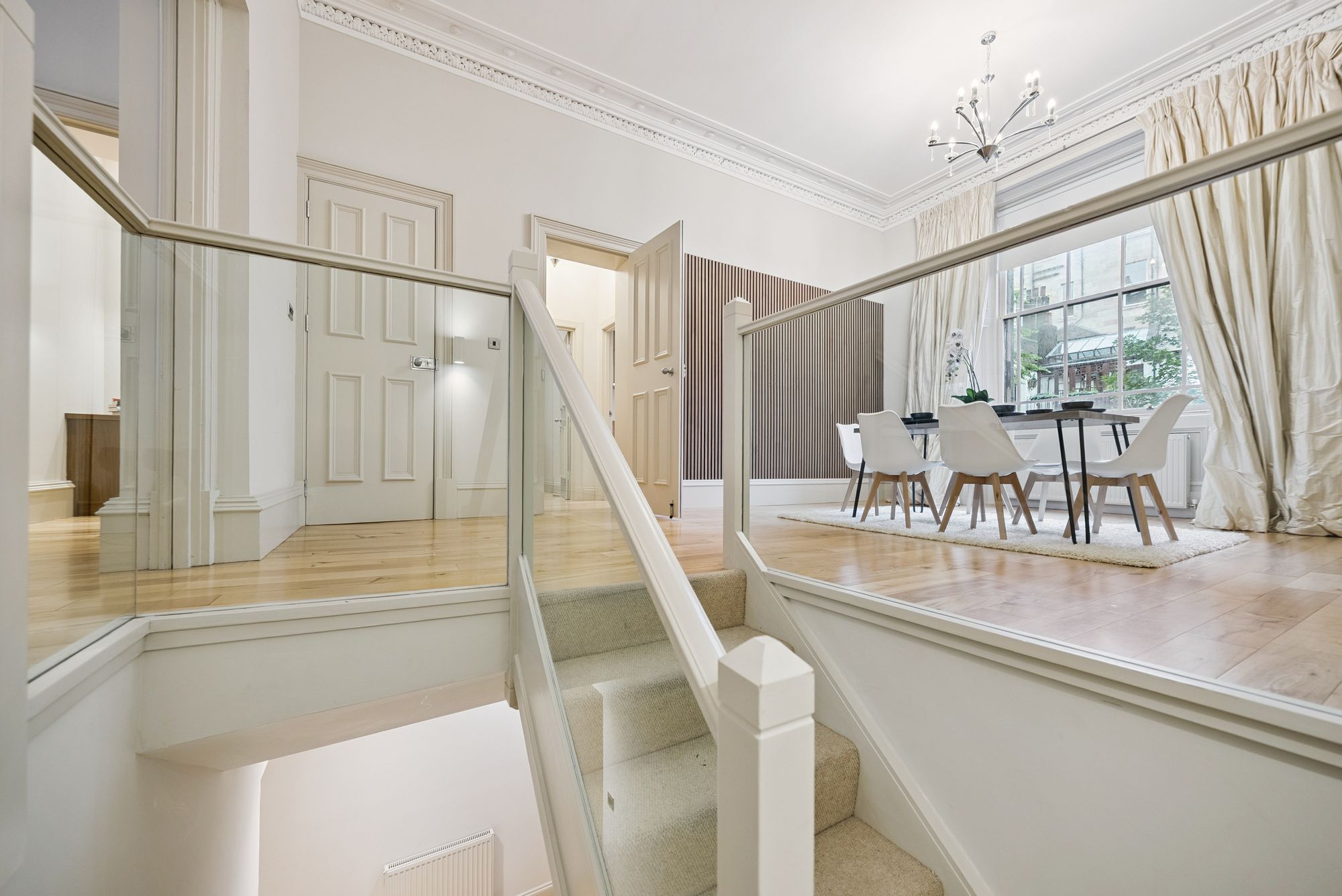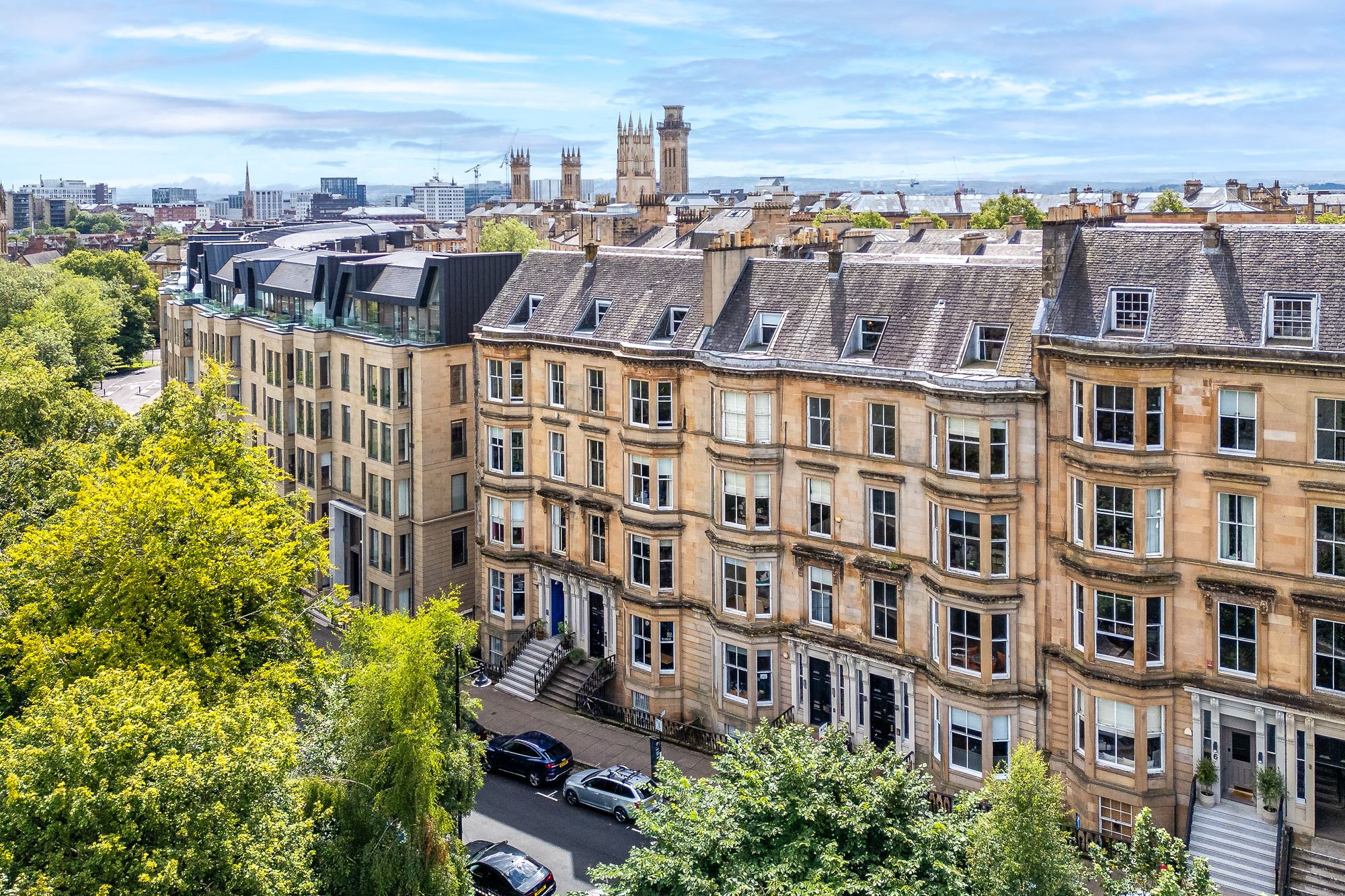 Park Quadrant is a beautiful address which enjoys a peaceful, leafy location in Glasgow's highly desirable 'Park' district. It is an extremely central, yet peaceful position between the West End & City centre, at the edge of Kelvingrove Park. This position places the home for sale within easy walking distance of a superb selection of local amenities including restaurants, bars, coffee shops, convenience stores and public transport links. The 'Park ' district is particularly popular with professionals who work at Glasgow University and indeed those who work throughout West Central Scotland and require rapid access to major road networks - junction 18 of the M8 motorway being just a few minutes' drive from the property's front door.