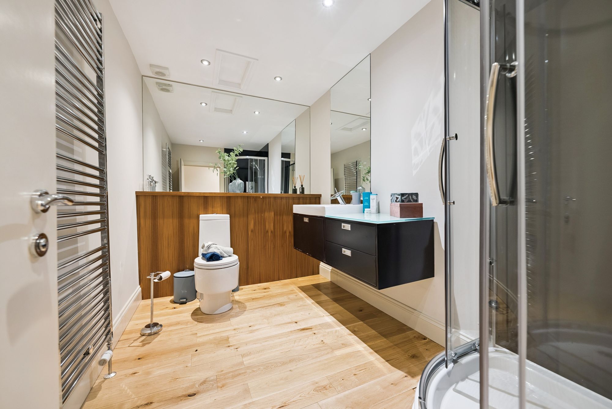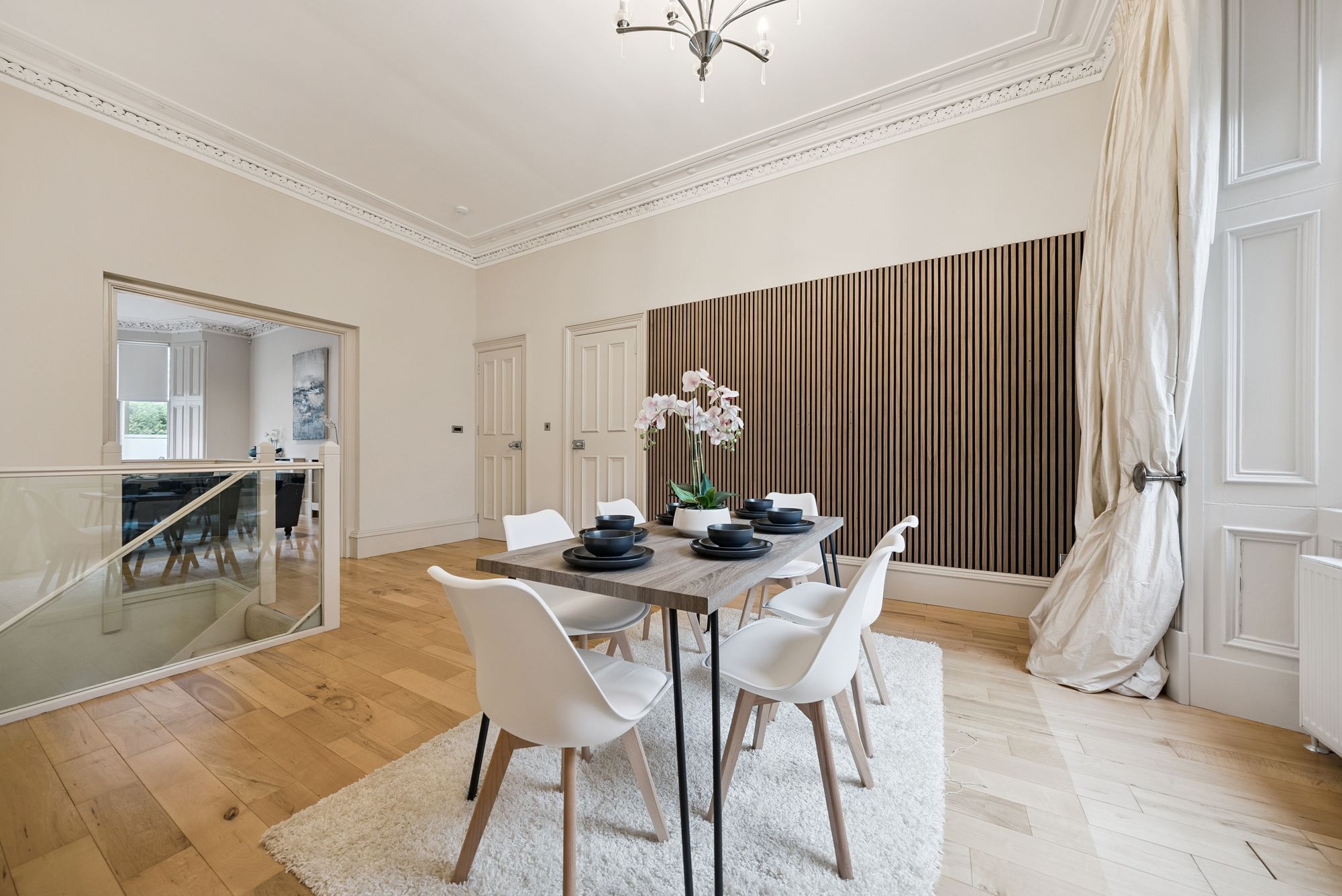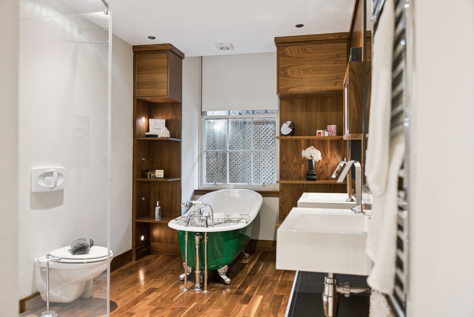 However, in brief the accommodation extends to; vast bay windowed living room with ornate ceiling cornice and a large walk-in cupboard off which is utilised as a home office. The dining area is open to the living room and provides another fantastic space for relaxing or formal dining. There is a dining sized kitchen with base and wall mounted units, integrated appliances and tiled splash back. The ground floor accommodation is completed by a w/c. At garden level, there is a hallway with storage off, three generous bedrooms, including a bay windowed principal with an extremely stylish rolltop/free standing bath, double wash hand basin and a large shower cubicle. The accommodation is completed by a shower room with walk in shower.