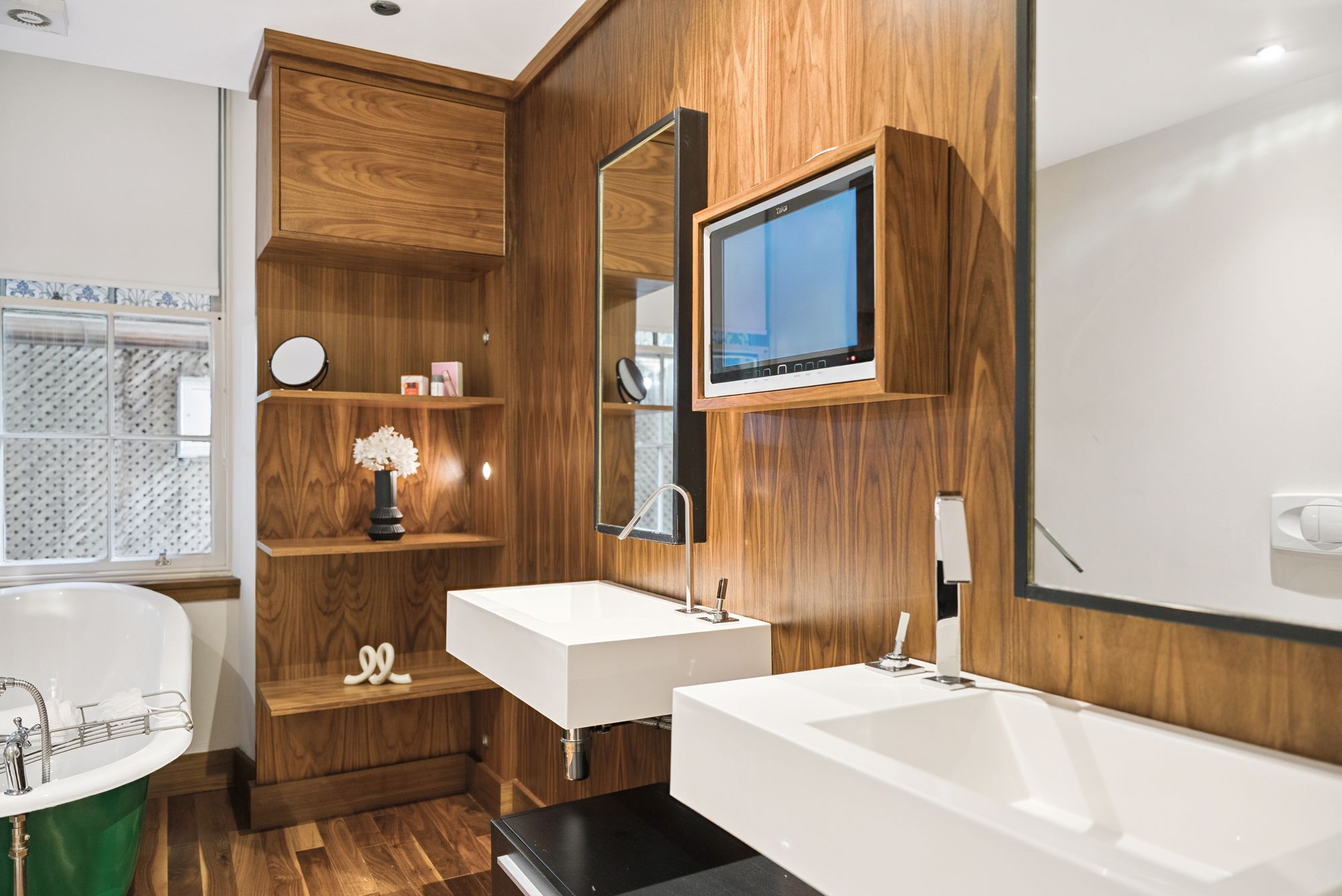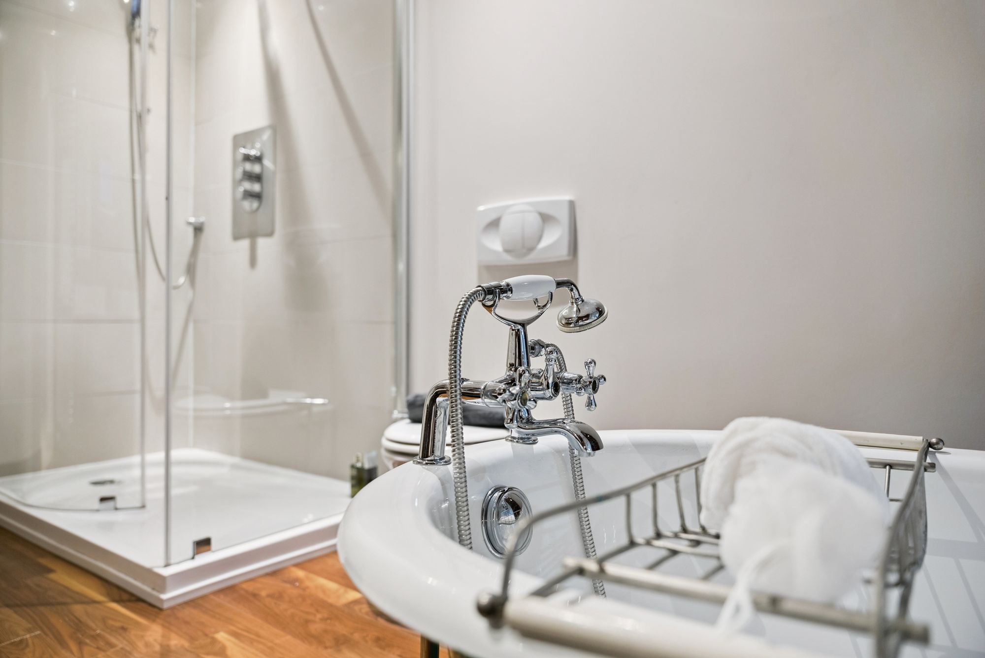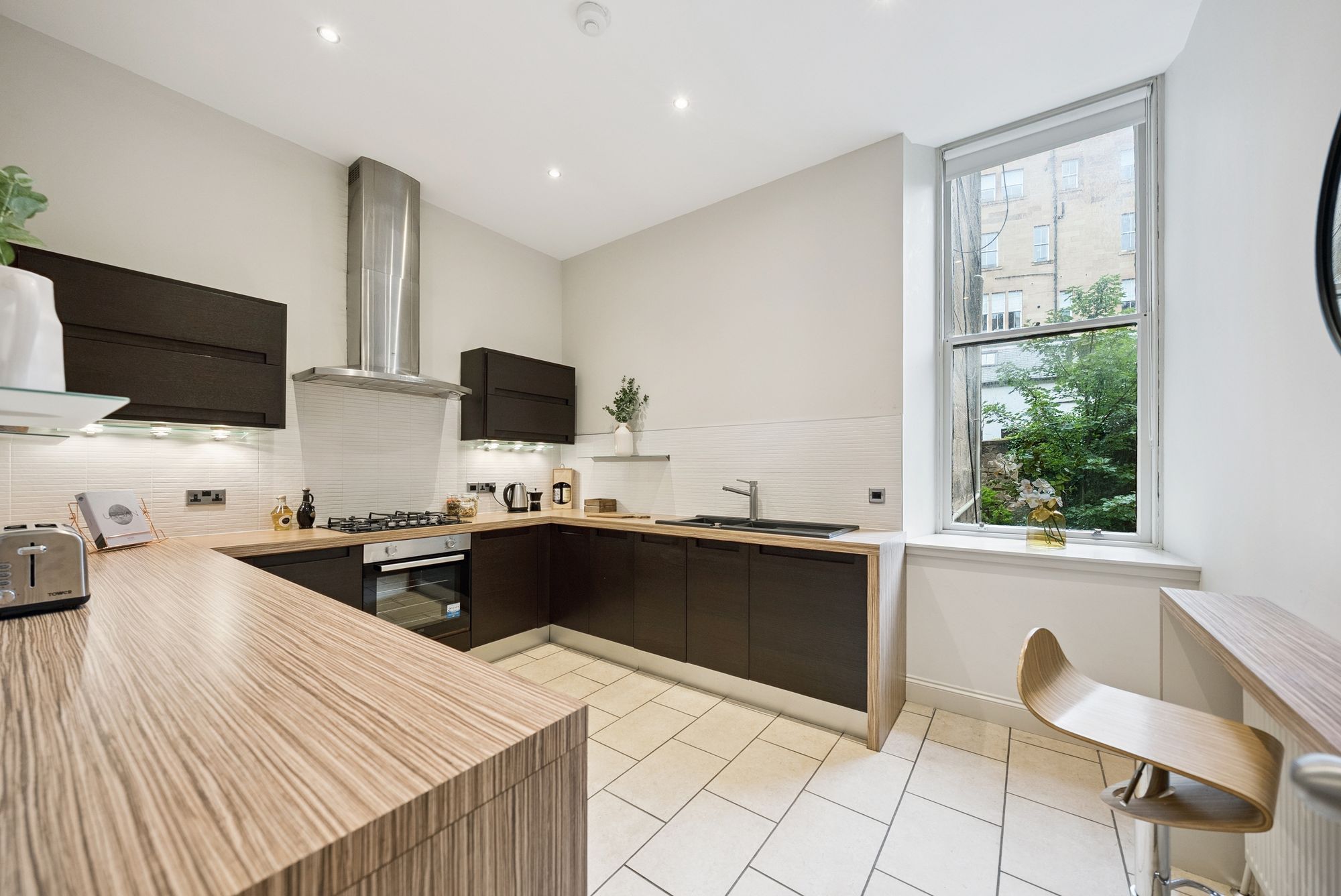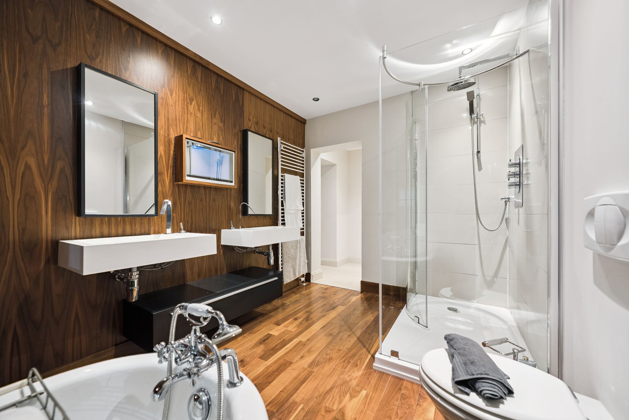 However, in brief the accommodation extends to; vast bay windowed living room with ornate ceiling cornice and a large walk-in cupboard off which is utilised as a home office. The dining area is open to the living room and provides another fantastic space for relaxing or formal dining. There is a dining sized kitchen with base and wall mounted units, integrated appliances and tiled splash back. The ground floor accommodation is completed by a w/c. At garden level, there is a hallway with storage off, three generous bedrooms, including a bay windowed principal with an extremely stylish rolltop/free standing bath, double wash hand basin and a large shower cubicle. The accommodation is completed by a shower room with walk in shower.