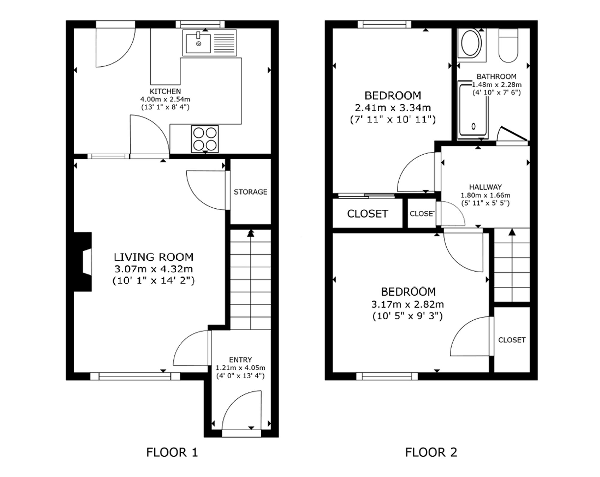 Upstairs, the first floor offers two well-proportioned bedrooms along with a modern shower room. The bedrooms provide flexible accommodation and can comfortably serve as sleeping space, a home office, or additional storage.