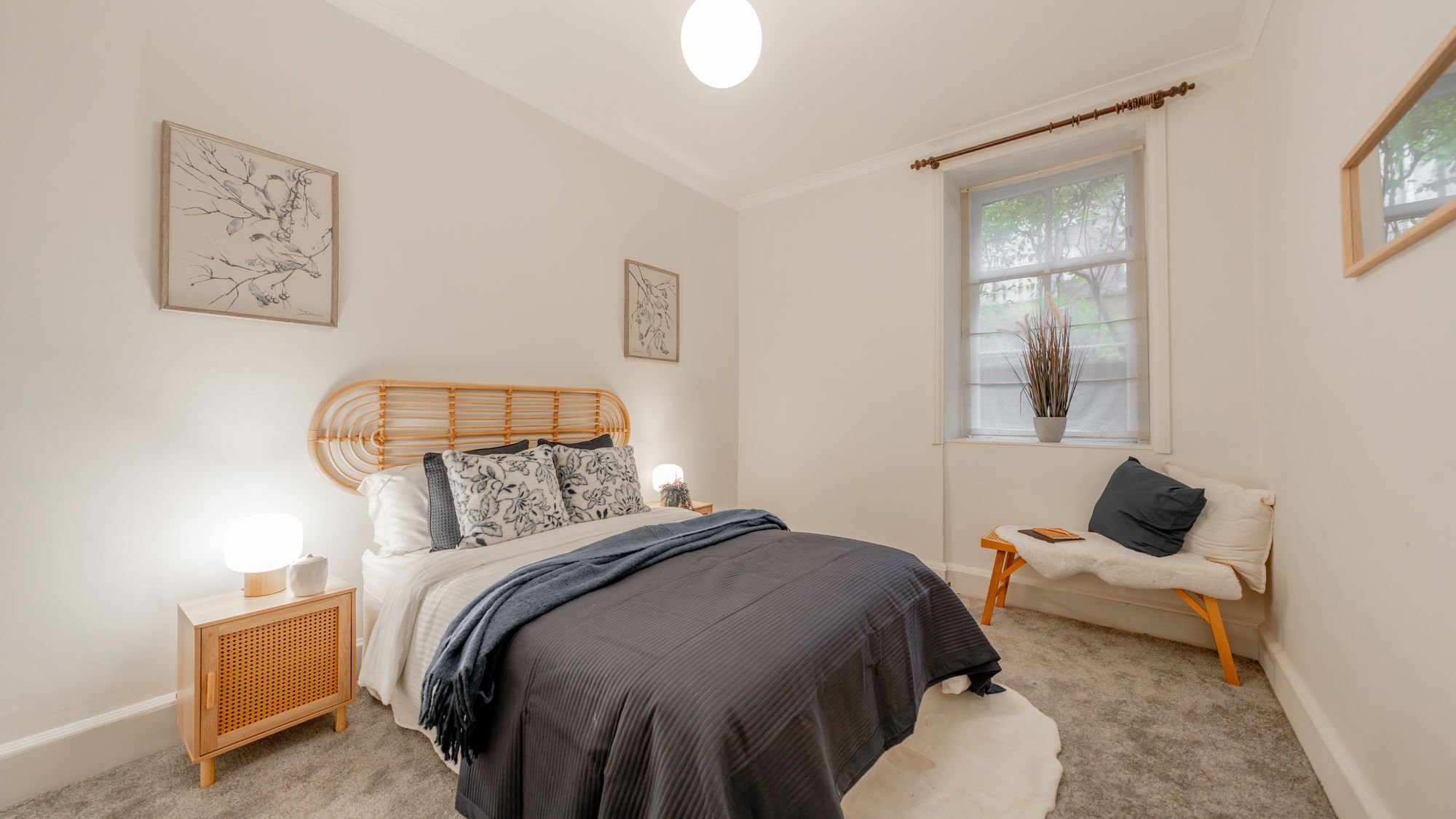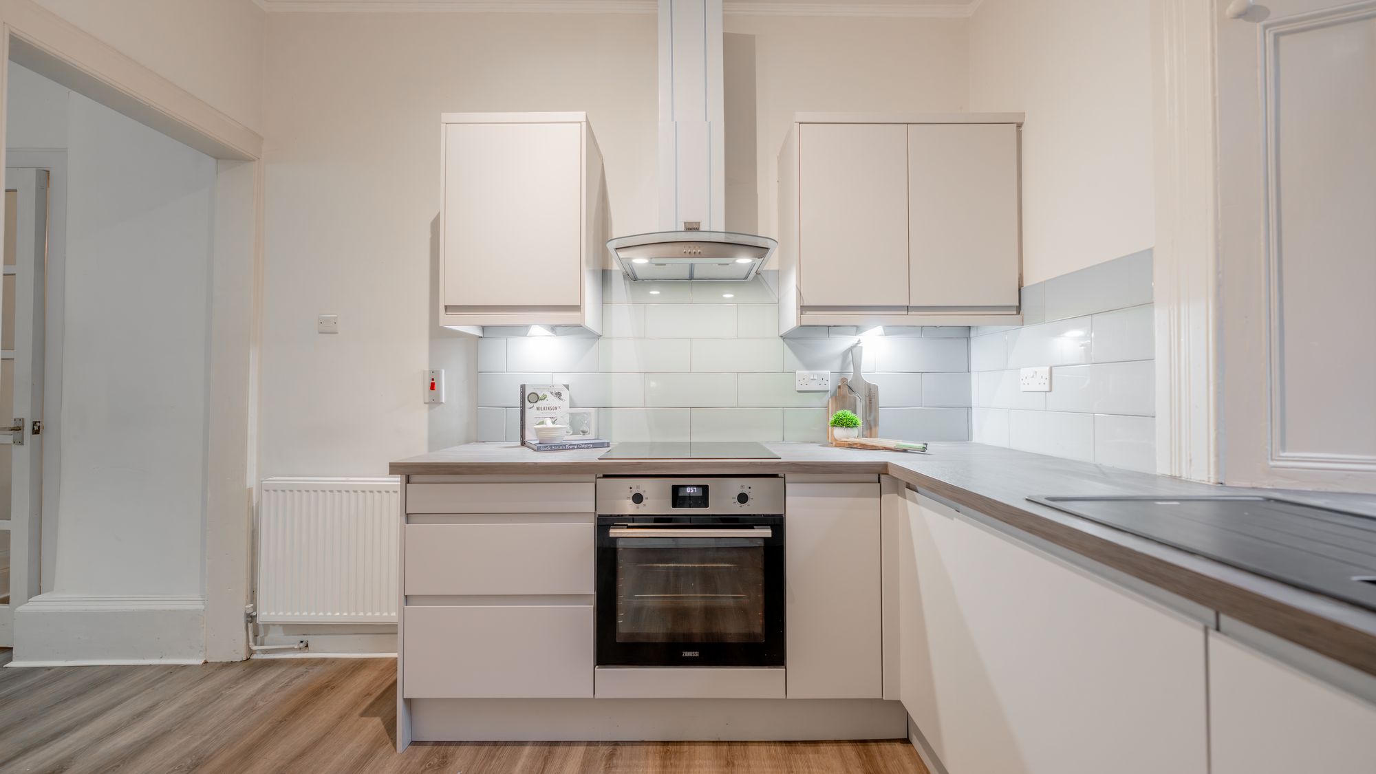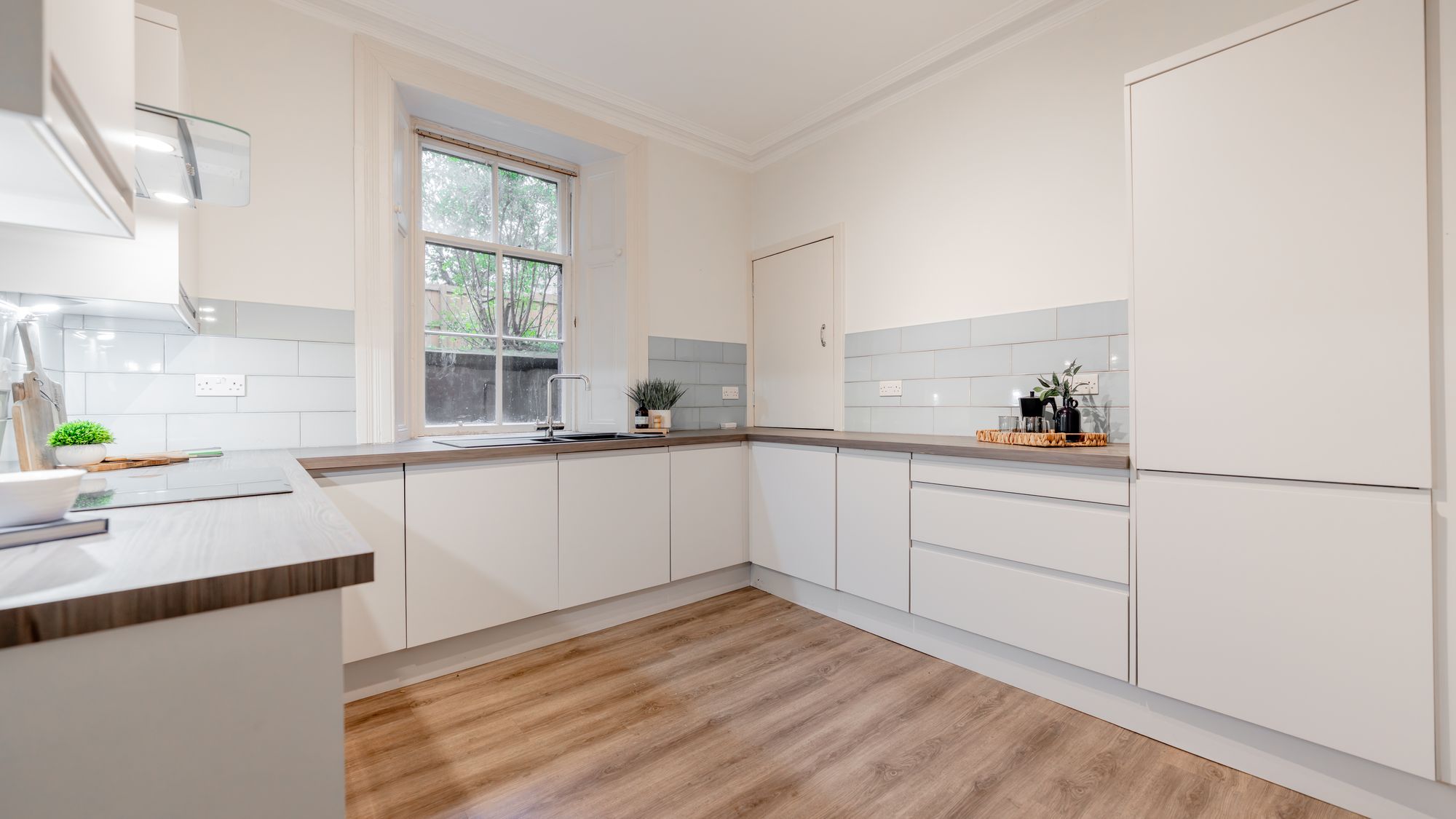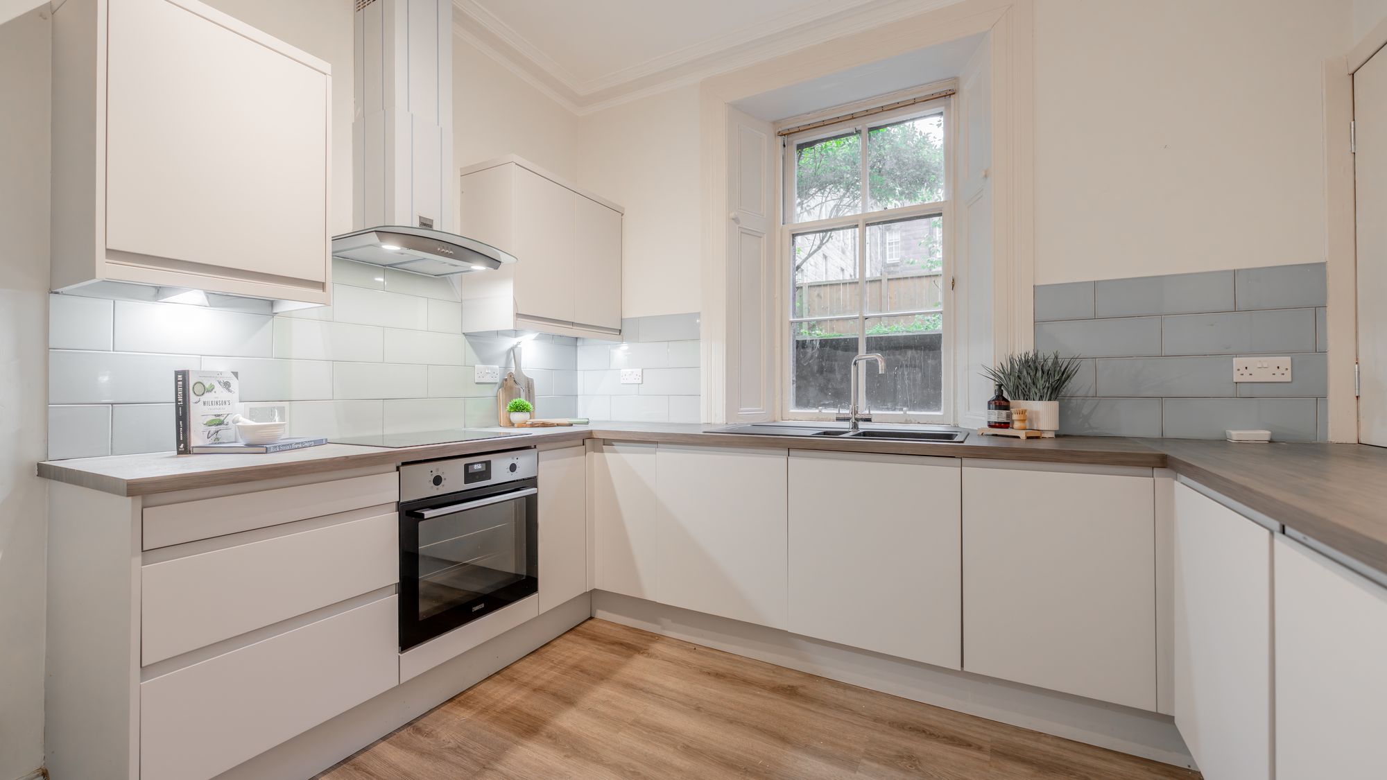 Set on the garden level of a handsome period building, this spacious and bright property seamlessly blends traditional charm with contemporary style. The accommodation is all on one level and extends to a generous layout comprising: a welcoming reception hallway with storage cupboard, an impressive bay-windowed lounge enjoying dual aspect natural light, and a newly fitted modern dining kitchen complete with an excellent range of wall and base units, integrated appliances, and ample space for entertaining.