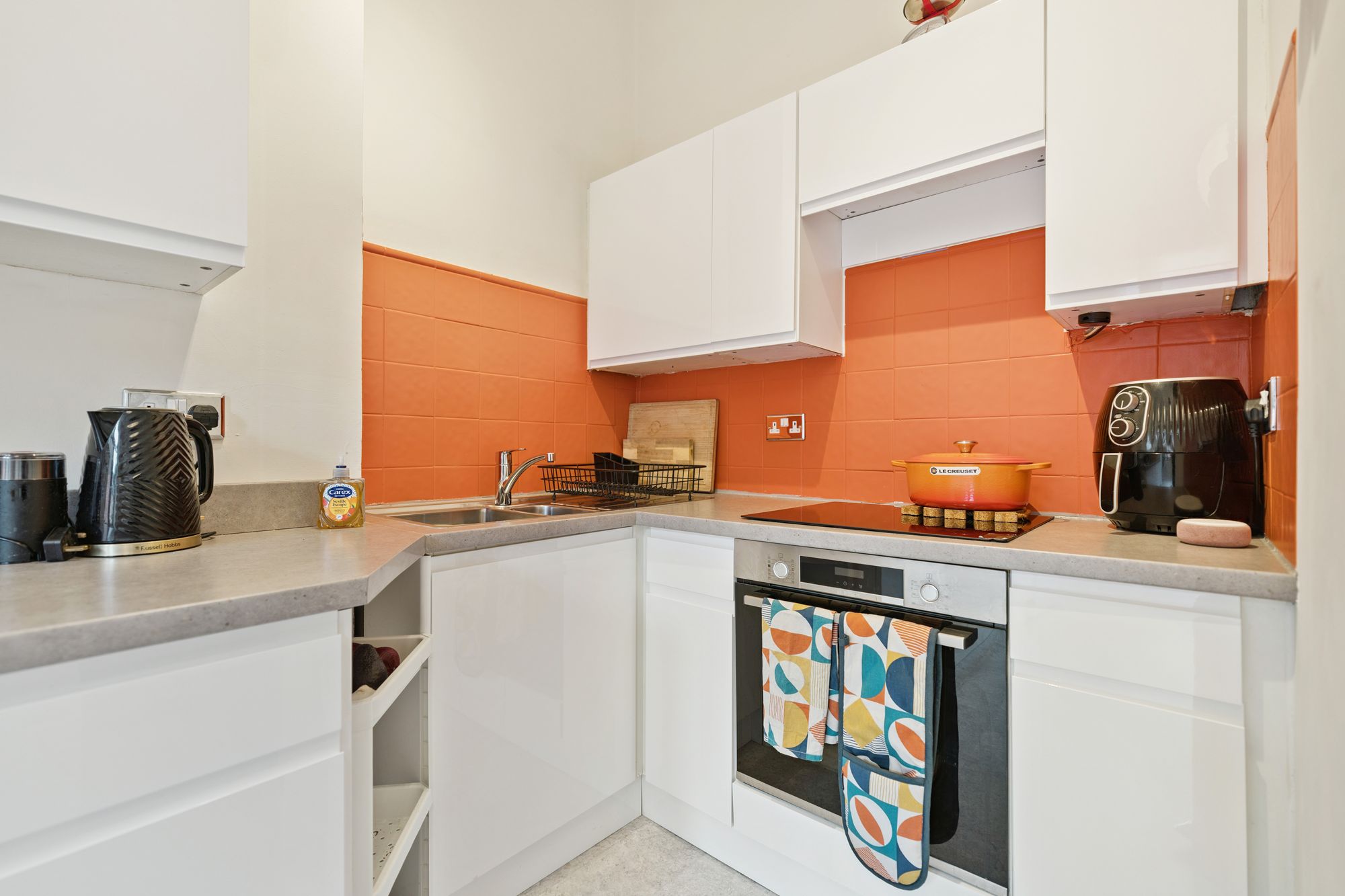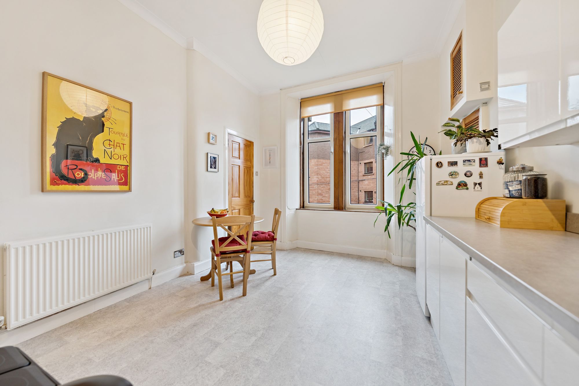 The apartment for sale is a large, one-bedroom example which offers bright, airy living space that will appeal to many. The attached photographs, HD video and floorplan will give you some idea of the size, style and specification of the property but viewers are encouraged to visit in person to fully appreciate the stunning architectural features, surprising levels of storage space and most importantly the quality of finish throughout this charming South Side home. In brief, the accommodation extends to; broad reception hall with storage off, bay windowed lounge, bathroom with shower over bath, double bedroom and a dining sized kitchen with a handy utility room off.