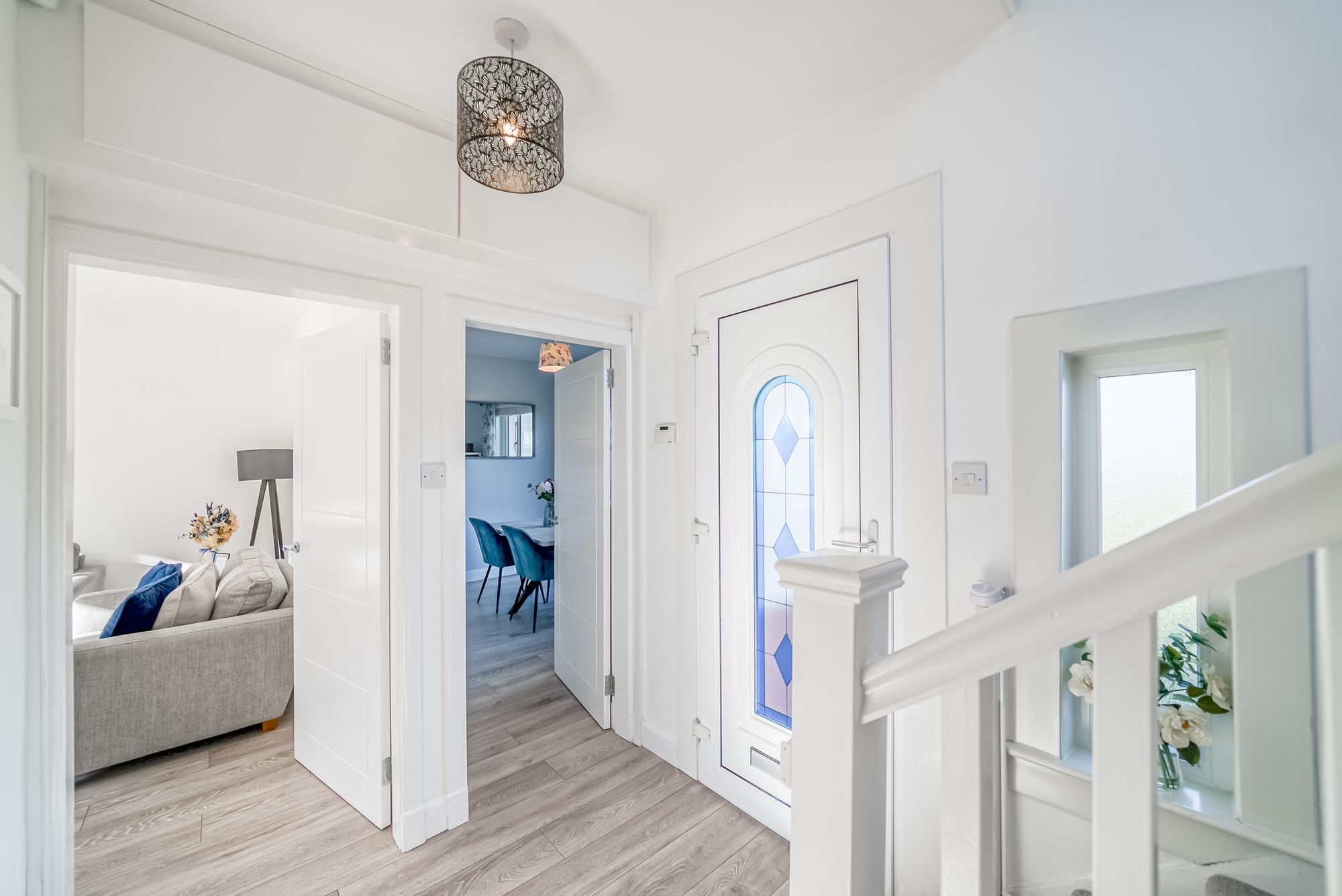 The property enjoys a prominent position on Damshot Crescent and offers spacious, enclosed garden grounds to the front and rear. The gardens are primarily laid as with lush lawns and is accompanied by a generous area of decking in the rear garden. The rear gardens are particularly private providing a fabulous space for family entertaining.