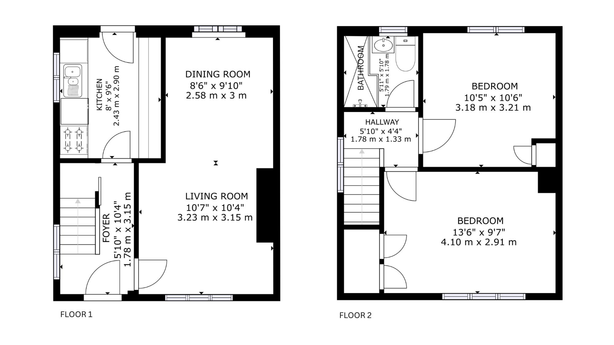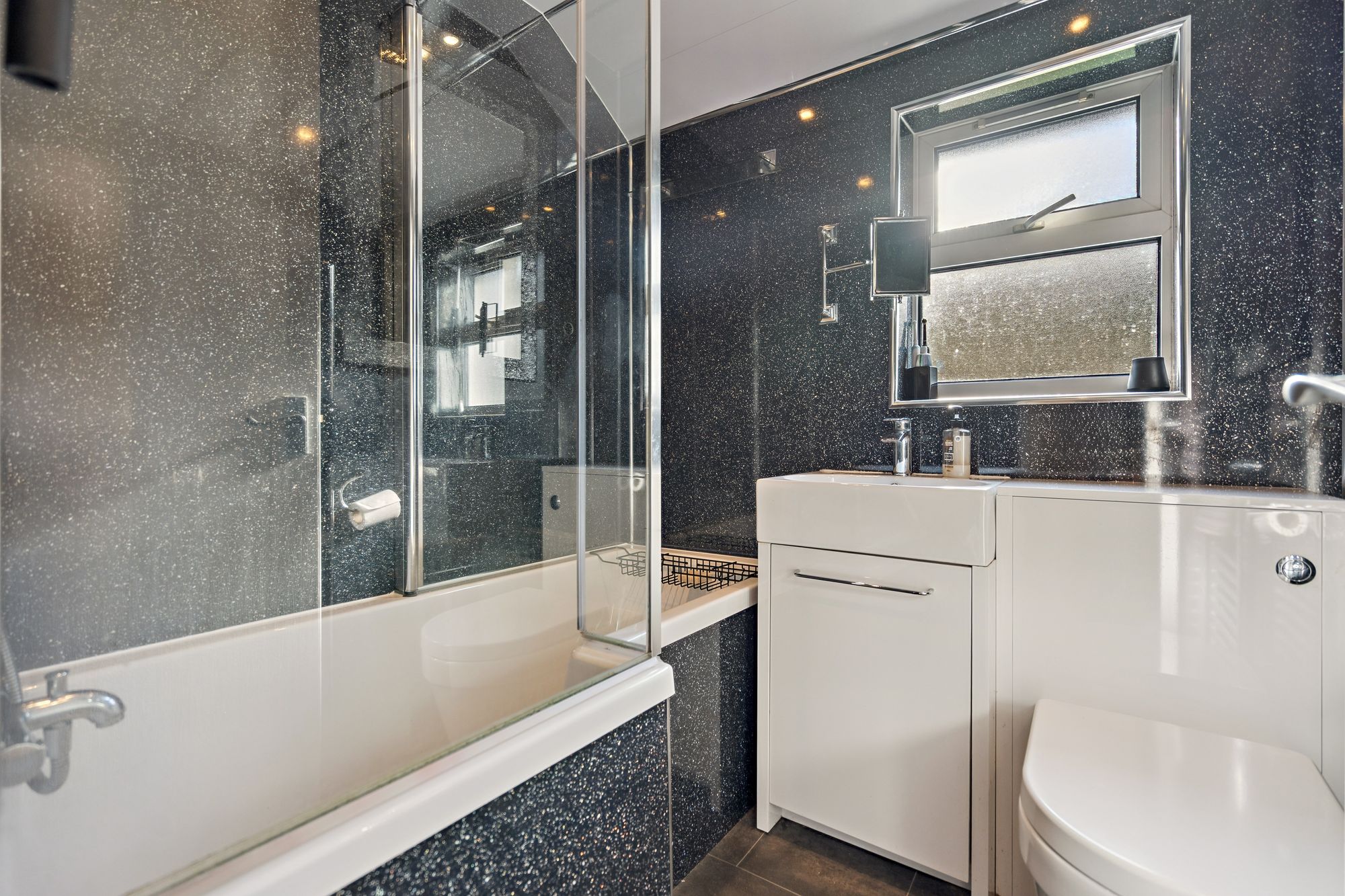 Upstairs, the property boasts two generously sized double bedrooms, each complete with integrated storage solutions to maximise space and maintain a clean, uncluttered feel. The family bathroom is well-appointed with contemporary fixtures and fittings, providing a comfortable and stylish environment.