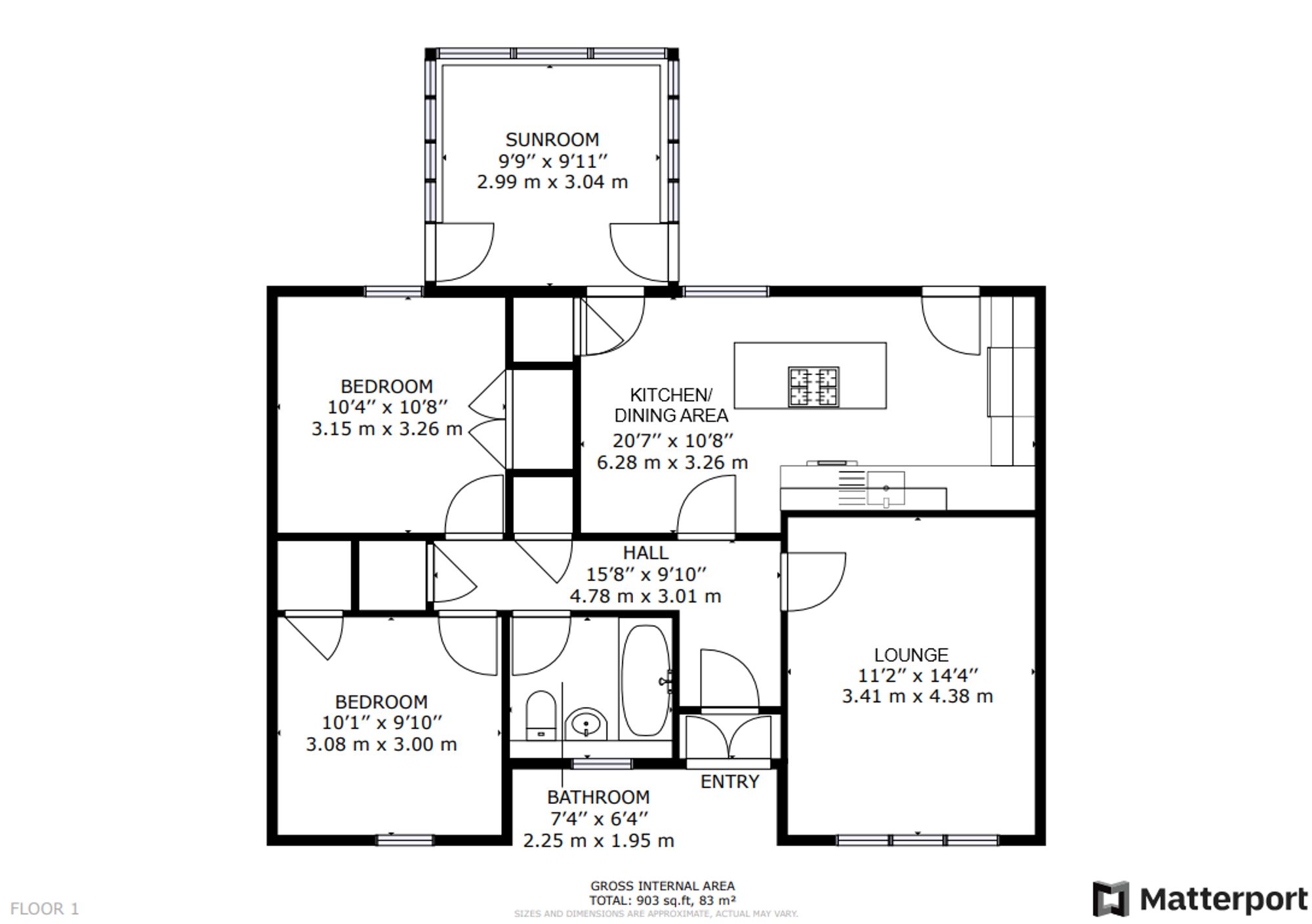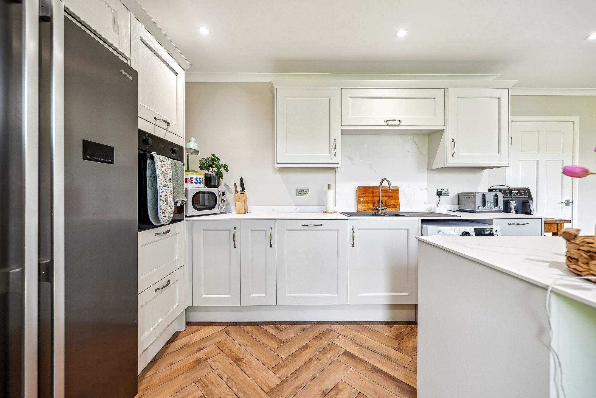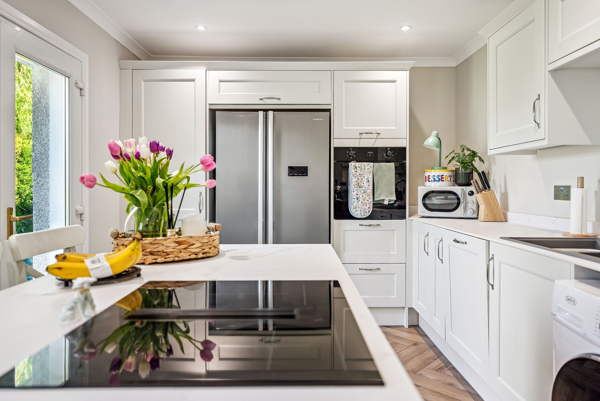 The home offers a perfect blend of modern living and traditional charm, featuring a spacious and welcoming reception hallway that sets the tone for the rest of the property. At the front of the house, the elegant sitting room provides a comfortable and inviting space for relaxation. The heart of the home is the stylish, fully fitted dining kitchen, complete with a central island unit and French doors that open directly to the rear garden. A bright and airy conservatory, overlooking the garden, adds an additional living area ideal for entertaining or unwinding. The property includes two generously sized bedrooms and a well-appointed bathroom with a three-piece suite and an over-bath shower, all finished to a high standard.