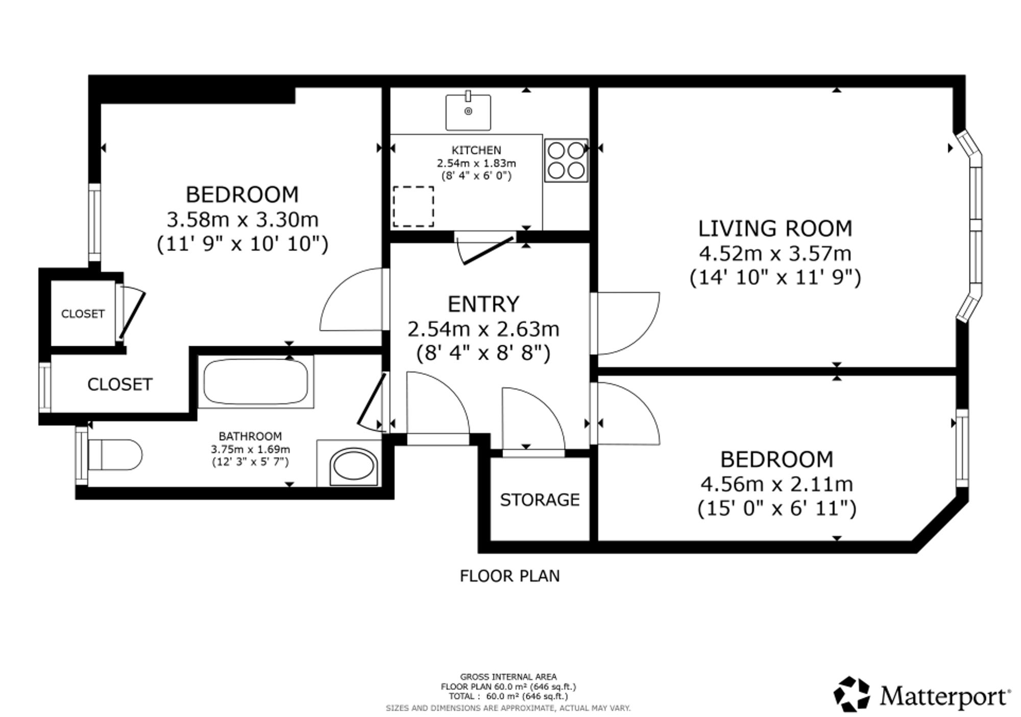 The secure buzzer entry system provides added peace of mind. Internally, the property is of lovely proportions and offers comfortable living space, well suited to modern lifestyles. In brief, the accommodation extends to: entrance hall with storage cupboard, bright bay-windowed lounge, two double bedrooms, a modern internal kitchen fitted with a range of contemporary units, and a modern bathroom with shower over bath.