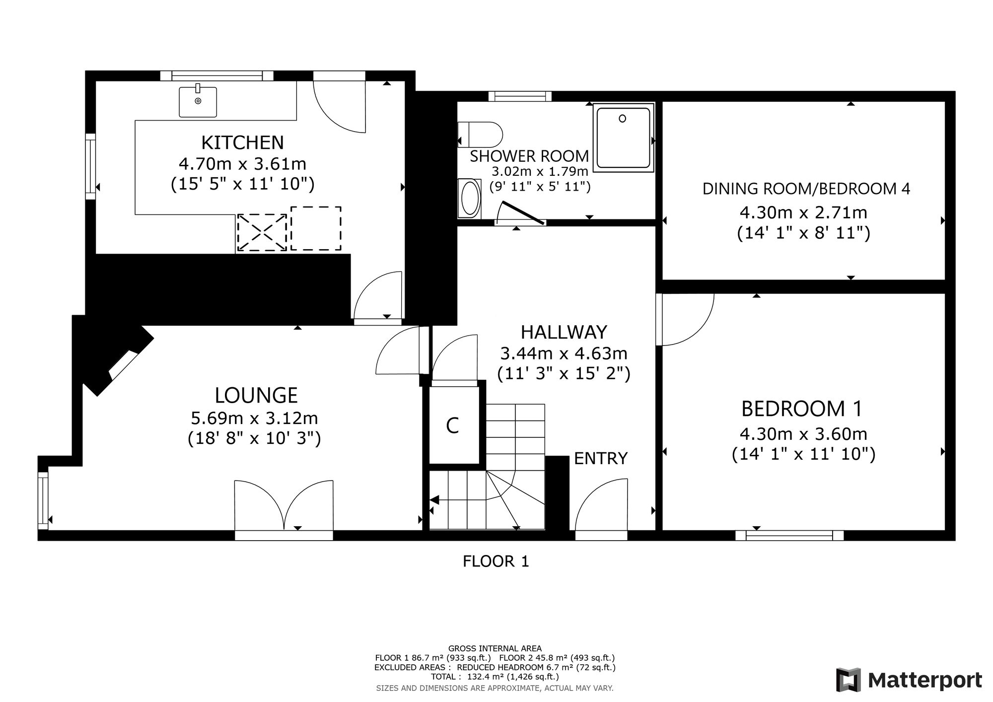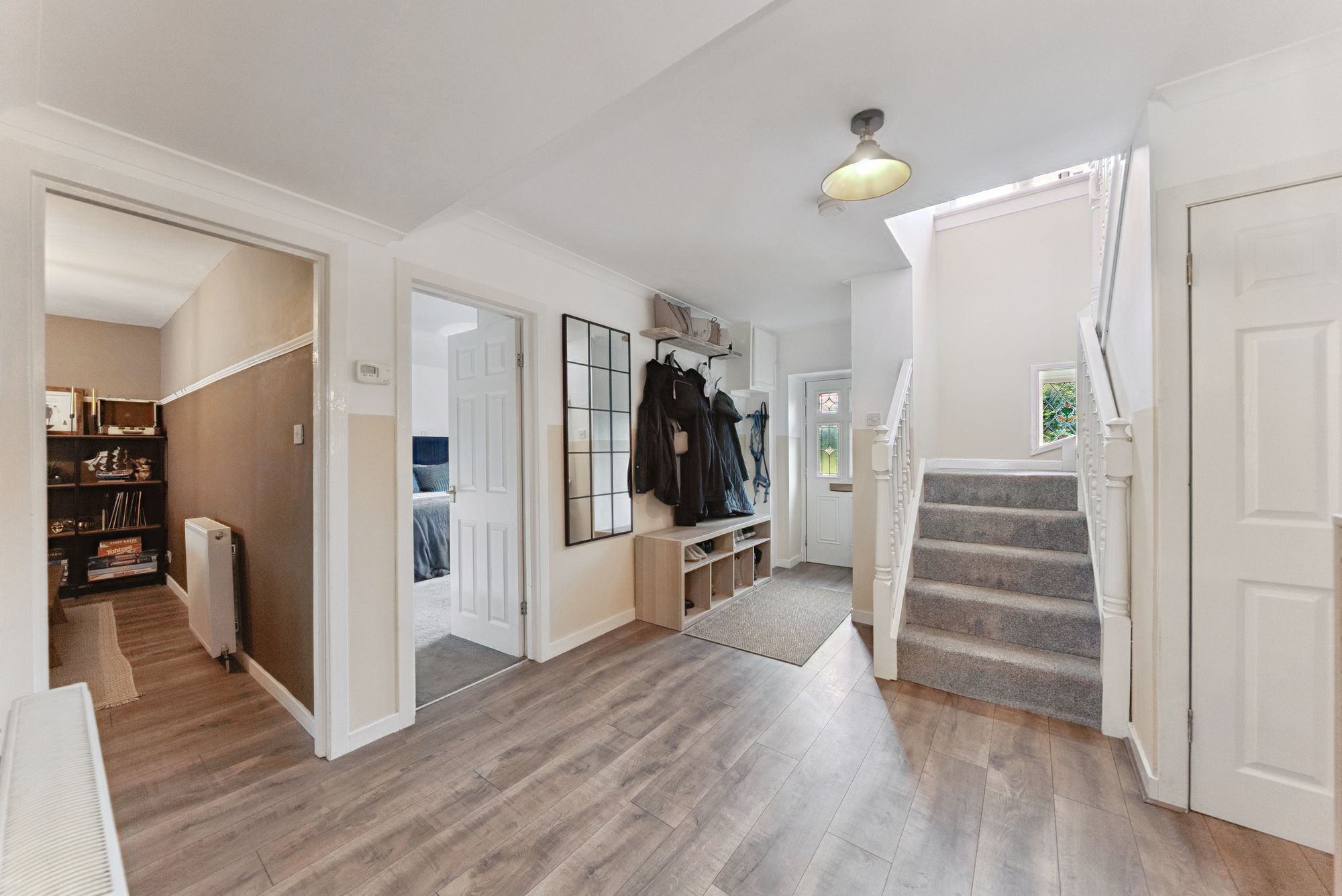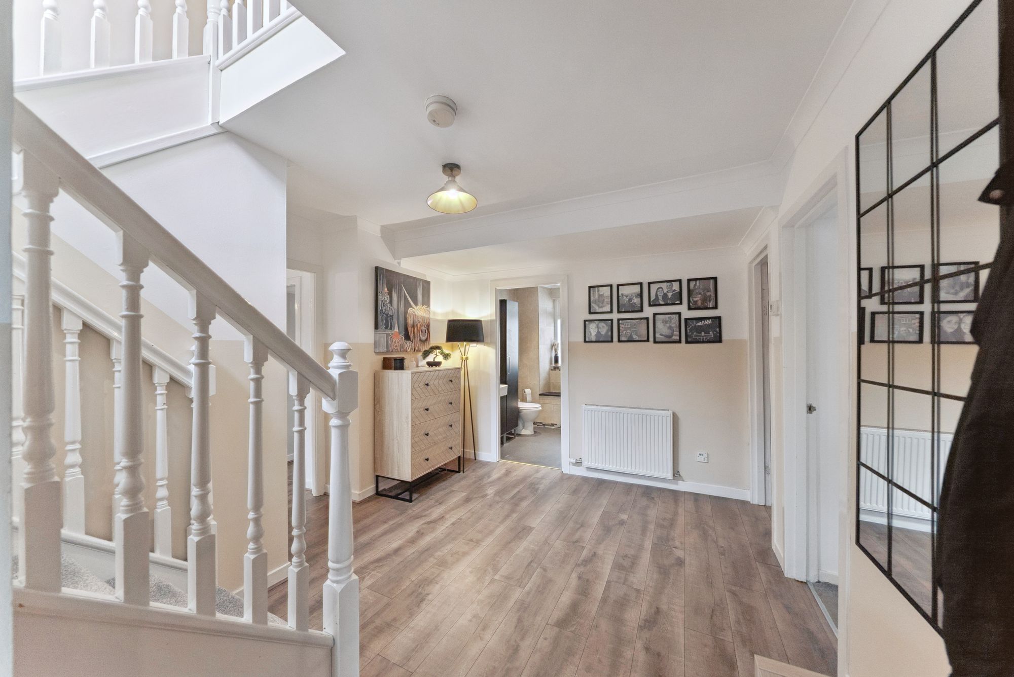 On entering the house, the large and welcoming reception hall features a staircase to the upper landing with understair storage below. From here there is access to each of the main rooms on the ground floor. These include a comfortable lounge/living room which has a window to one side, a feature fireplace with open fire and with French doors opening out to the gardens. There is also a separate dining room on this floor and a downstairs double bedroom. The beautifully refitted kitchen comes with wall mounted and counter level units and a range of appliances and has windows on two walls and a door out to the rear of the house. There is a modern, beautifully refitted shower room on this floor with a shower enclosure, wc, and wash hand basin. Moving to the upper floor, the upper landing has a deep built-in store cupboard and gives access to two further bedrooms, both of which enjoy lovely views to the rear of the house and with one of the bedrooms enjoying built-in cupboard/wardrobe space. These bedrooms are served by a large family bathroom which features a bath, separate shower, wc and wash hand basin.