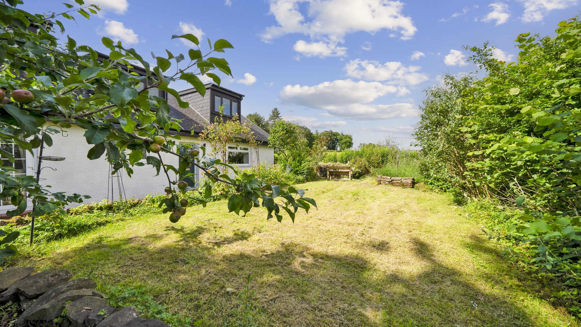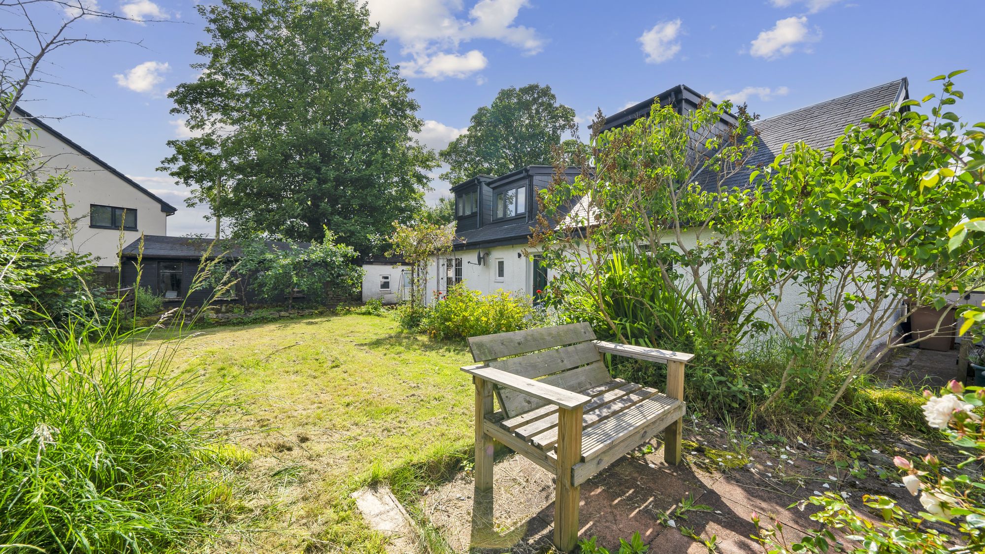 A small lane gives access to the property from the main road and the house is tucked away behind another property. In the garden grounds (which are level and completely enclosed) there is a substantial stone outbuilding which would be great for use as a home office or store, there is a large double timber garage to the rear of the house and the gardens feature large expanses of lawn along with patio areas and colourful well stocked flower and shrub beds. To the rear there is a sheltered paved and gravelled drying area.