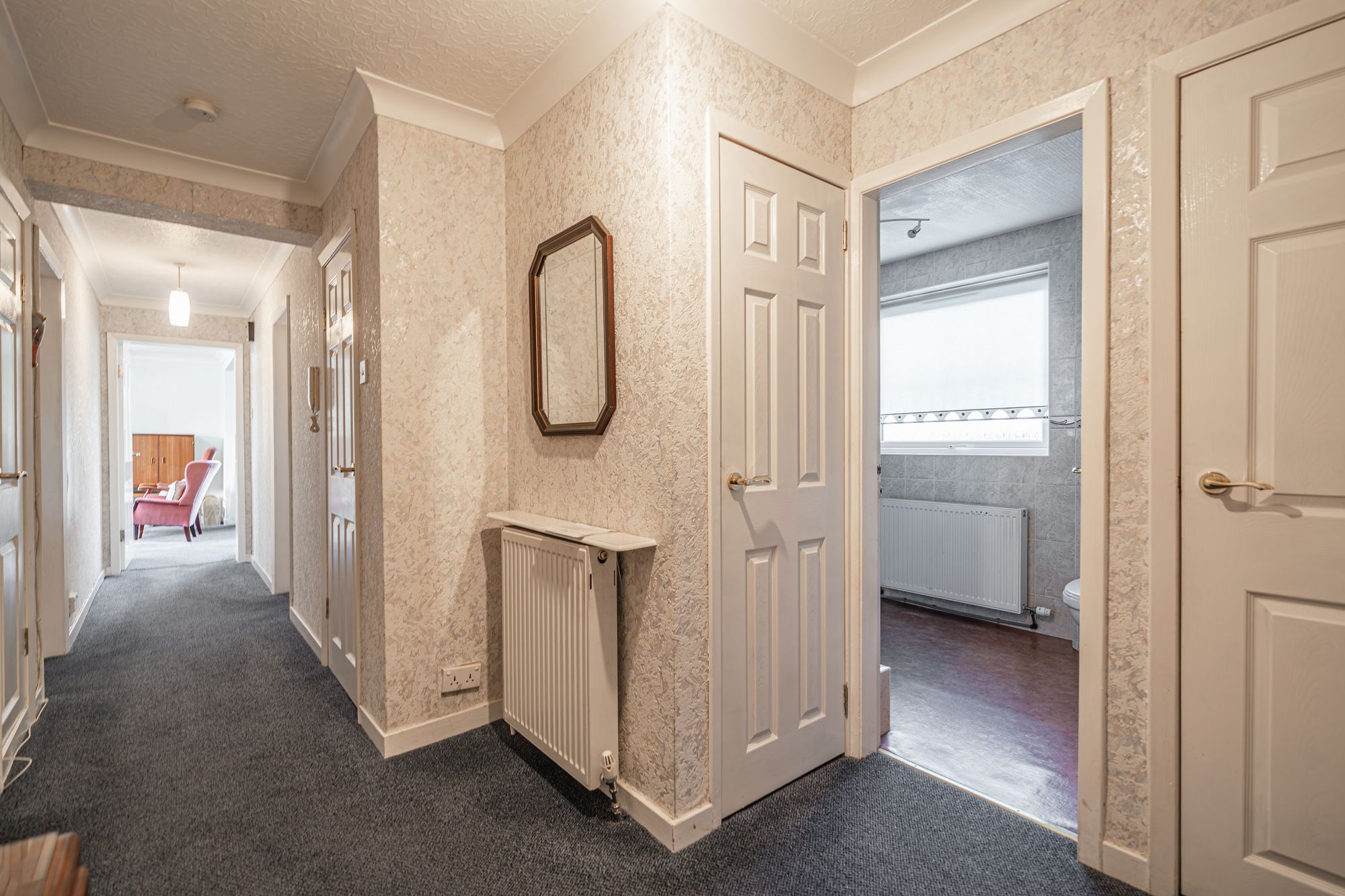 The main bathroom features a three-piece suite with shower over bath. Completing the accommodation are two well-proportioned double bedrooms, both benefiting from in-built storage.