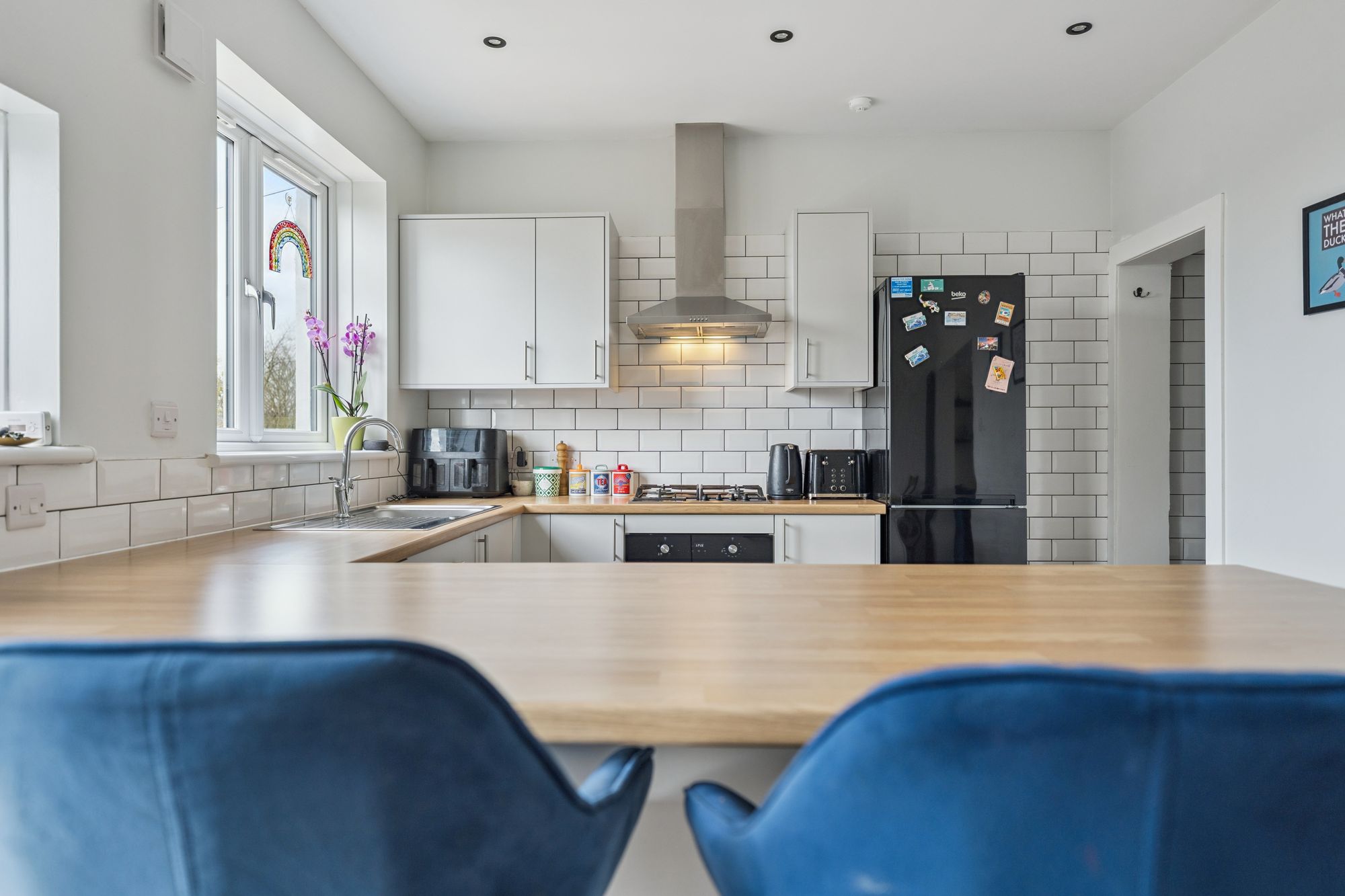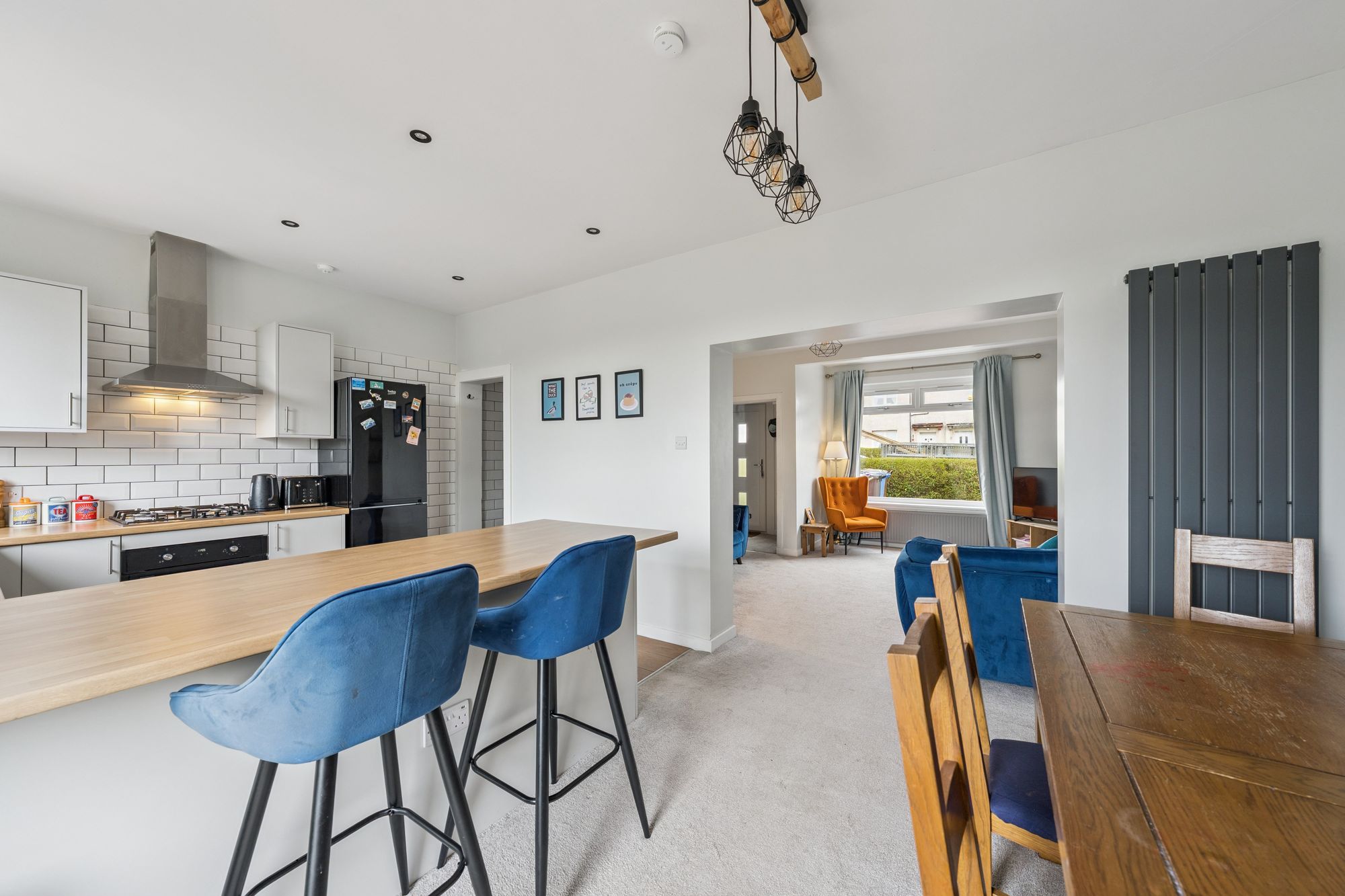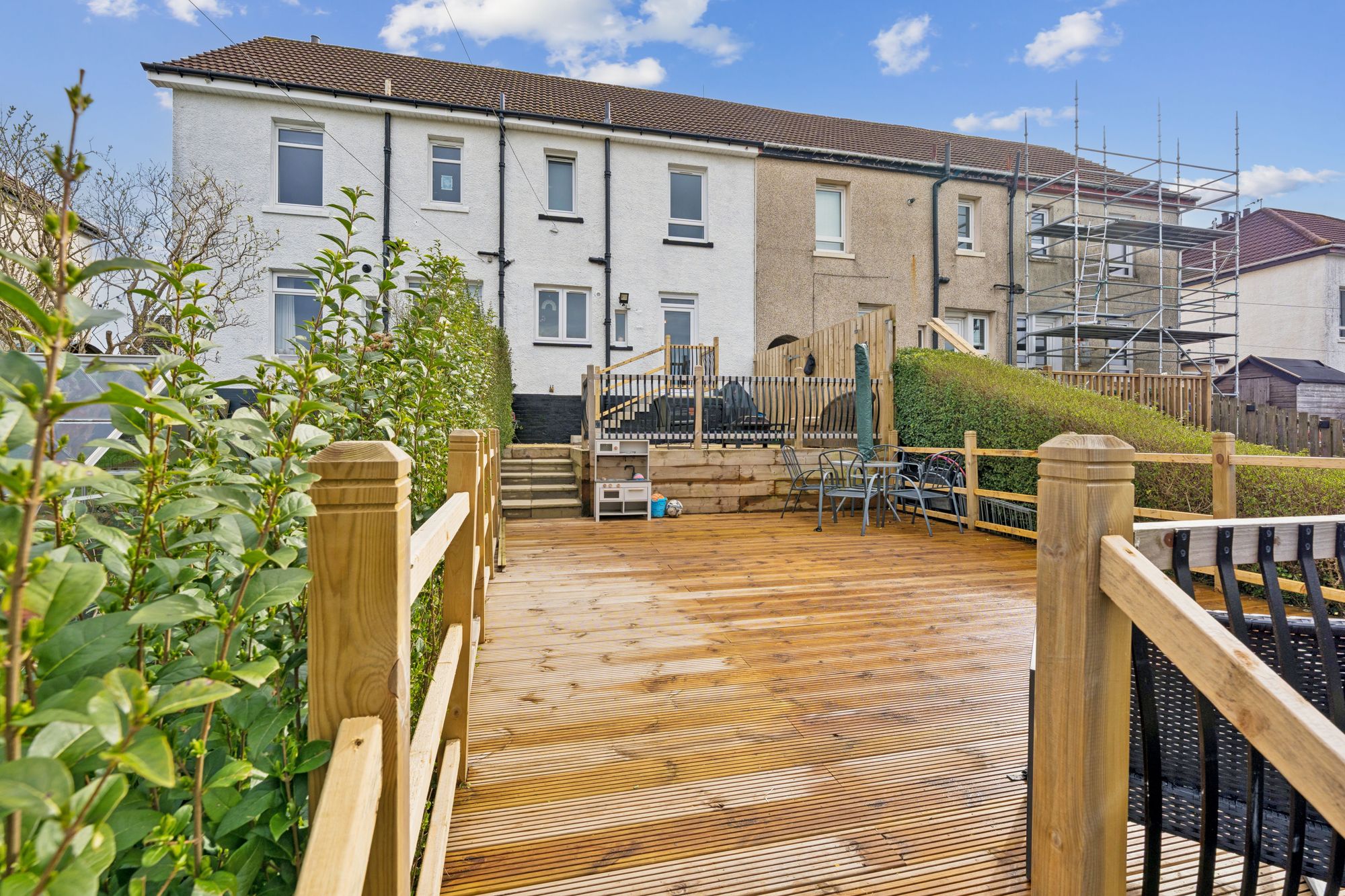 The attached photographs, floor plan and HD video tour will give an indication to the size and layout of the house. However, in brief the accommodation extends to; welcoming entrance hallway, a spacious living room which is open to  a fantastic rear facing dining/kitchen. The kitchen itself has base and wall mounted units with appliances, tiled splash back, breakfast bar and utility room off. On the upper level there are two double bedrooms, including a generous principal room and a fully tiled bathroom with three piece suite and shower over the back. The back garden is undoubtably one of the main selling points. It has been professionally landscaped and offers two large patio areas, as well as a section of lawn.