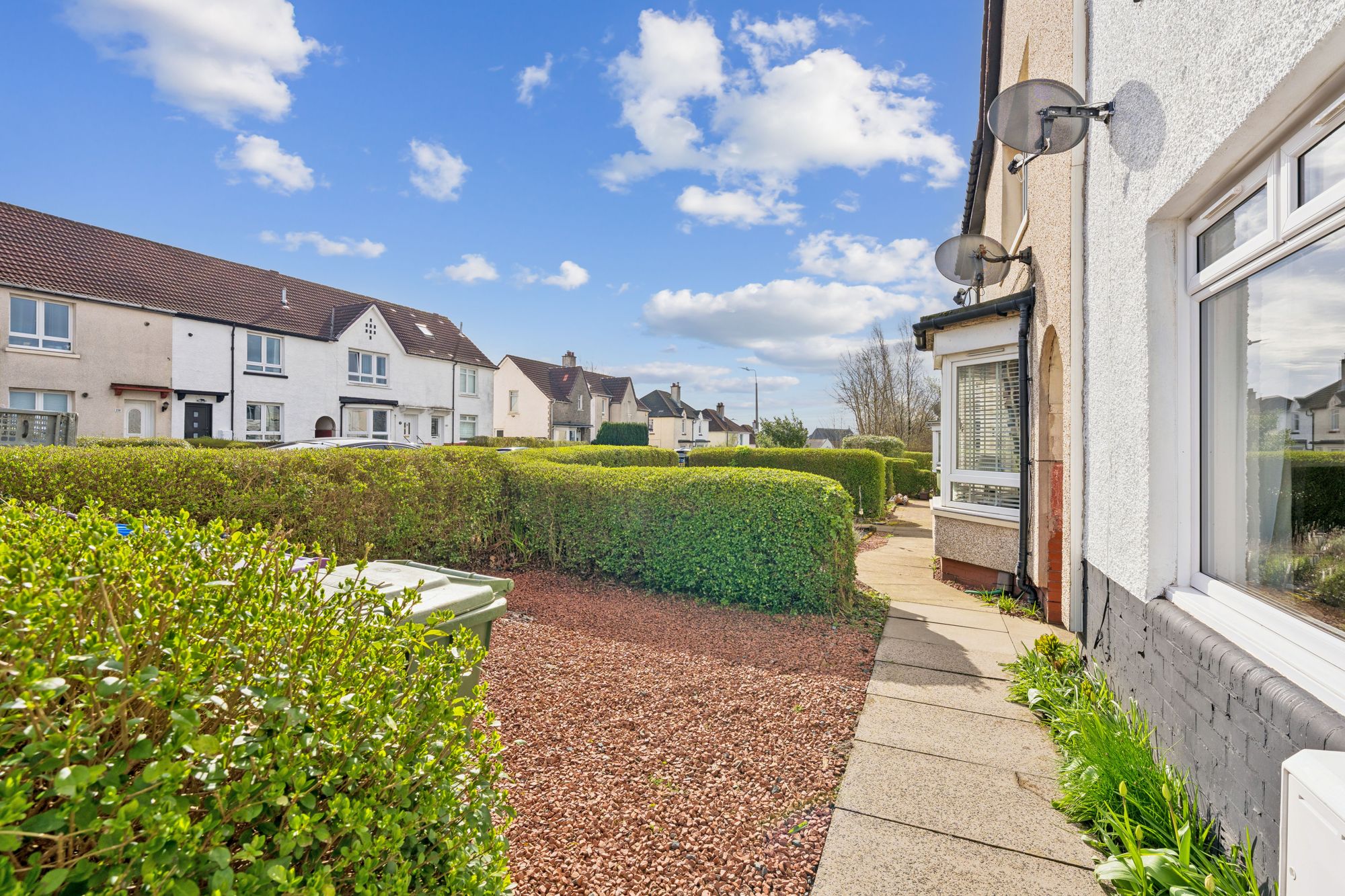 Knightswood has a selection of local amenities including a collection of shops, cafes, leisure facilities, supermarkets and schooling. The major road networks are easily accessible and the area is well serviced by train making this an ideal base for those looking to commute throughout the central belt.
