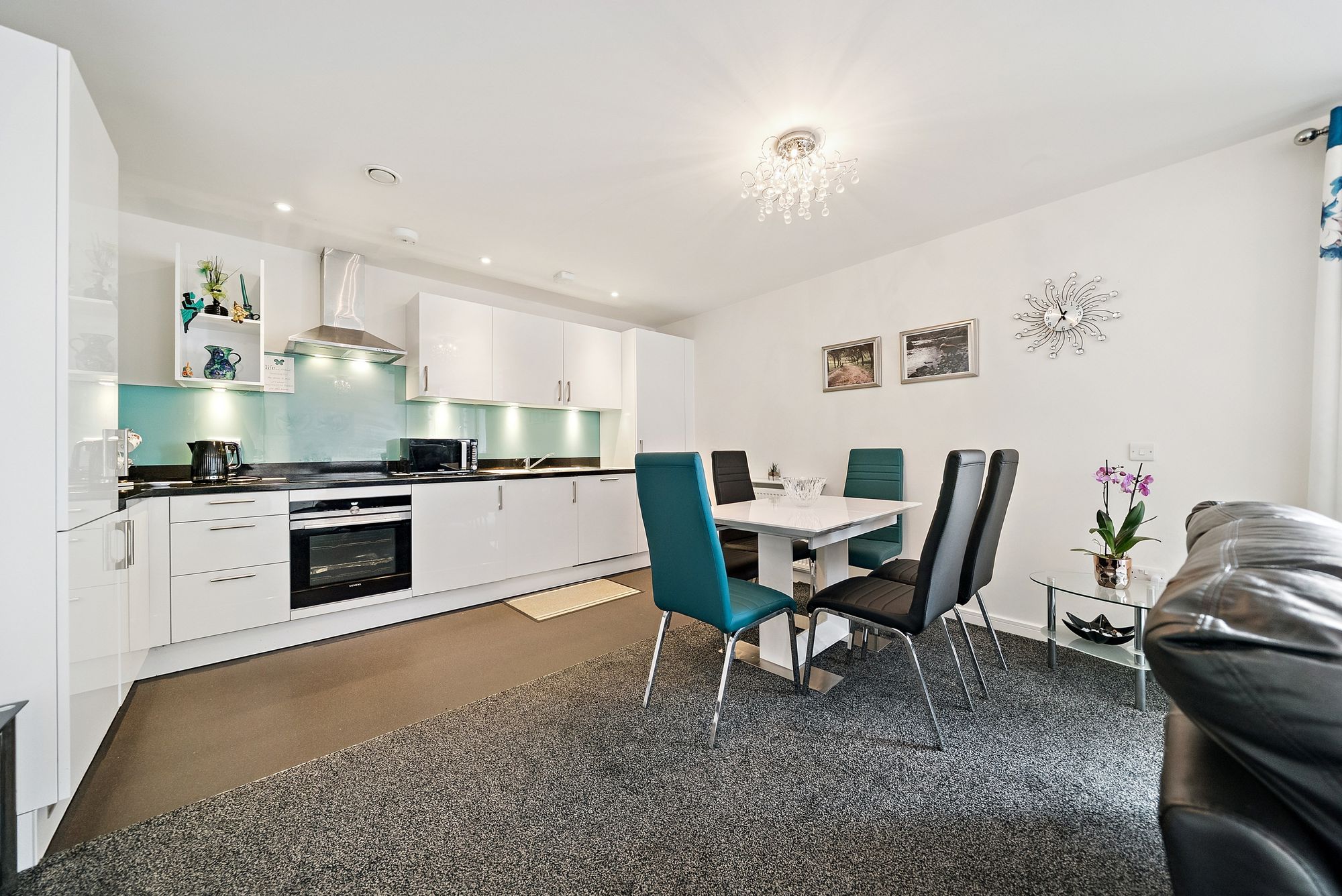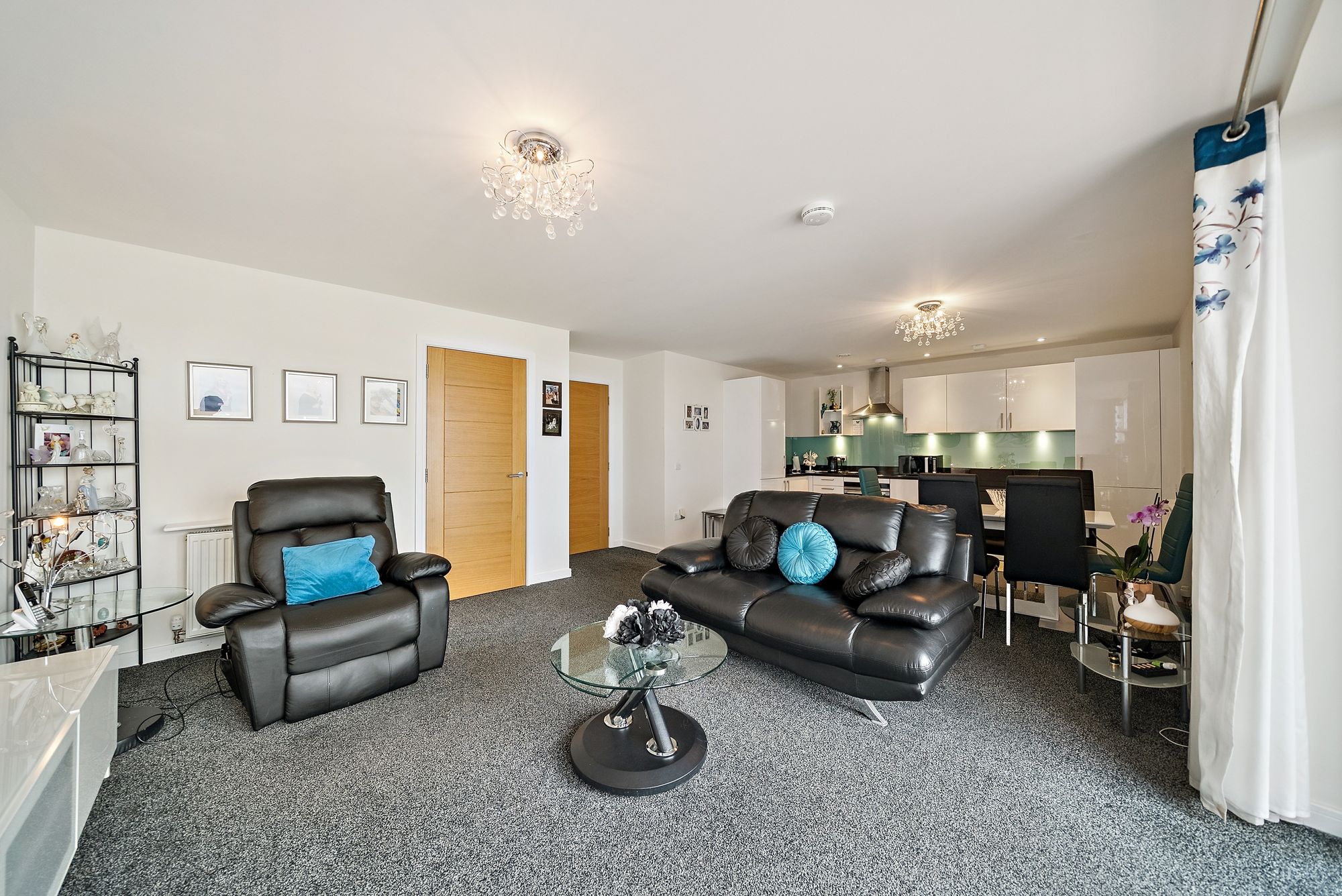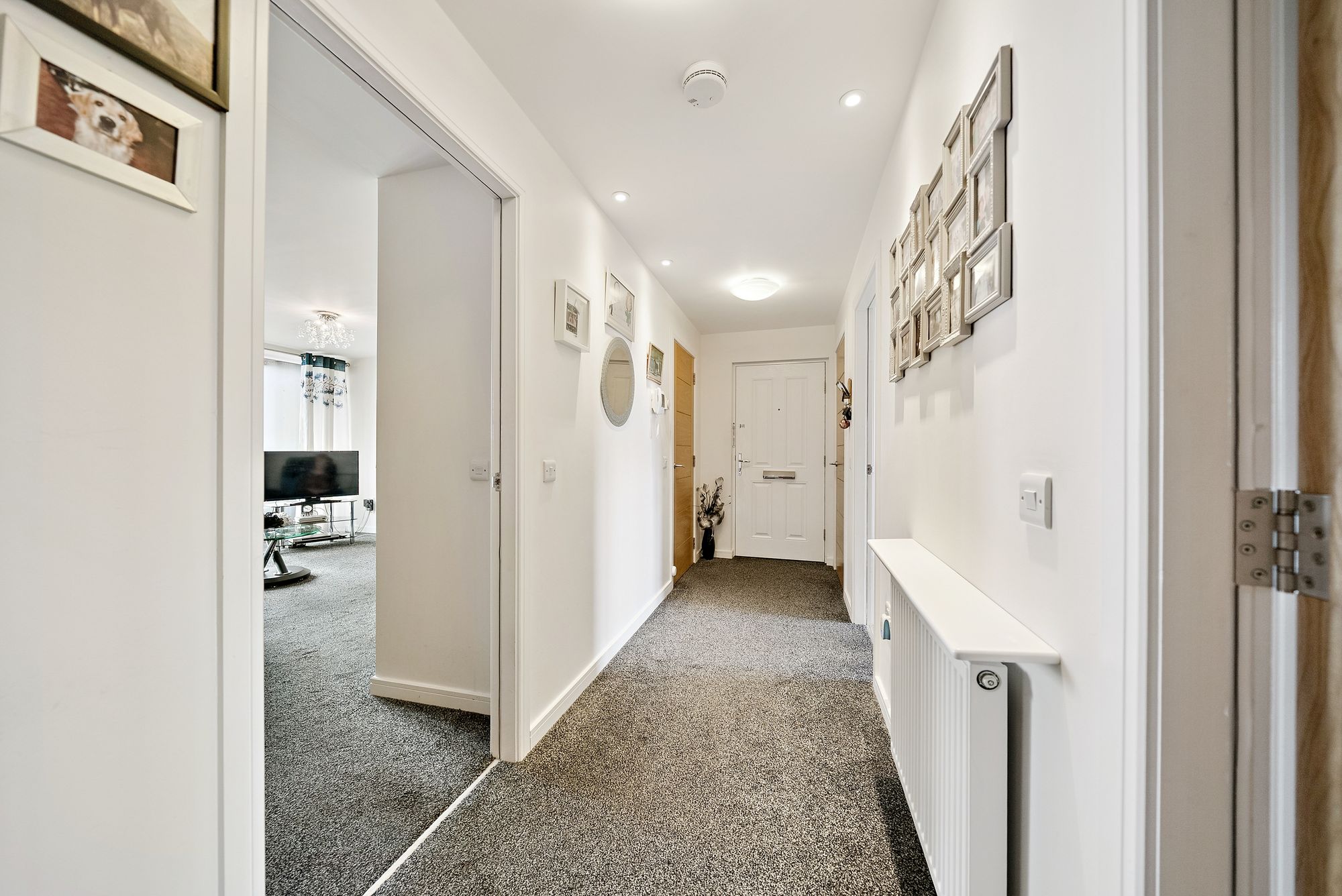 Accessed via a secure entry system and well-maintained communal stairwell, the property opens into a welcoming and spacious hallway with excellent built-in storage. The heart of the home is the bright and generously proportioned kitchen and dining area, featuring a contemporary fully fitted kitchen and ample space for both everyday living and entertaining.