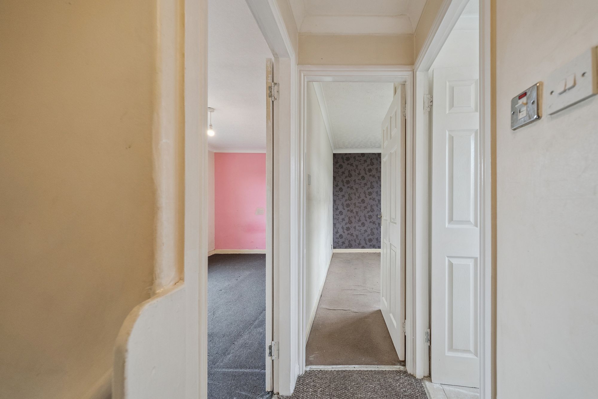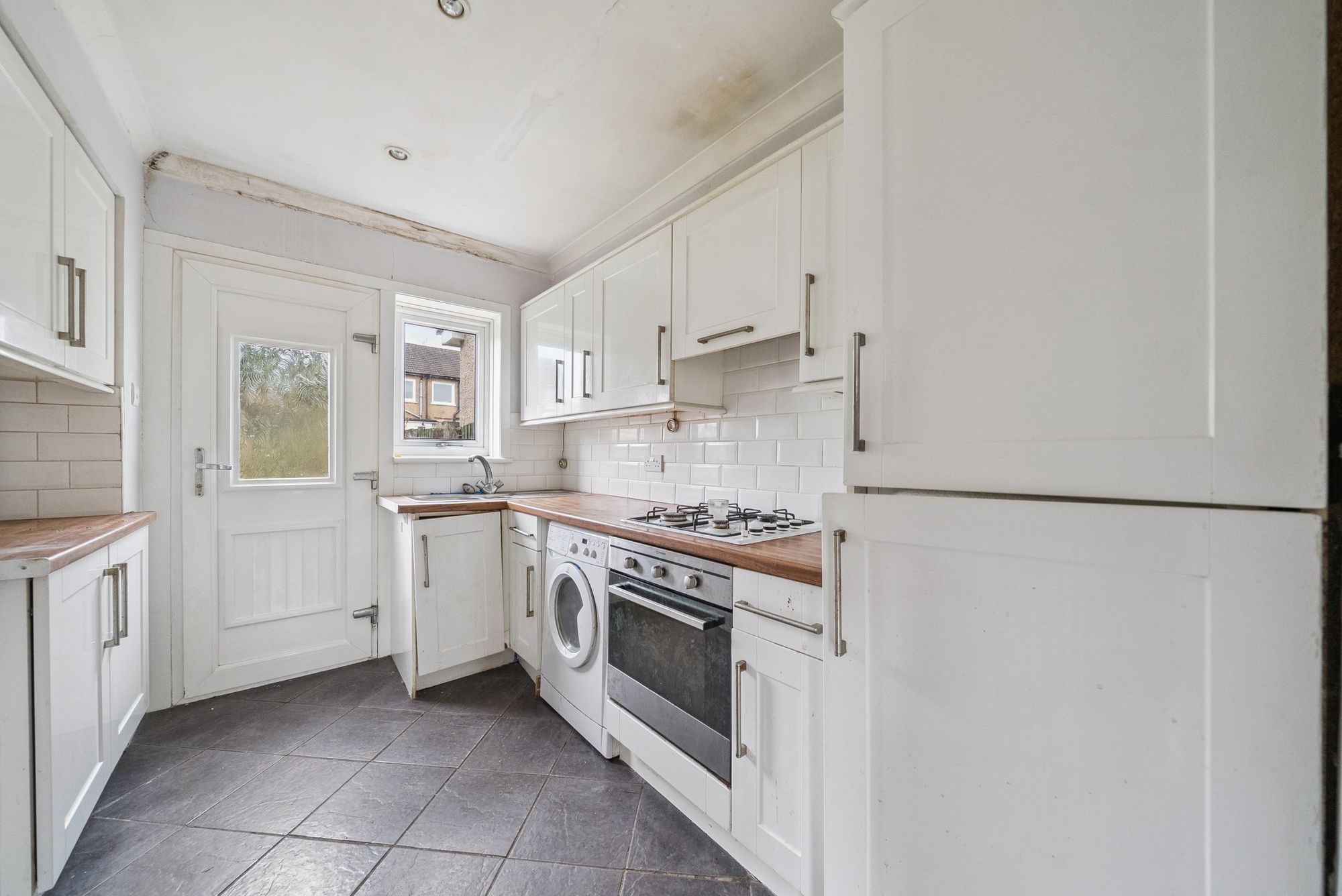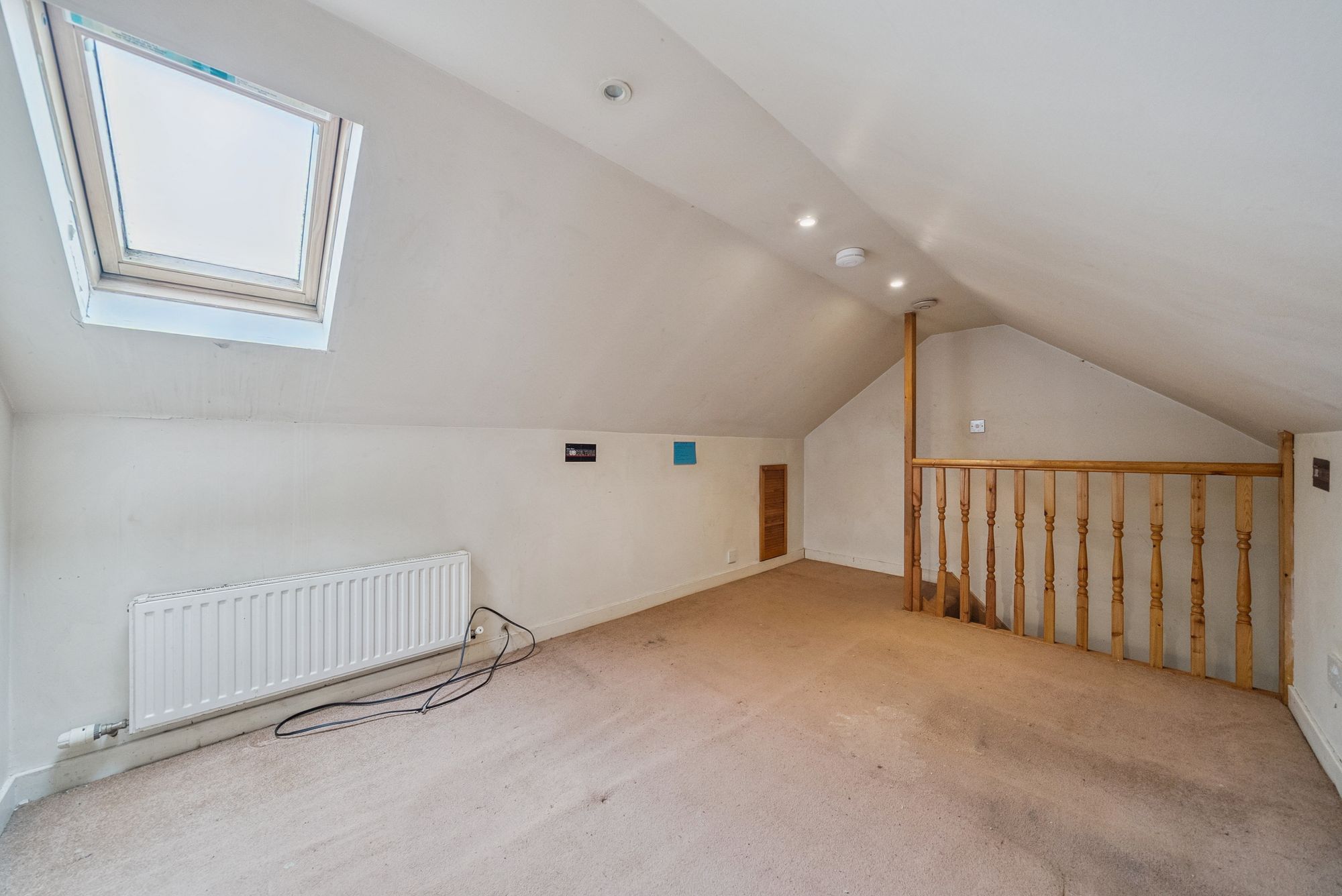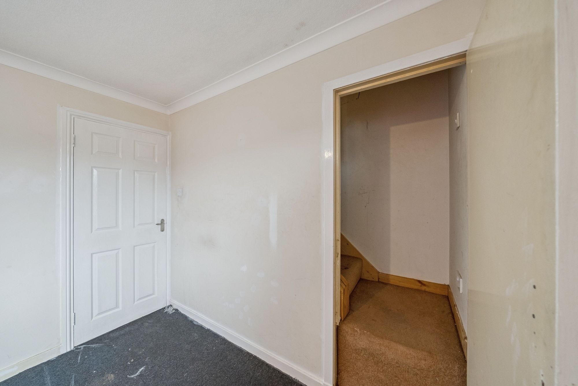 The accommodation is well proportioned and thoughtfully arranged over two levels. On entering, a welcoming hallway provides access to the main apartments and staircase to the upper floor. The generously sized lounge/dining room is a particular highlight, enjoying both front and rear-facing windows which flood the space with natural light, and offering ample room for a three-piece suite alongside a dining table and chairs - ideal for both everyday living and entertaining. The kitchen is fitted with a wide range of gloss-fronted white units, offering good storage capacity and workspace. It is equipped with an oven, hob, hood, fridge freezer, and plumbing for an automatic washing machine, while a rear door provides direct access to the enclosed garden. Upstairs, the landing leads to two well-proportioned double bedrooms, both benefiting from in-built storage wardrobes. The bathroom is fitted with a three-piece white suite, comprising a low-level WC, pedestal wash hand basin, and panel bath with mixer shower over. A notable additional feature is the floored attic space, accessed via a fixed staircase from the principal bedroom, complete with a Velux window - offering excellent storage and potential for a variety of uses, subject to the necessary consents. Further benefits include gas central heating via a Worcester boiler, double glazing for enhanced insulation and soundproofing, and both front and enclosed rear gardens. The rear garden features timber decking, a garden shed, and fencing for privacy and security.