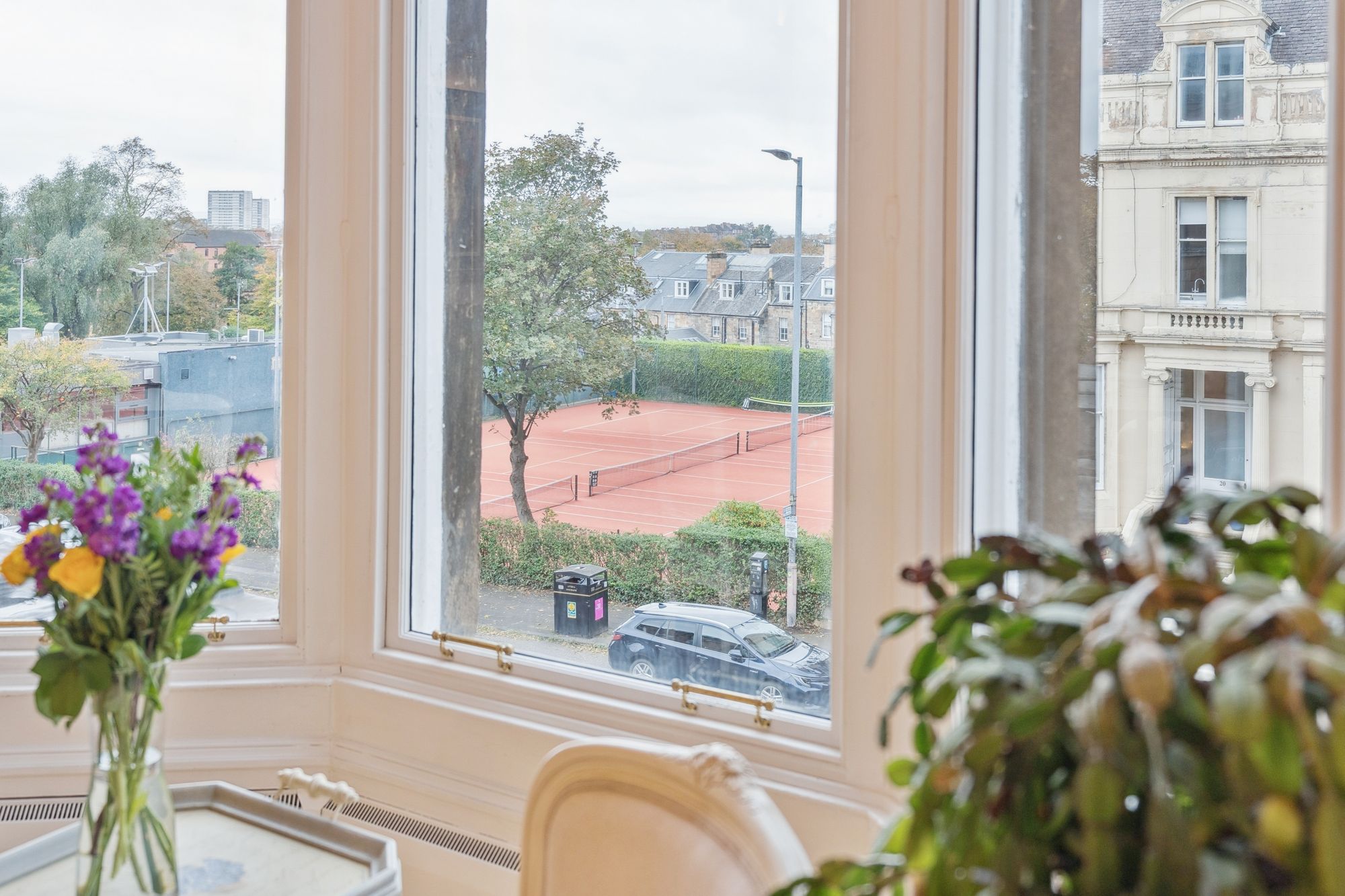 The apartment itself is held within a Grade A listed converted townhouse which was built by the renowned architect Alexander Greek Thomson. The communal areas are presented in wonderful condition and have original tiling, striking pillars and Charles Rennie Mackintosh stained glass. Internally, this is an exceptionally well presented property which benefits from a West facing aspect overlooking Hyndland Tennis Club.