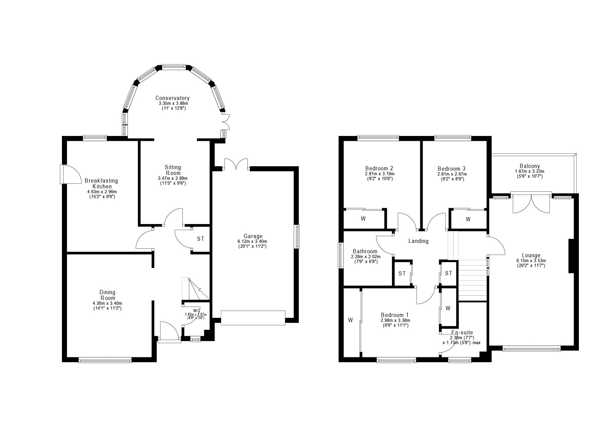 Downstairs WC 4’8” x 3’6” 1.42m x 1.07m
