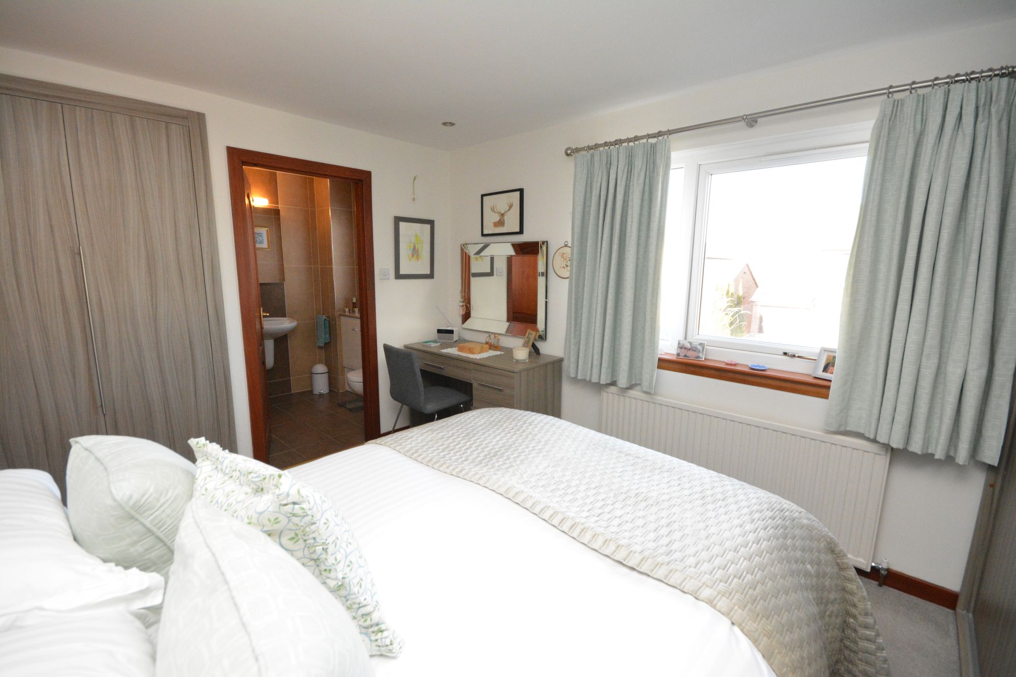 The upper hallway offers fantastic storage and allows access to two double sized bedrooms and one generously sized single bedroom with fitted robes and a fully ceramic tiled family bathroom complete with mains shower valve and chrome radiator. The master bedroom enjoys the benefit of double fitted robes and a well appointed ceramic tiled en suite shower room with mains shower valve. Practical features include gas central heating, double glazing and solar roof panels with lucrative feed in tariff. Well maintained and presented throughout, internal viewing will confirm the overall size, flexibility and appeal of this super home.