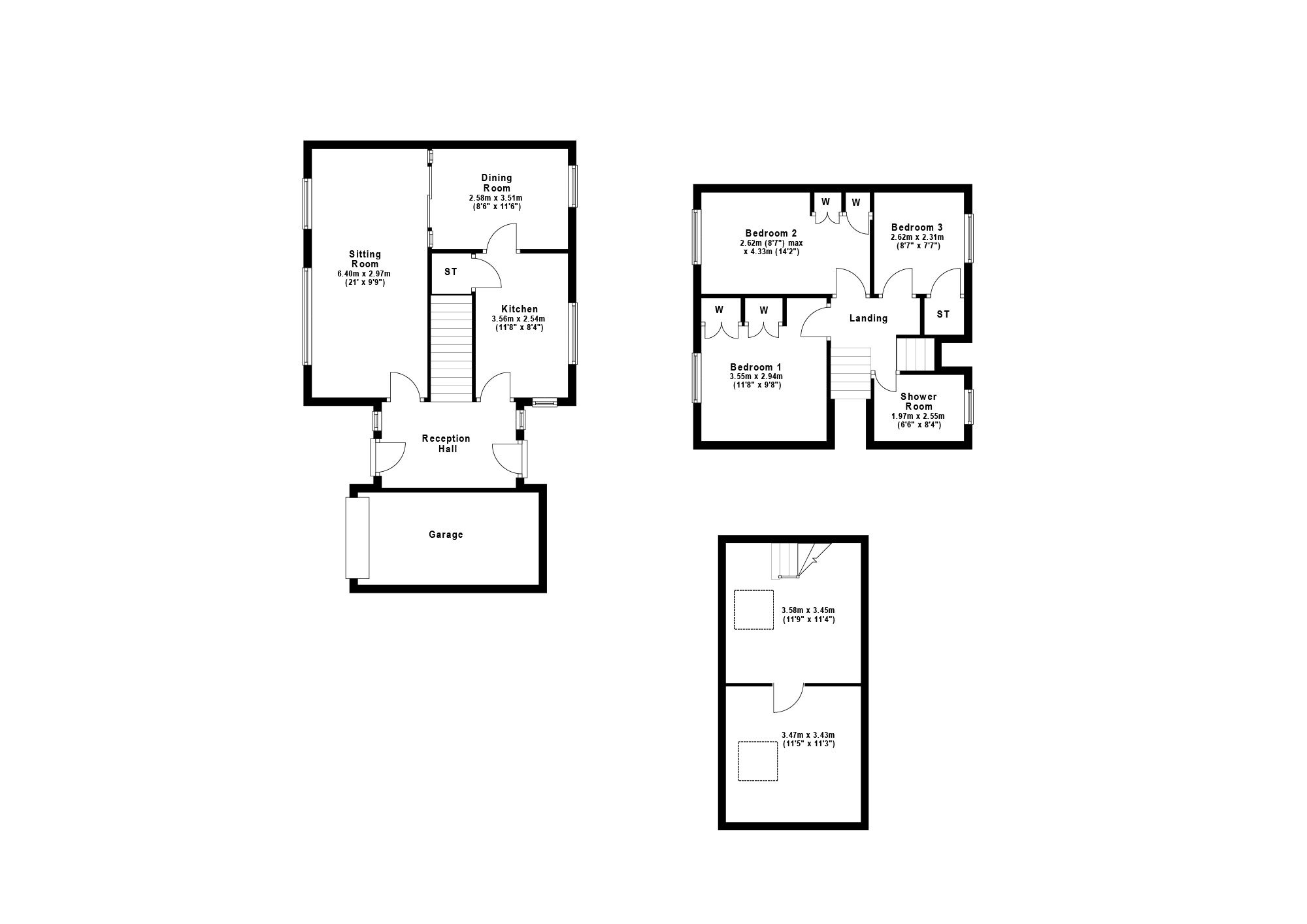 Attic Room One 11’9” x 11’4” 3.58m x 3.45m
